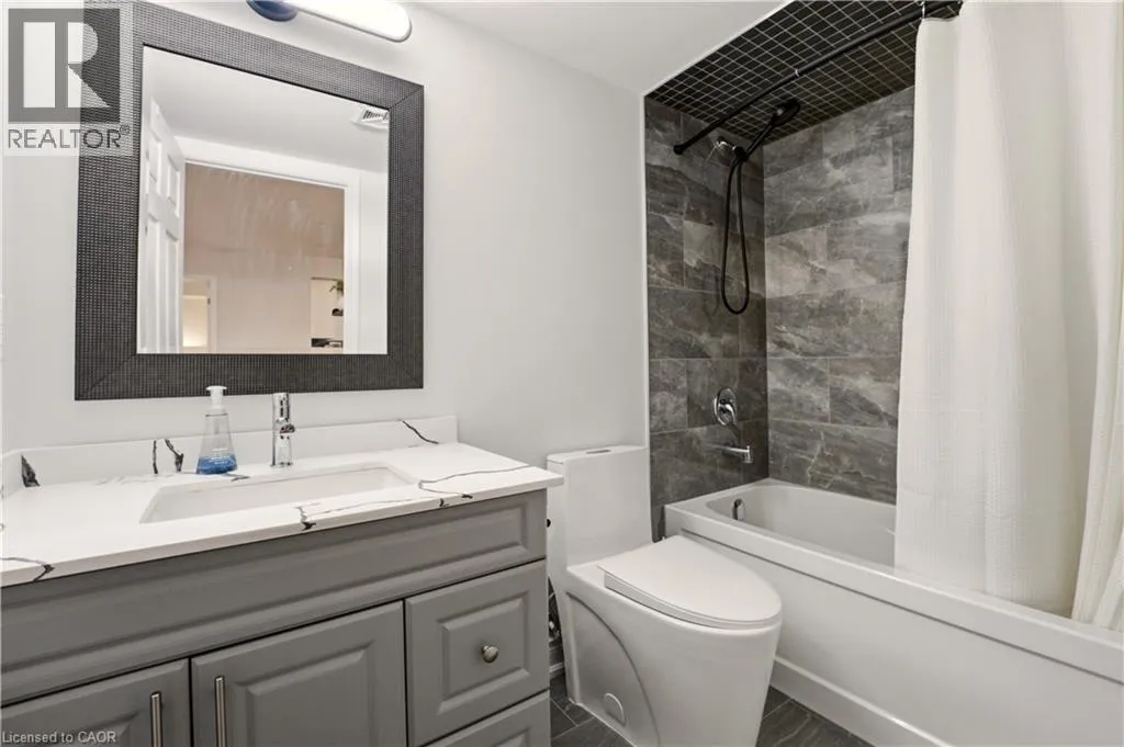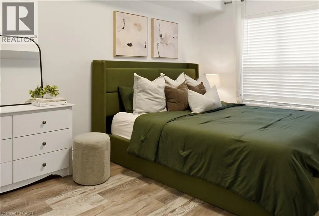South on 25, right on Louis St. Laurent Ave, right on Diefenbaker St, right on Nadalin Heights Turn-key Mattamy built 2 bedroom, 2 bathroom unit in the desirable Willmott neighbourhood, offering 865 sq ft of well-designed living space. Upon entering, youâre greeted by a bright and inviting open-concept layout, complemented by a neutral palette and new flooring throughout. The kitchen features shaker-style cabinetry, stone countertops, stainless steel appliances (2023), and a breakfast bar with seating for two, making it both functional and welcoming. Bright, oversized windows fill the home with natural light, and a walkout from the living room leads to a covered porch. The oversized primary bedroom offers plenty of room and comfortably accommodates a king-size bed while still leaving space for a work-from-home setup, if desired. The private ensuite has been redesigned with an upgraded vanity featuring stone countertops and a glass shower enclosure. A second bedroom and an additional upgraded bathroom complete the space. Additional features include in-suite laundry, underground parking, and a locker. Ideally located in the vibrant Hawthorne Village of Miltonâs Willmott neighbourhood, just steps to Milton Community Park with a playground, green space, and seasonal splash pad. Within easy walking distance to Milton Community Sports Park and the Milton Sports Centre, offering arenas, a pool, courts, and trails. Nearby amenities also include the Milton Leisure Centre and Sherwood Community Centreâperfect for an active lifestyle and community living. (id:27476)