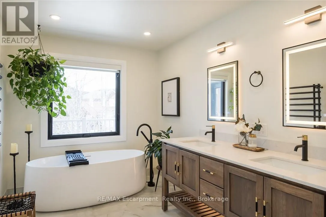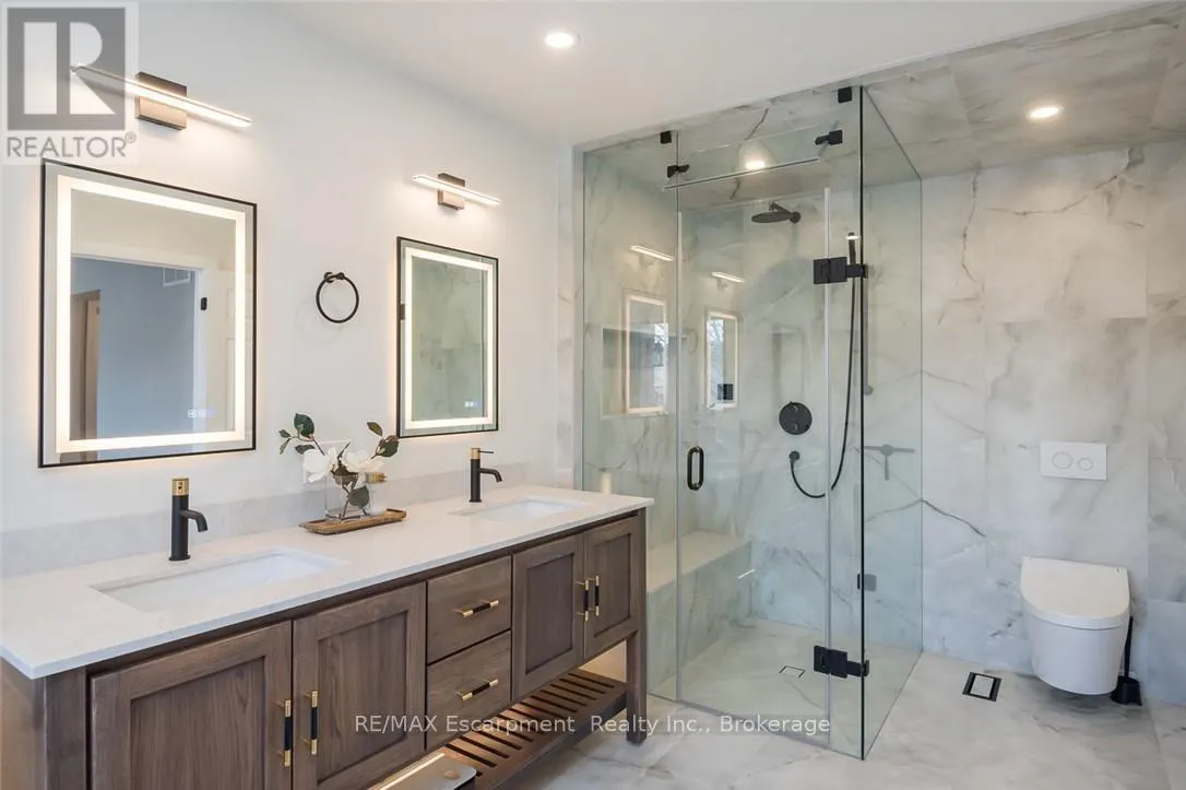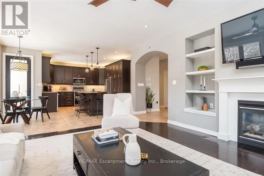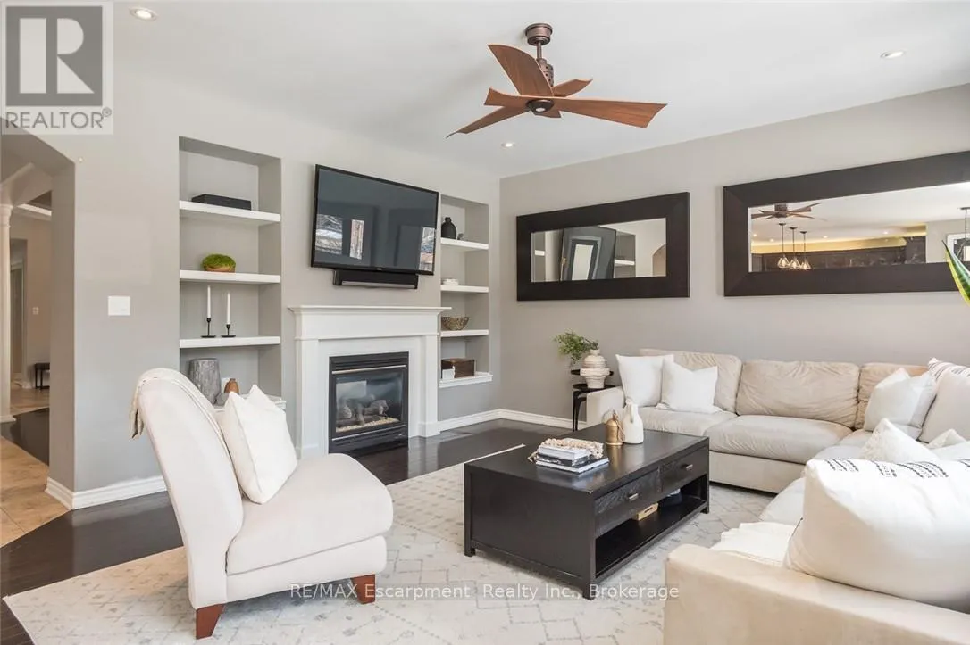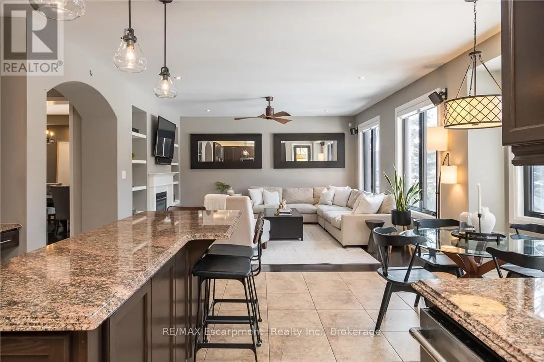 Cross Streets: Jelinek Terrace. ** Directions: Savoline to Pingle, Pingle to Wettlaufer. Welcome to 351 Wettlaufer Terrace, offering over 4,800 sq ft of finished living space on a pie-shaped lot on one of the most coveted streets in Milton's Scott neighbourhood. All new 2024 windows with sleek black casing frame a striking all-brick exterior, setting the tone for the quality and attention to detail found throughout. The resort-style backyard, recent renovations, and premium finishes make this home truly stand out. The sprawling main floor layout is sure to impress, beginning with a grand foyer and formal dining room perfect for entertaining, with a private den/office tucked off to the side. At the heart of the home, the stunning chef's kitchen features a large center island and granite countertops, flowing seamlessly into a bright eating area overlooking the rear backyard and a generous family room with that highly sought-after open-concept feel. A 2-piece powder room and dedicated laundry room round out this beautifully designed level. Upstairs, a bright second-storey loft with wrap-around windows provides a flexible additional living space. The home offers two primary retreats. The principal suite walks out to a private balcony and features a renovated ensuite with heated floors and quartz finishes. The second primary offers ensuite privilege with its own private bath and walk-in shower. Bedrooms 3 and 4 share a Jack and Jill 4-piece bath. The finished basement delivers a full wet bar with dual keg taps, wine fridge, stone accent wall, electric fireplace, and a 3-piece bath with oversized walk-in shower. The backyard is a true resort: heated pool with spa, Baja ledge, stone fountain, stamped concrete, motorized awning, landscape lighting, and irrigation front and back. Scott is one of Milton's most sought-after communities, surrounded by the lush Niagara Escarpment and home to some of the area's top-rated schools. A rare opportunity on a premium lot in an exceptional neighbourhood. (id:27476)