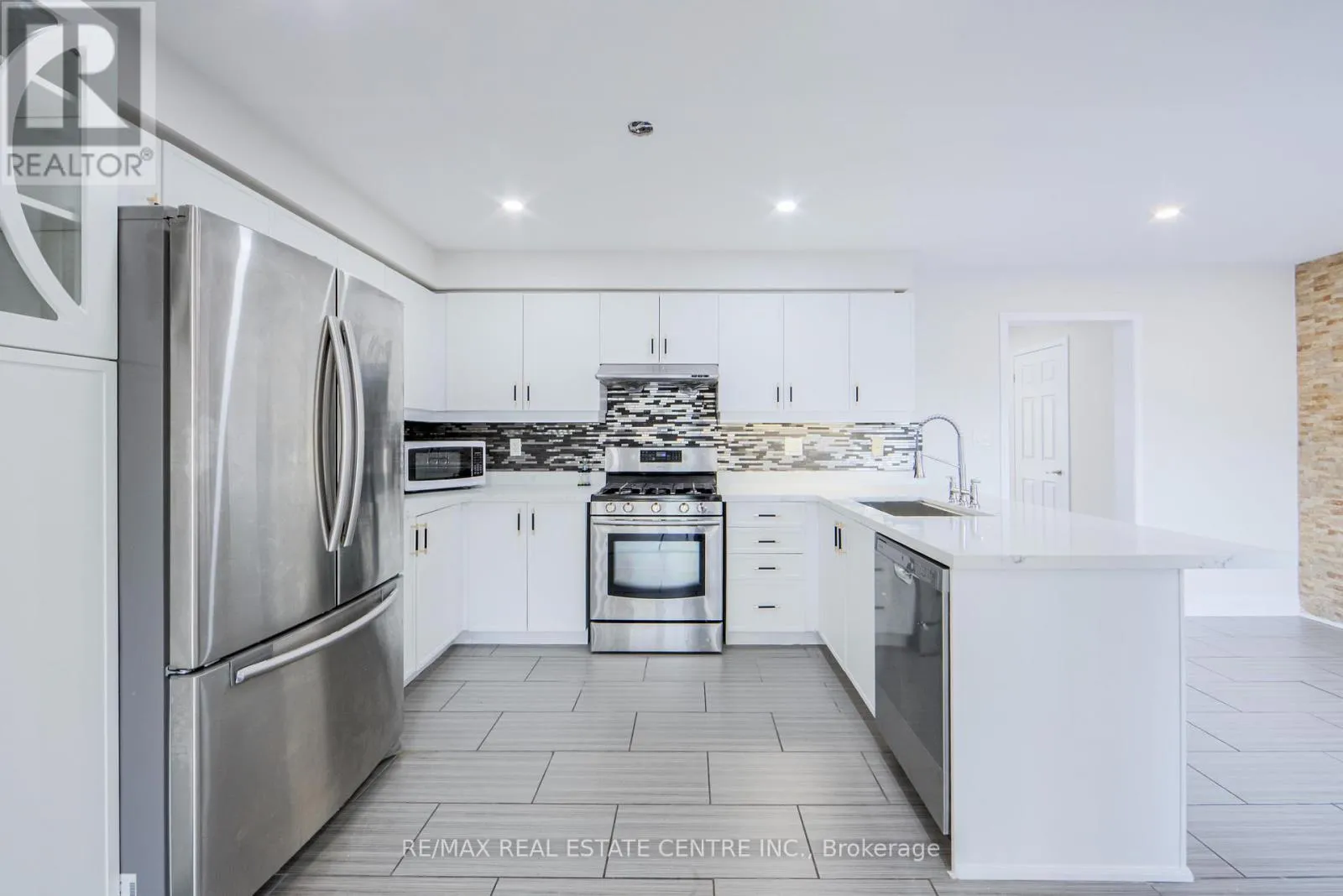 Derry Rd/ Scott Ave/Dymott Ave Beautiful 3-Storey Detached Home in a Highly Desirable Neighbourhood, surrounded by parks, schools, shopping, and transit. Features double-door entry with convenient access from the garage, 2-car parking in the garage plus 1 driveway space. The ground floor offers a fourth bedroom with a 3-piece ensuite, ideal for guests or extended family. Enjoy a family-size Newly renovated eat-in kitchen with walk-out to a balcony, brand-new quartz countertops (with warranty), stainless steel appliances, and modern finishes. This home has been newly renovated, freshly painted, and upgraded with new flooring throughout, LED pot lights (interior and exterior), and high-end light fixtures. Hardwood flooring enhances the main living areas.The primary bedroom features a 4-piece ensuite with a separate standing shower.A truly perfect family home with quality upgrades and attention to detail-move-in ready and a must-see! (id:27476)