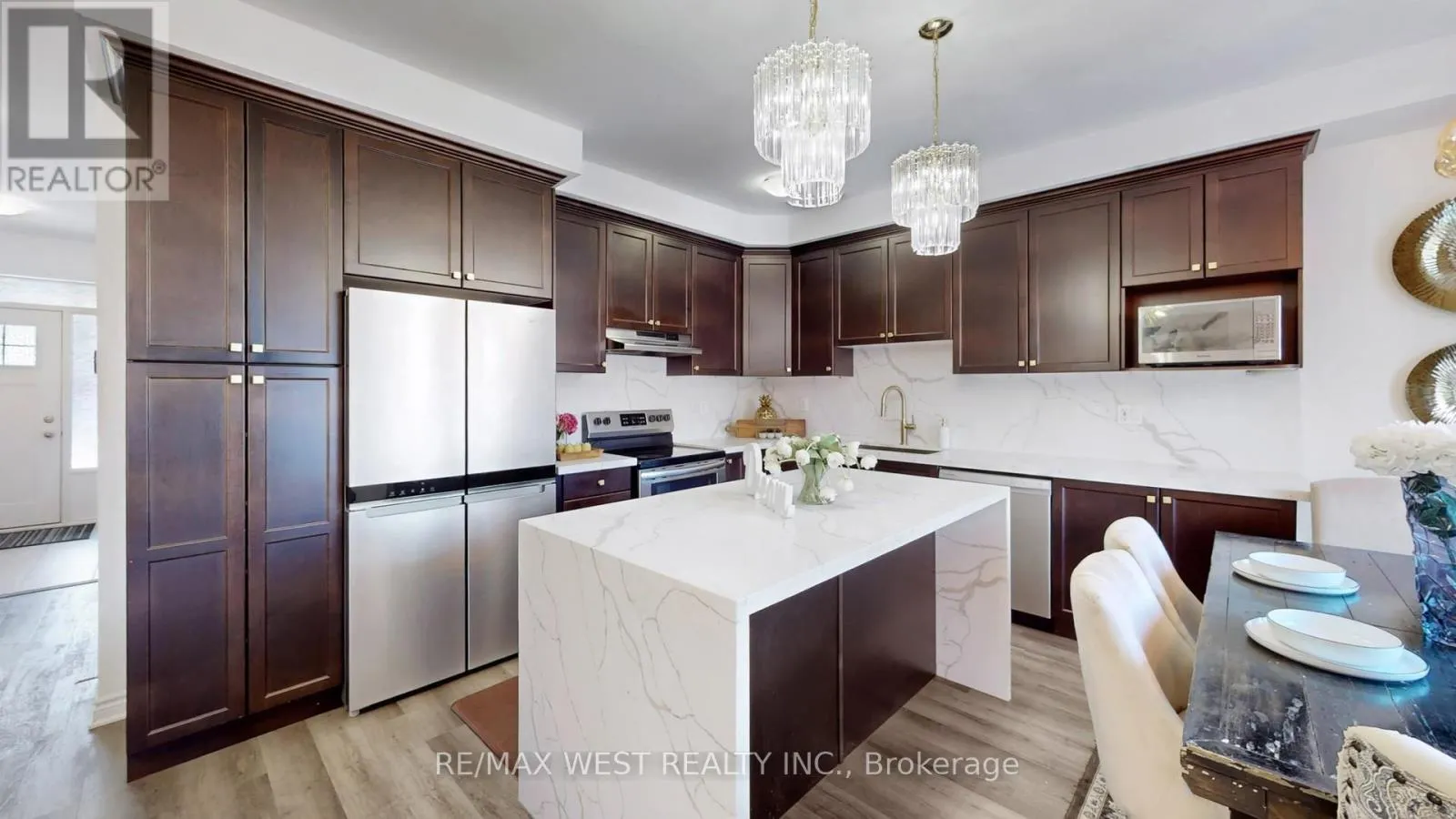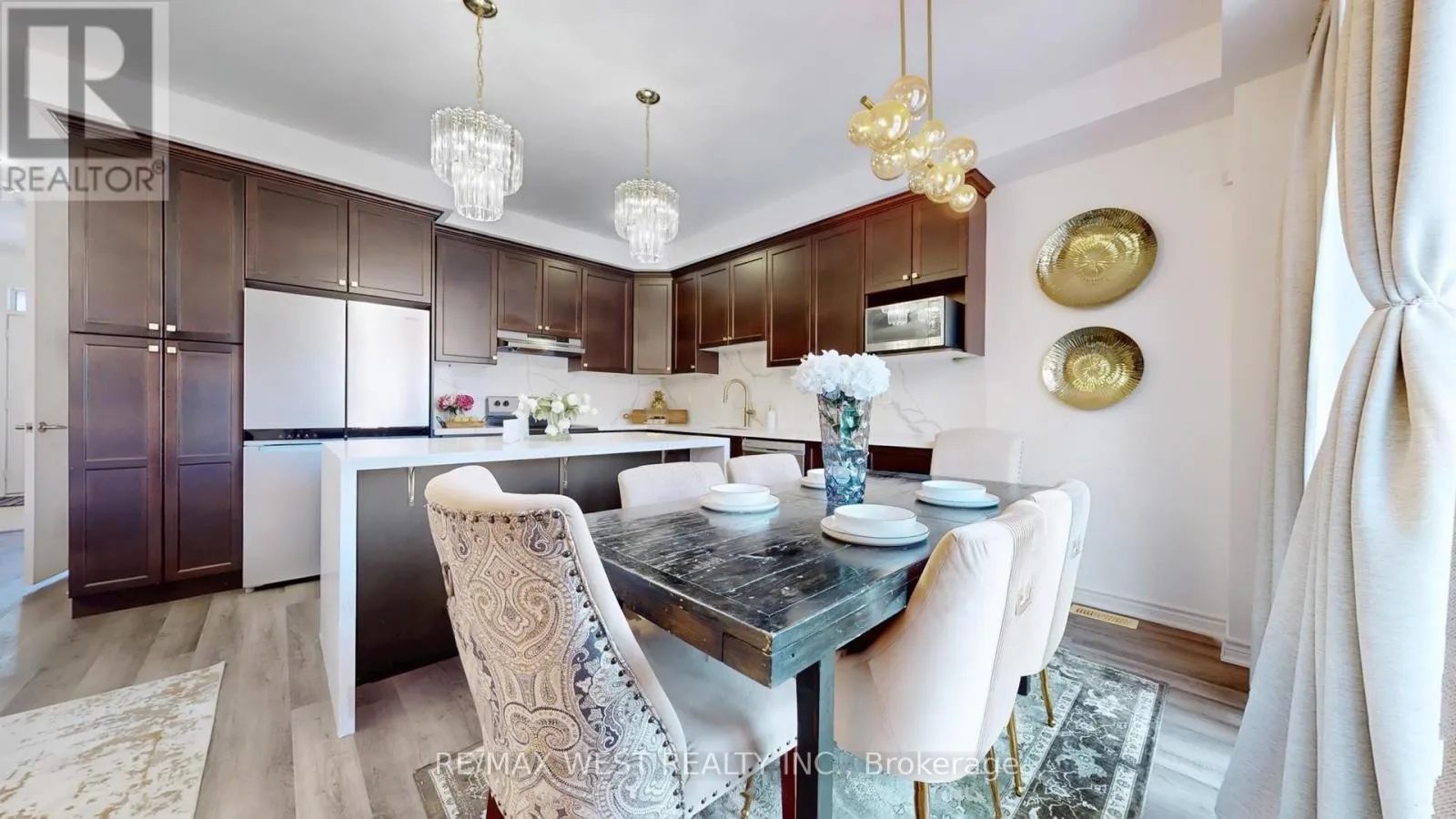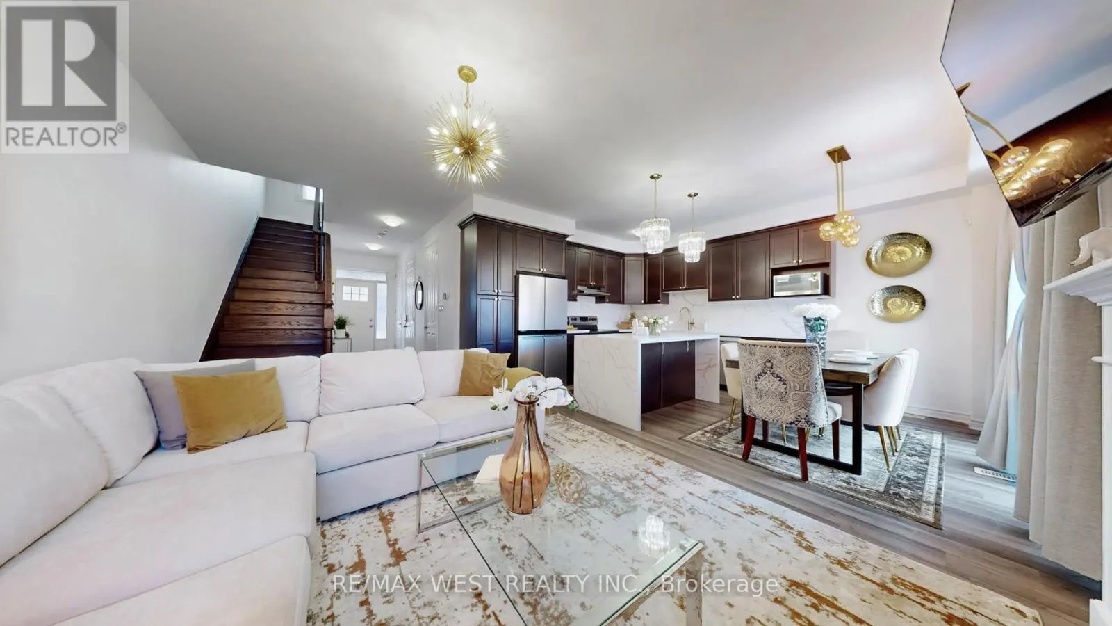 BRITANNIA ROAD & THOMPSON ROAD Welcome to this stunning freehold townhouse situated on a premium oversized lot in one of Milton's most sought-after neighbourhoods. Showcasing modern design, quality upgrades, and one of the largest backyards in the phase, this property offers a rare opportunity for refined family living. Enter into a bright, open-concept main floor highlighted by smooth 9-ft ceilings and rich hardwood flooring throughout. The elegant oak staircase adds timeless charm, while the inviting family room with a cozy fireplace provides the perfect backdrop for both everyday living and entertaining. The chef-inspired kitchen features beautiful maple wood cabinetry paired with high-end appliances that blend style and performance. A large sliding walkout door fills the home with natural light and opens to an expansive backyard - ideal for hosting, relaxing, or creating your own outdoor retreat. Upstairs, discover three spacious bedrooms and two well-appointed bathrooms, including a spa like shower designed for comfort and relaxation. The conveniently located upper-level laundry area adds everyday ease and thoughtful functionality. Set in a highly desirable, family-oriented community close to parks, schools, and amenities, this exceptional home offers the perfect balance of elegance and practicality. Don't miss your chance to make this remarkable property your own. (id:27476)