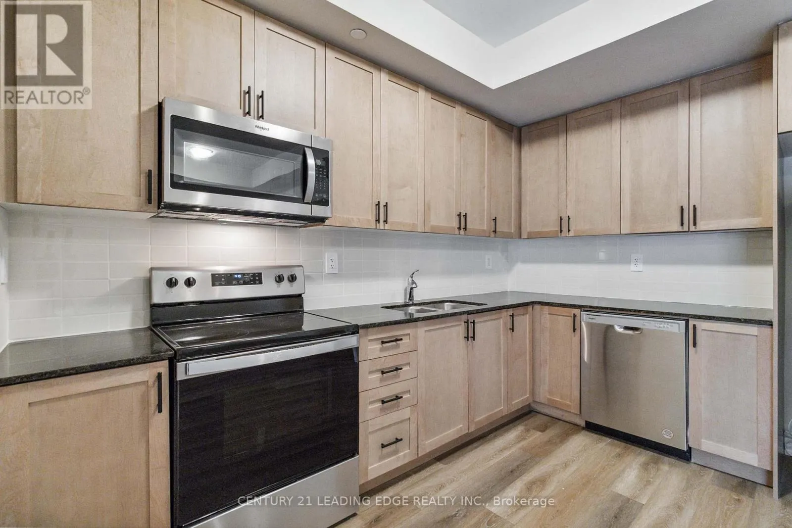 Britannia Rd/Highway 25 Welcome to this brand-new townhouse by Fernbrook Homes, located in the highly anticipatedgrocery stores, and Oakville Trafalgar Memorial Hospital. The area is also near the futureCrawford Townhomes community in South Milton. Built in 2025 and offering approximately 1,068 sq. ft. of thoughtfully designed living space, this stunning 2-bedroom, 2-bathroom urban bungalow-style stacked townhouse perfectly blends modern style, comfort, and functionality. The bright open-concept layout features 9-foot ceilings, luxury vinyl flooring throughout (carpet-free), and large windows that flood the home with natural light. The contemporary kitchen is beautifully finished with granite countertops, subway tile backsplash, upgraded stainless steel appliances, and ample cabinetry-ideal for everyday living and entertaining. Enjoy seamless indoor-outdoor living with private outdoor space with a gas BBQ connection perfect for relaxing or hosting guests. The spacious primary bedroom includes a large closet and a private ensuite with a stand-up shower, while the second bedroom is conveniently located next to another full bathroom-ideal for guests, family, or a home office setup. Ensuite laundry adds everyday convenience. Additional highlights include: One underground parking spaces and One storage locker, Heat & water included in maintenance fees. Situated in one of Milton's most desirable and fast-growing, family-friendly communities, you're just minutes from major highways, transit, top-rated schools, parks, conservation areas, golf courses, grocery stores, and Oakville Trafalgar Memorial Hospital. The area is also near the future Milton Education Village, home to the planned Wilfrid Laurier University campus and research park-making this an excellent long-term investment opportunity. Perfect for first-time buyers, downsizers, small families, or investors alike-this turnkey home offers modern living in aprime location. Don't miss your opportunity to own in beautiful Milton! (id:27476)