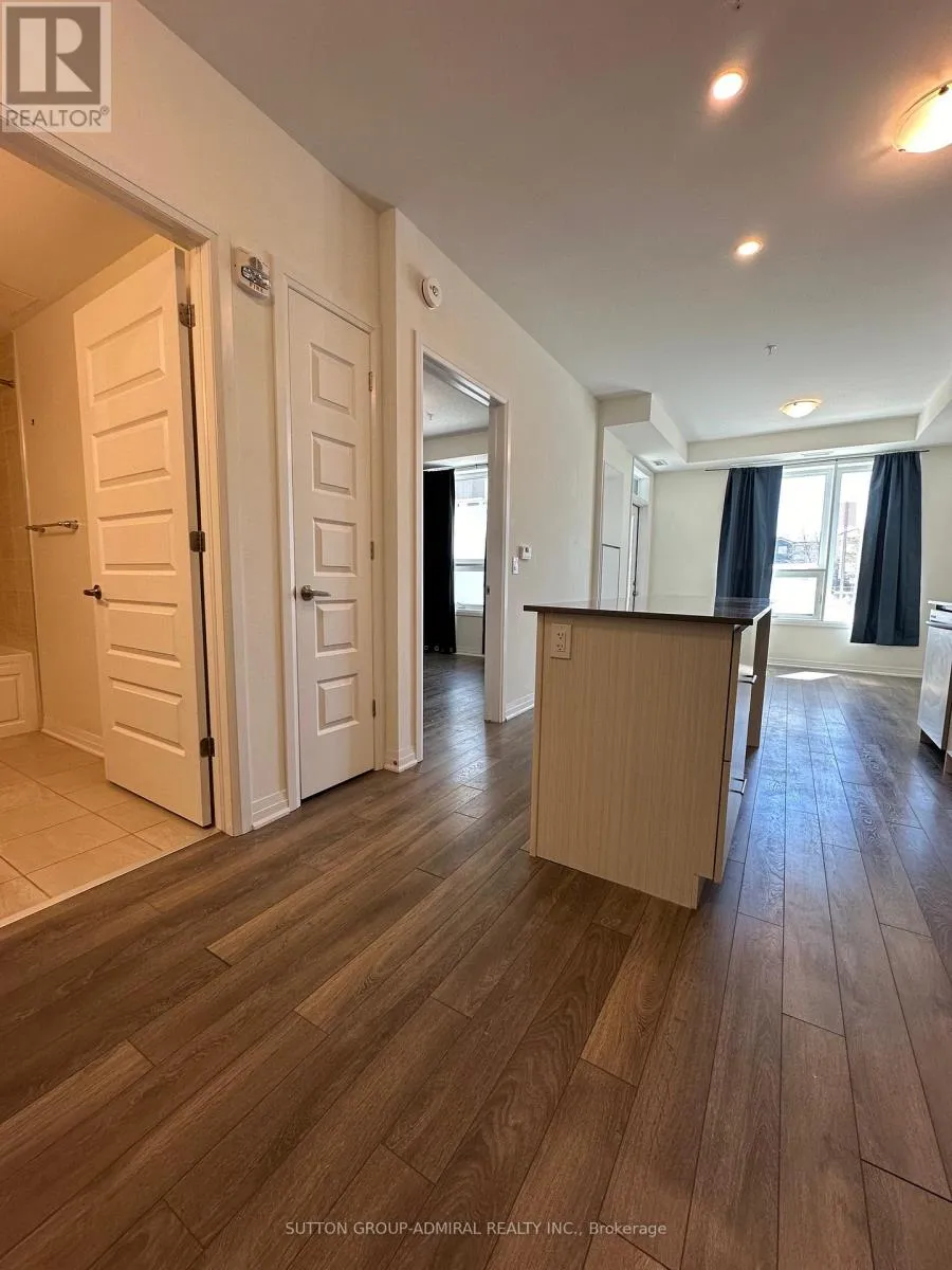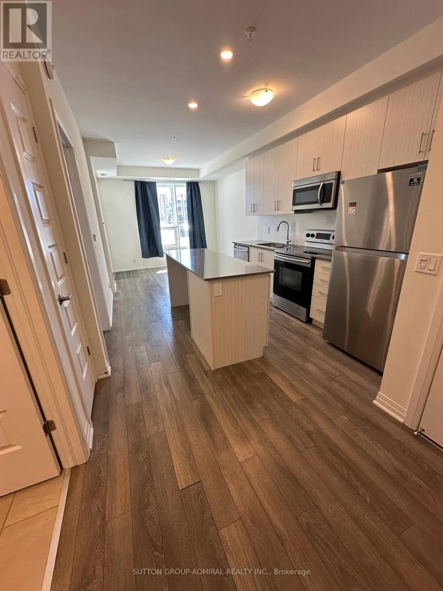 Louis St Laurent & Bronte St S Welcome to unit #103, beautiful modern 1-Bedroom, 1-Bathroom condo in Milton's desirable Ford neighbourhood. Offering a bright and functional open-concept layout, this unit features upgraded laminate flooring throughout, pot lights, and a stylish upgraded kitchen island that anchors the living space perfectly. Large windows flood the unit with natural light, creating an inviting and airy atmosphere. The spacious bedroom includes a generous closet, while the well-appointed bathroom and convenient in-suite laundry add everyday comfort. A standout feature is the private ground-floor patio, offering a rare second entrance directly to and from the unit - ideal for added convenience, easy access, and enjoying outdoor space. Additional highlights include underground parking and an exclusive-use locker for extra storage. Located close to schools, parks, shops, Hwy 407 & 401, and just minutes to Milton GO Station, this home offers exceptional accessibility and lifestyle convenience. An excellent opportunity for first-time buyers, downsizers, or investors alike. (id:27476)