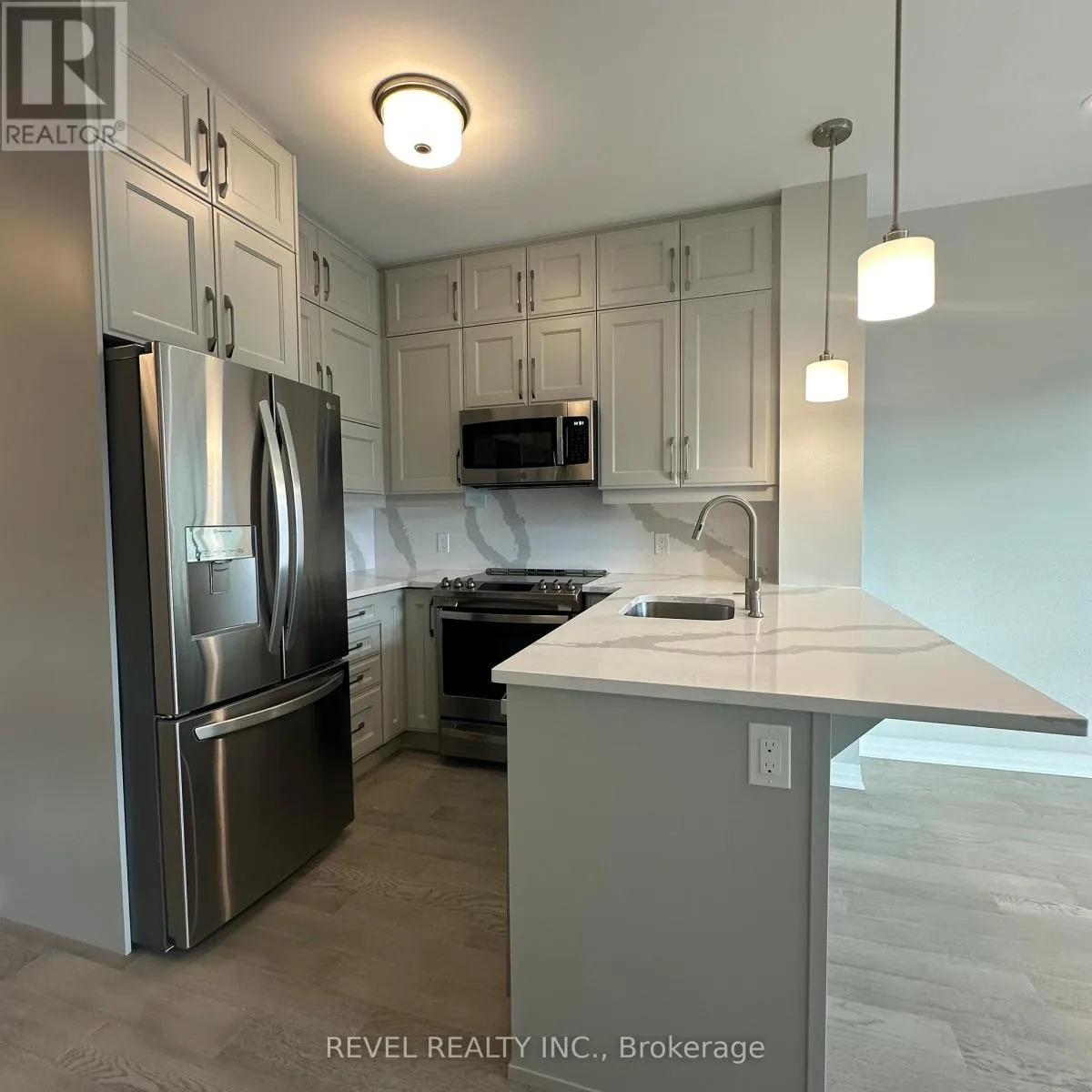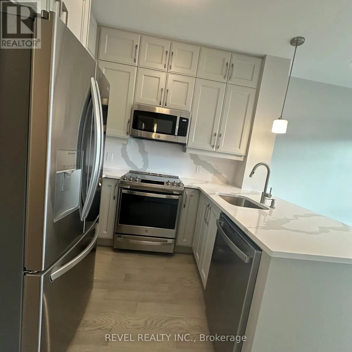 Cross Streets: Tremaine Rd & Gordon Krantz Av. ** Directions: Tremaine / Gordon Krantz. Welcome to Suite 414 at 460 Gordon Krantz Avenue - a thoughtfully upgraded 1-bedroom, 1-bath residence offering contemporary design and lovely finishes throughout. The sleek kitchen showcases extended upper cabinetry with soft-close hardware, quartz countertops, and full-size stainless steel appliances .The unit features 9-foot ceilings, durable hard flooring throughout, pot lights, and upgraded lighting for a bright, modern feel. Floor-to-ceiling windows are outfitted with remote-controlled blinds, and the spacious glass-enclosed balcony allows for comfortable use in every season. The bathroom features quartz counters, soft-close cabinetry, and a walk-in glass shower. Enjoy the convenience of in-suite laundry with full-size stacked machines. This suite also includes one underground parking space and a storage locker conveniently located directly across from the parking space. Residents have access to premium building amenities including a 24-hour concierge, fitness center, party room, and an impressive rooftop terrace designed for entertaining. (id:27476)