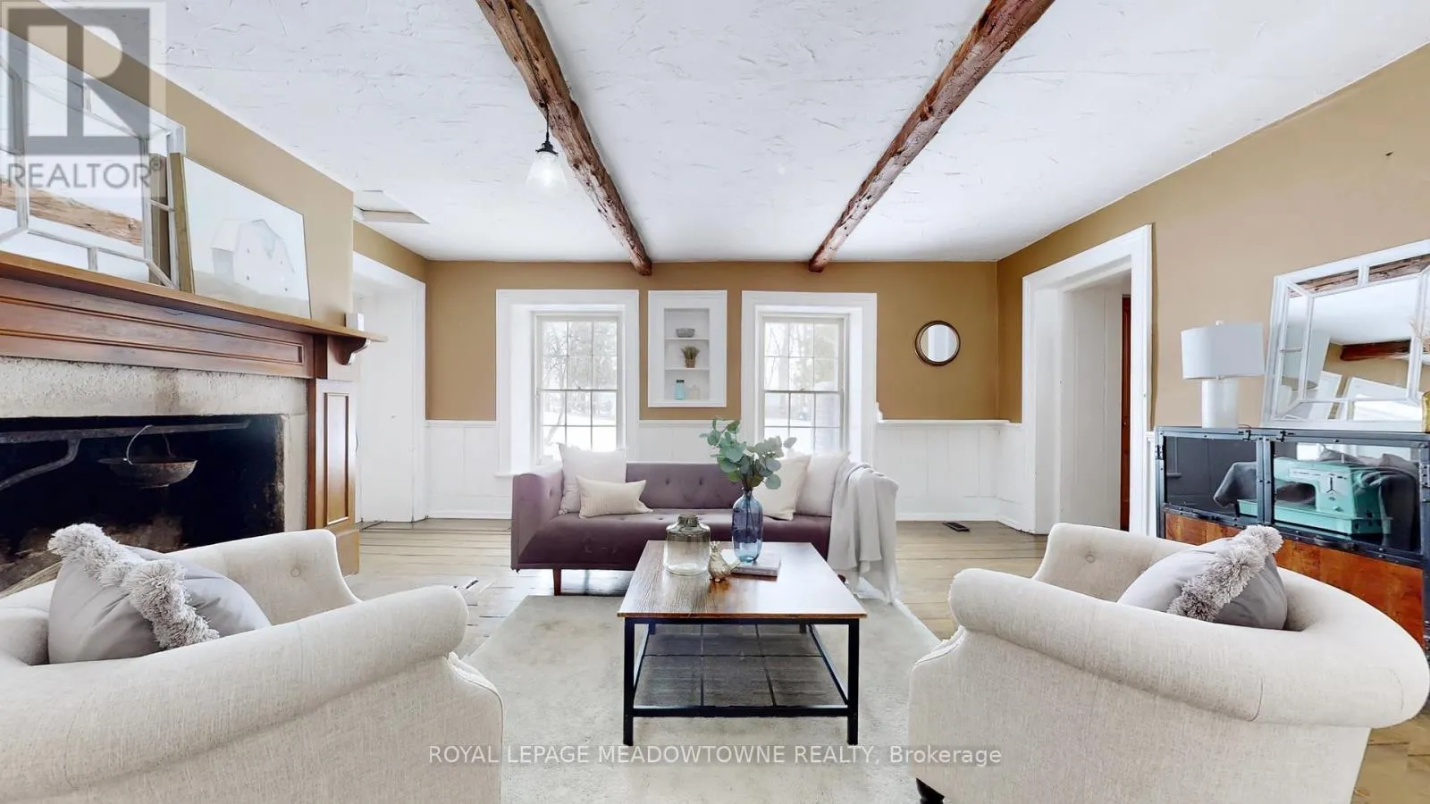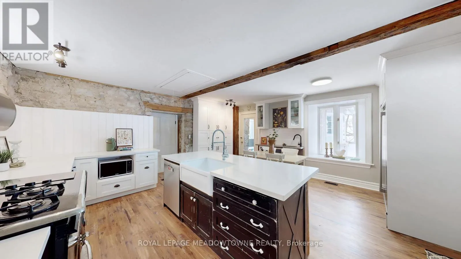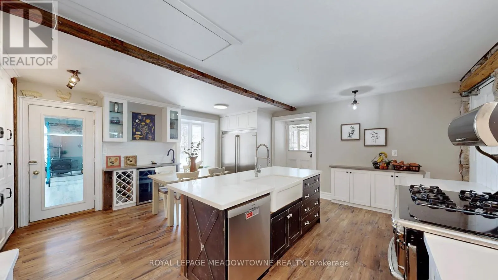 Cross Streets: 25 Side Road & Nassagaweya-Equesing Townline. ** Directions: North of Milton and South of Acton. Step away from the ordinary in this welcoming 3,442+ sf, 4 bdrm, 4 bath century home ideal for families seeking space, privacy and a connection to nature. This treasured home blends timeless character on a private 10-acre setting for the ideal hobby farm. You will be transported back in time with a warm with soaring ceilings, open hearth wood-burning fireplaces, deep window sills, and original details. The unique and versatile floor plan can accommodate extended family needs. The recently renovated kitchen showcases a striking stone wall with timber beam accents, stone countertops, hardwood flooring, a vintage-style Elmira Stove, and a centre island with breakfast bar. Separate family, living, and dining rooms provide ample space for both everyday living and special occasions. The formal dining room currently serves as a main-floor primary bedroom, complete with a walk-in closet/office. The 2nd dining and currently used as a gym features oversized windows, a striking stone wall, and ample space for a harvest table, with a walkout to the garden. More conveniences include an enclosed sunroom, a mudroom with access to the 2 car garage, main-floor laundry, and a stately wood staircase to the bedrooms. Enjoy a pool area, views of a tranquil pond, a vegetable garden, storage & barn and gently rolling open fields that are perfect for exploring and pasture. An energy-efficient heat pump for heat and air conditioning (2019), R50 attic insulation, and updated asphalt shingles. Versatile outbuildings and an attached two-car garage offer ample space for cars, hobbies, toys, motorbike, outdoor gear and more. A generous driveway and laneway provide plenty of parking for cars, trucks and campers. All this is located just minutes from town amenities, schools, churches, Blue Springs Golf Club, and the GO Train station offering the perfect blend of country living and Town convenience. (id:27476)