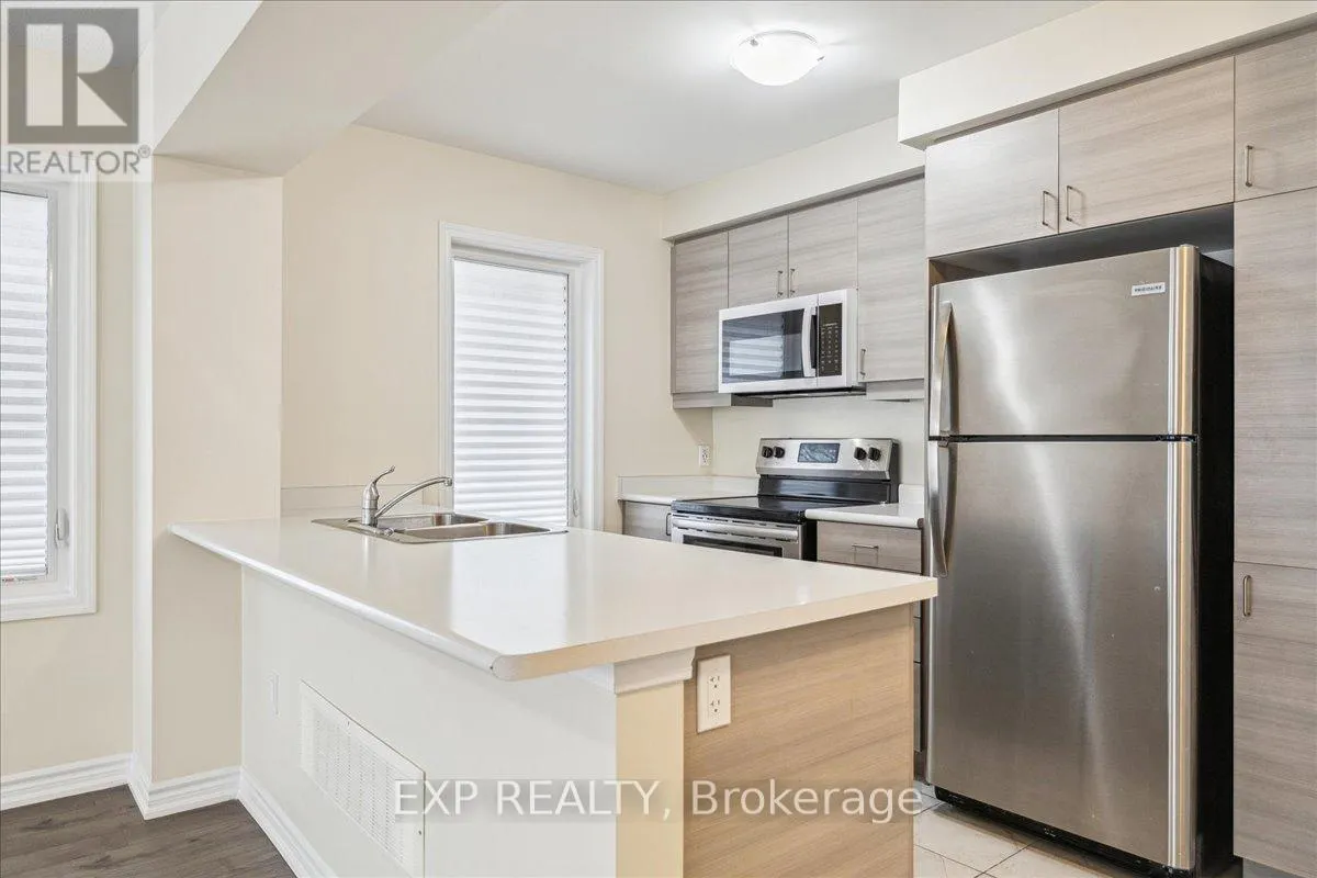 Bronte St. S & Louis St. Laurent Immaculate Mattamy end-unit freehold townhome! Solid-brick exterior + Coveted 3 Car parking - Long driveway + 1 garage space. 1,333 sq. ft. (per builder's plan) in Milton's sought-after Ford neighbourhood. This bright, beautifully maintained home offers 3 bedrooms, 2 bathrooms, and a versatile main-floor den space - perfect for working from home. Direct garage access. The second level features an open layout with large windows, abundant natural light, and a spacious living/dining area ideal for both daily living and entertaining. The modern kitchen shines with stainless appliances, ample cabinetry, and generous counter space. Upstairs, you'll find 3 well-sized bedrooms, including a primary w/ walk-through access to a stylish semi-ensuite bath. Lovingly cared for - shows well throughout. Close to top schools, parks, trails, Kelso Conservation, highways 401/407, Milton GO, and all major amenities. A turnkey gem for families, professionals, & investors alike. Don't Miss! (id:27476)