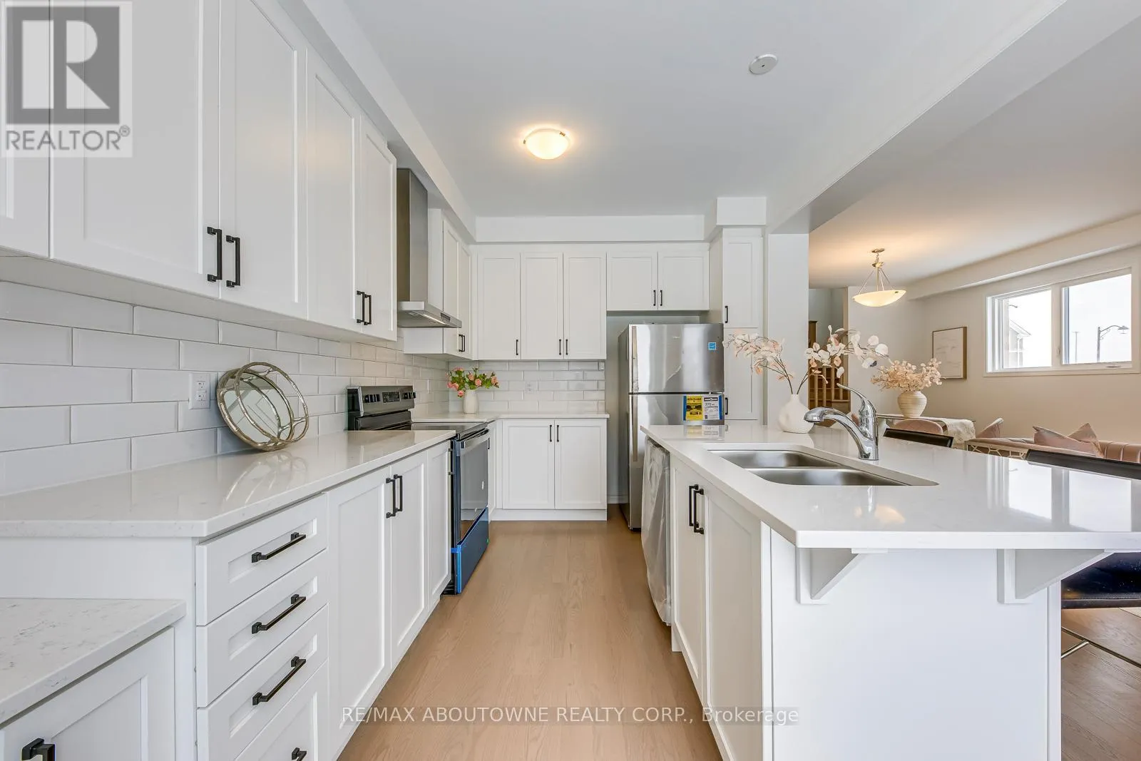 Ferguson Dr & Louis St. Laurent One-year-new, never-lived-in fully upgraded 1938 sq. ft. end unit townhouse located on a quiet street of Milton's mostdesirable new development subdivisions. This sun-filled home offers a thoughtfully designed layout featuring 4 spacious bedrooms, 3 modernwashrooms, 2 walk-in closets and 9 feet ceilings on both main and second floor. The open-concept main floor features abundant natural light,and a modern kitchen with a large center island, high-end cabinetry, and upgraded quartz countertops. Tasteful hardwood flooring andstaircases add elegance throughout the home, while upgraded porcelain tiles enhance all washrooms. As an end unit, this home enjoys addedprivacy and natural light, with one side backing onto peaceful backyard green space. Ideally located close to the community centre, schools,shopping, public transit, major highways, and all essential amenities, this home offers both comfort and convenience. (id:27476)