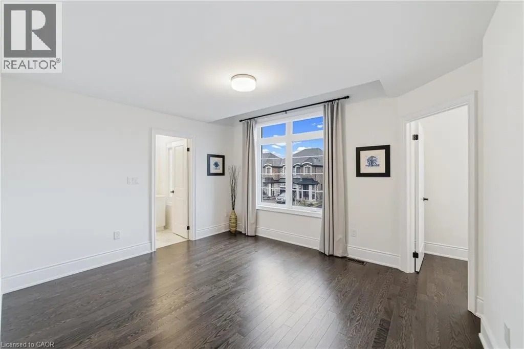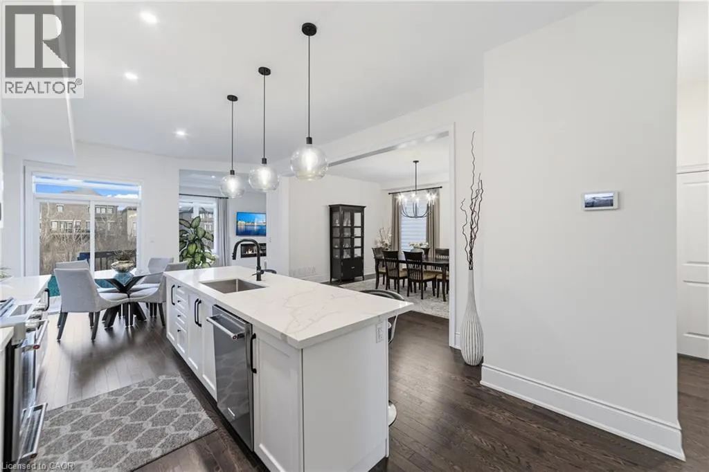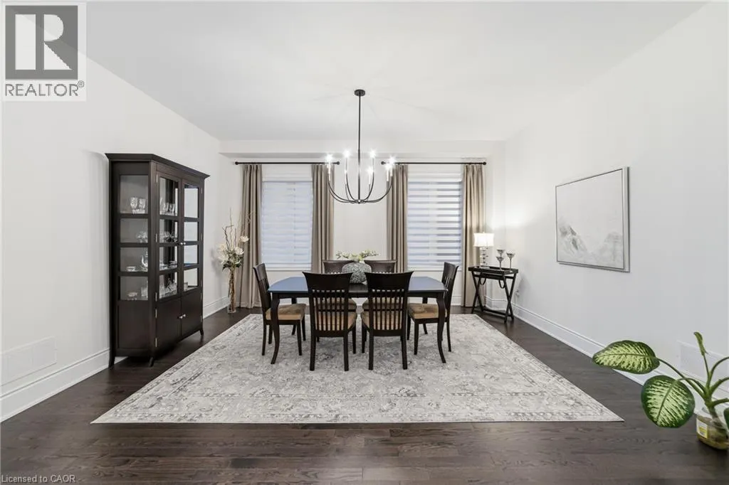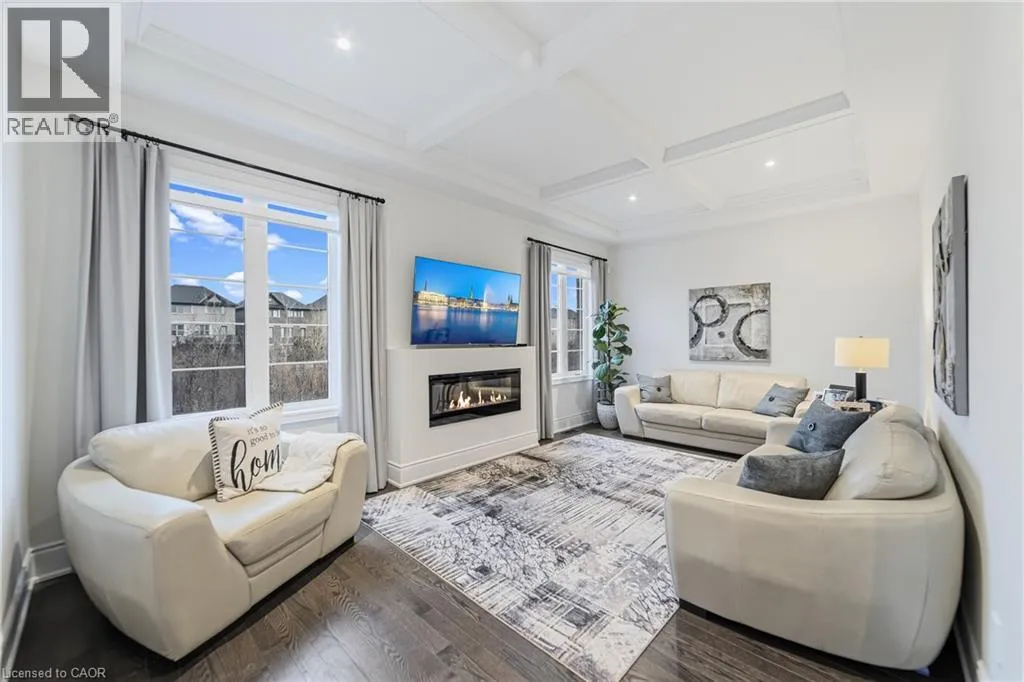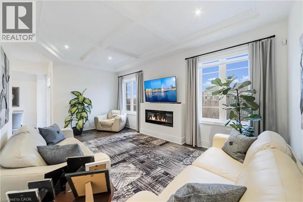 Welcome to this exceptional 4-bedroom, 4.5-bathroom home built by the renowned builder Country Homes, perfectly situated backing onto tranquil green-space for added privacy and beautiful sunfilled backyard views. Designed with both comfort and elegance in mind, this home features 10-foot ceilings on the main floor and thoughtfully upgraded finishes throughout.The stunning kitchen serves as the heart of the home with large centre island with hard surface countertops, stainless steel appliances (gas range) and offering a stylish and functional space ideal for everyday living and entertaining. It flows seamlessly into the spacious dining and family room highlighted by a sophisticated waffled ceiling, creating a warm and inviting atmosphere.Upstairs, the primary bedroom provides a luxurious retreat, complete with large his-and-hers walk-in closets and a beautifully appointed 5 piece ensuite bathroom. Each additional bedroom offers generous space with the front bedroom offering private ensuite and walk-in closet with window. This home is bright and inviting throughout with a ton of natural light and pot lights. Additional features include fantastic stone patio entrance and back patio, over sized basement windows, large baseboards, a rough-in for an electric car charger, central vacuum system, and quality craftsmanship that Country Homes is known for. There is ample parking space for large family with up to six car parking. Backing directly onto peaceful greenspace, enjoy backyard gatherings on deck (gas line installed for bbq), and large lower patio allows tons of space for family and friends. This property offers a rare combination of privacy, modern convenience, and timeless design.A truly outstanding opportunity to own a thoughtfully designed home in a desirable setting. (id:27476)