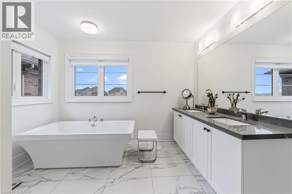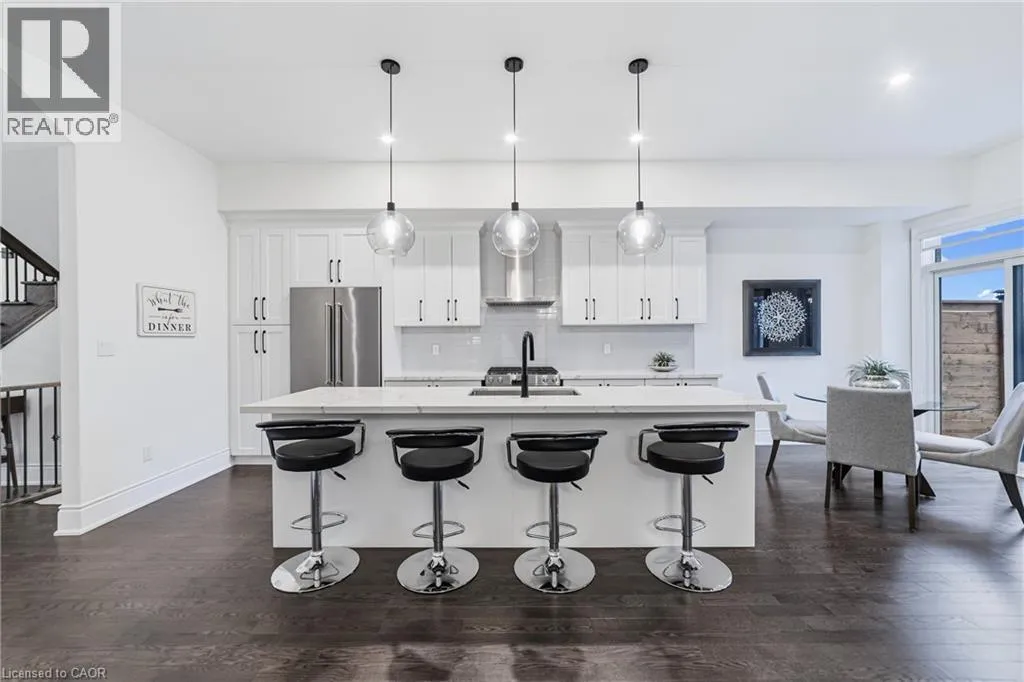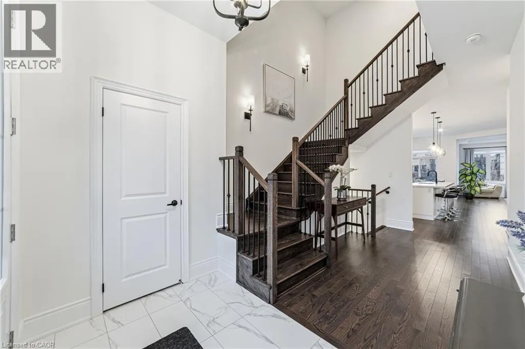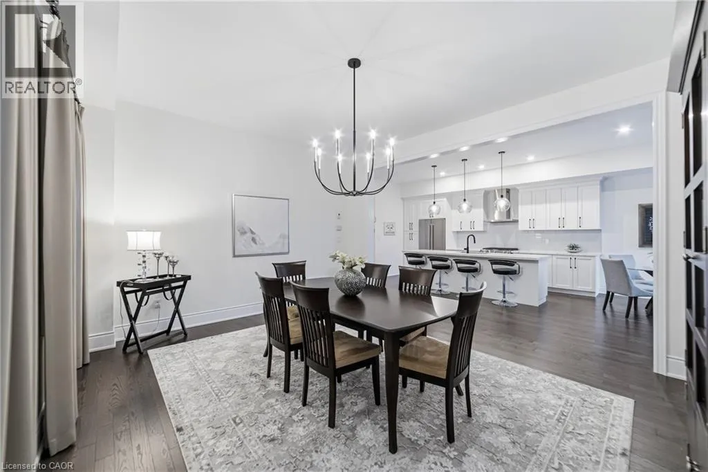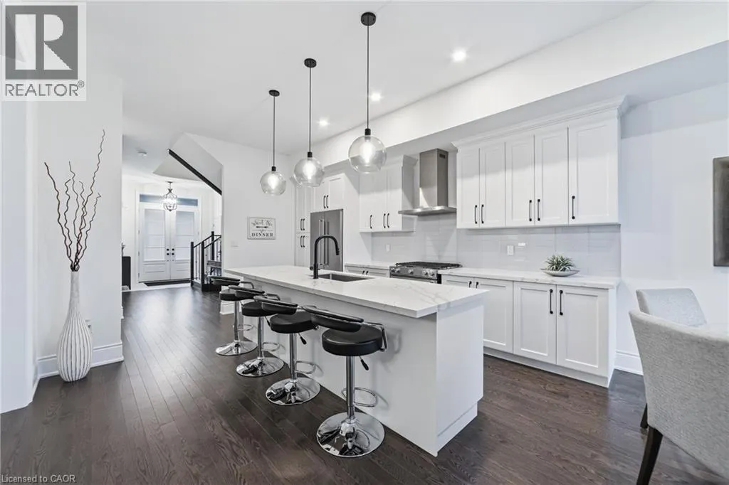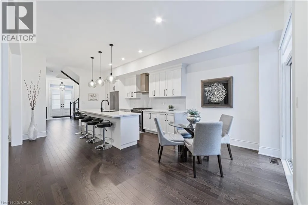 Welcome to this exceptional 4-bedroom, 4.5-bathroom home built by the renowned builder Country Homes, perfectly situated backing onto tranquil green-space for added privacy and beautiful sunfilled backyard views. Designed with both comfort and elegance in mind, this home features 10-foot ceilings on the main floor and thoughtfully upgraded finishes throughout.The stunning kitchen serves as the heart of the home with large centre island with hard surface countertops, stainless steel appliances (gas range) and offering a stylish and functional space ideal for everyday living and entertaining. It flows seamlessly into the spacious dining and family room highlighted by a sophisticated waffled ceiling, creating a warm and inviting atmosphere.Upstairs, the primary bedroom provides a luxurious retreat, complete with large his-and-hers walk-in closets and a beautifully appointed 5 piece ensuite bathroom. Each additional bedroom offers generous space with the front bedroom offering private ensuite and walk-in closet with window. This home is bright and inviting throughout with a ton of natural light and pot lights. Additional features include fantastic stone patio entrance and back patio, over sized basement windows, large baseboards, a rough-in for an electric car charger, central vacuum system, and quality craftsmanship that Country Homes is known for. There is ample parking space for large family with up to six car parking. Backing directly onto peaceful greenspace, enjoy backyard gatherings on deck (gas line installed for bbq), and large lower patio allows tons of space for family and friends. This property offers a rare combination of privacy, modern convenience, and timeless design.A truly outstanding opportunity to own a thoughtfully designed home in a desirable setting. (id:27476)