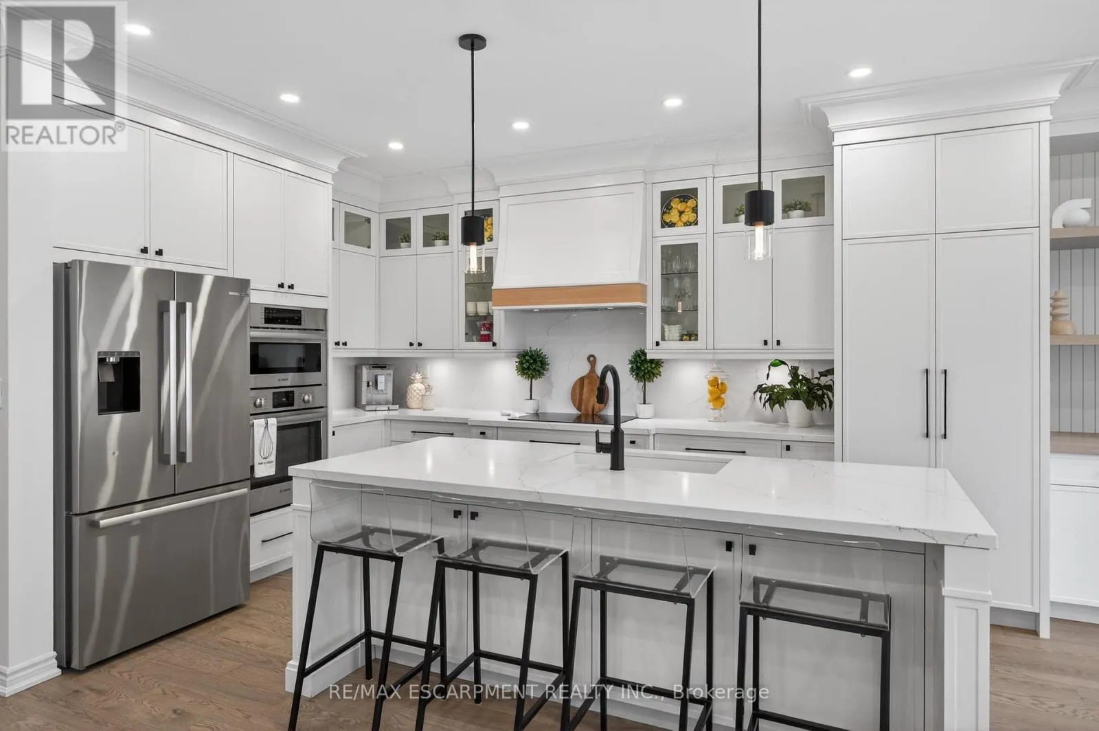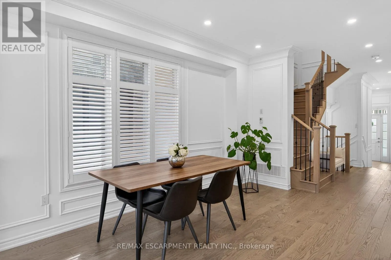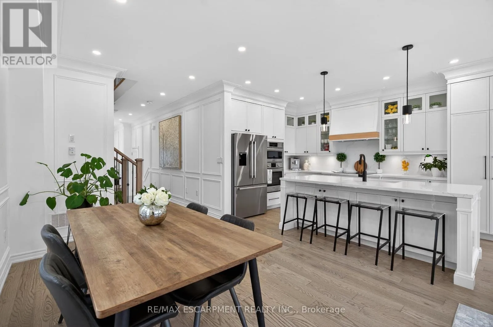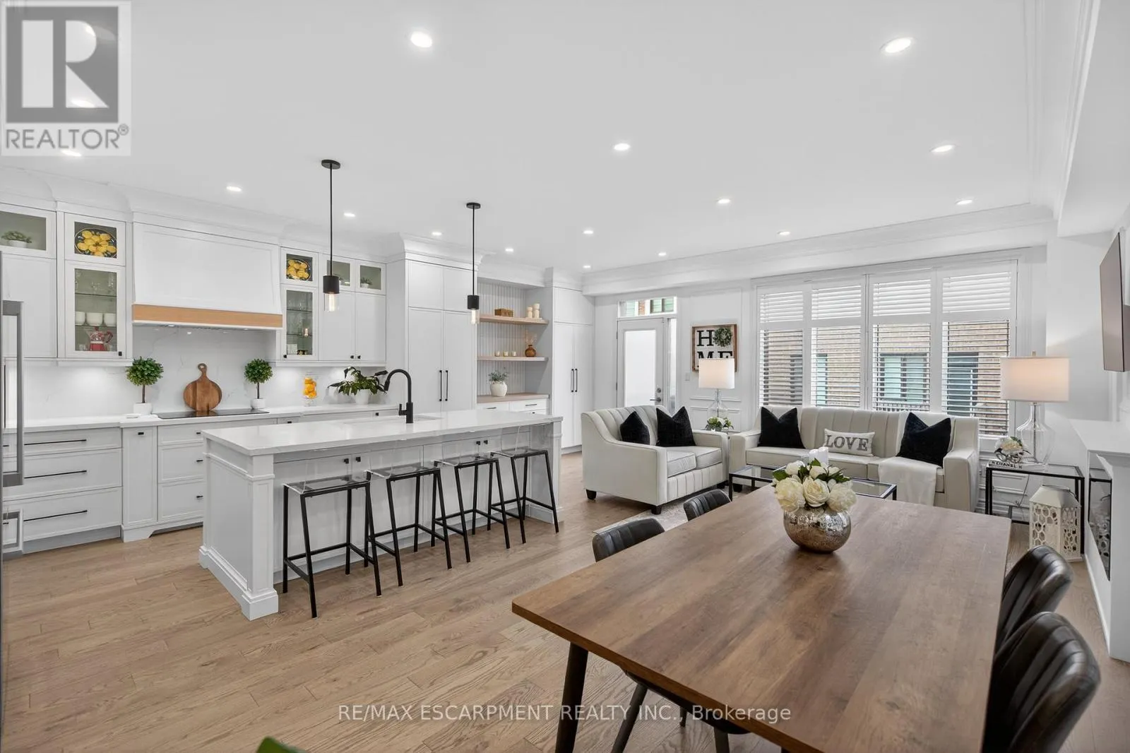 Cross Streets: Tremaine Rd/Bergamot Ave. ** Directions: Tremaine Rd N to Bergamot Ave to Watercress Way to Celandine Terr. Welcome to this gorgeous, one-of-a-kind 4-bedroom end-unit townhome, ideally located on a quiet street in the highly sought-after South West Walkers community. Thoughtfully designed and meticulously maintained, this home showcases upscale finishes and a functional, modern layout perfect for families and entertainers alike. Main Level Open-concept layout with smooth ceilings, elegant crown moulding, and custom wainscoting, Upgraded engineered hardwood flooring and California shutters throughout , Pot lights and an electric fireplace add a ambiance to the spacious living area, Renovated Chef inspired kitchen featuring a full wall of sleek cabinetry with glass inserts, Large pantry and quartz countertops, Generous island with breakfast bar, Under-cabinet lighting, stylish backsplash, and built-in stainless steel appliances, elegant oak staircase with iron pickets leads to upper level, Four generously sized bedrooms including a Luxurious primary retreat complete with walk-in closet and spa-like ensuite, featuring a glass shower, soaker tub, and double sinks, upper level laundry, main bath has double sinks, Located minutes from top-rated schools, Walker Park, scenic trails, Hwy 401 & 407, Milton Sports Centre, Sherwood Community Centre, Milton District Hospital, Rattlesnake Point Golf Club, and so much more. Don't miss your chance to own this exceptional home in a vibrant, family-friendly neighbourhood! (id:27476)