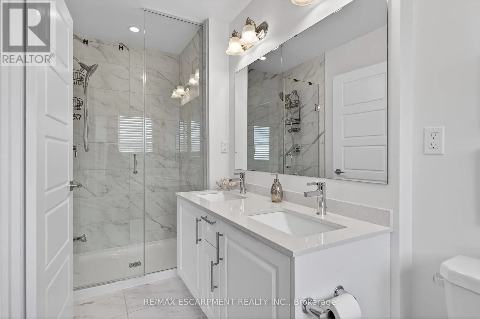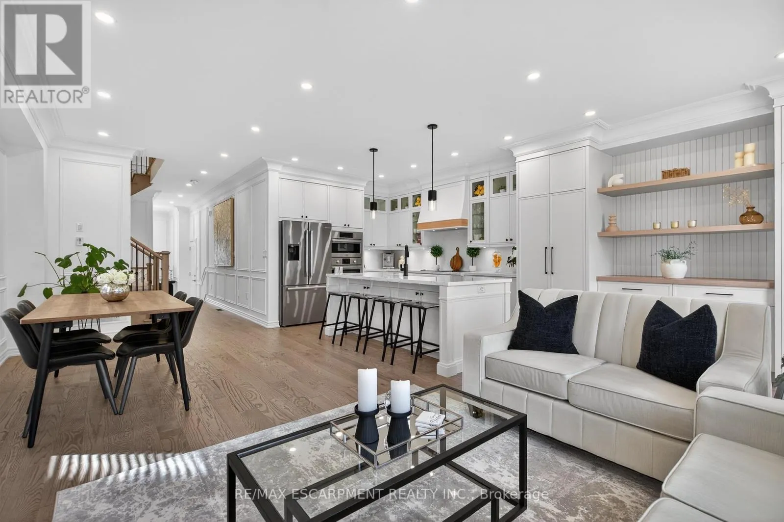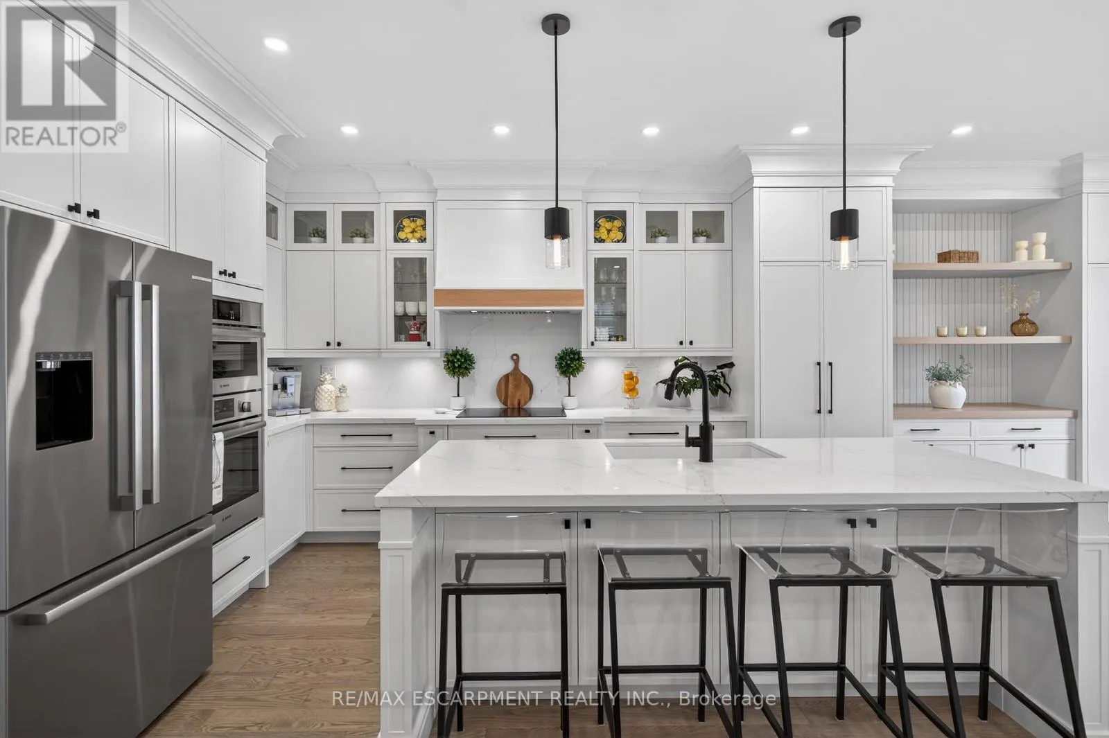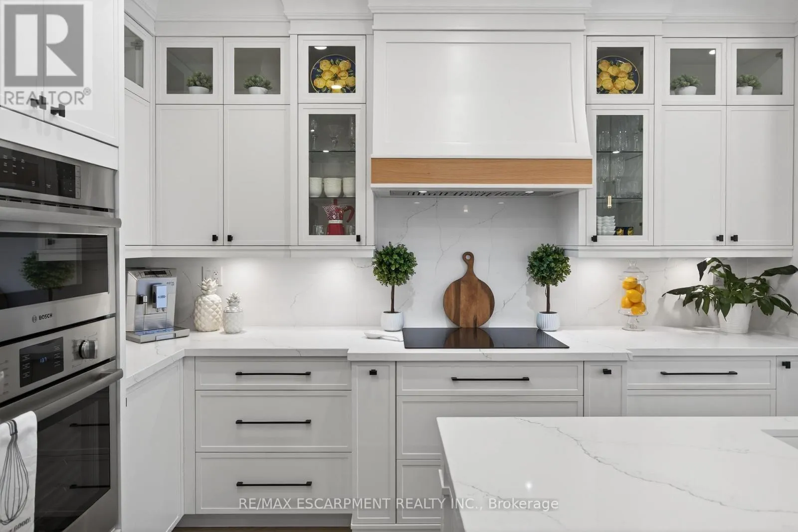Cross Streets: Tremaine Rd/Bergamot Ave. ** Directions: Tremaine Rd N to Bergamot Ave to Watercress Way to Celandine Terr. Welcome to this gorgeous, one-of-a-kind 4-bedroom end-unit townhome, ideally located on a quiet street in the highly sought-after South West Walkers community. Thoughtfully designed and meticulously maintained, this home showcases upscale finishes and a functional, modern layout perfect for families and entertainers alike. Main Level Open-concept layout with smooth ceilings, elegant crown moulding, and custom wainscoting, Upgraded engineered hardwood flooring and California shutters throughout , Pot lights and an electric fireplace add a ambiance to the spacious living area, Renovated Chef inspired kitchen featuring a full wall of sleek cabinetry with glass inserts, Large pantry and quartz countertops, Generous island with breakfast bar, Under-cabinet lighting, stylish backsplash, and built-in stainless steel appliances, elegant oak staircase with iron pickets leads to upper level, Four generously sized bedrooms including a Luxurious primary retreat complete with walk-in closet and spa-like ensuite, featuring a glass shower, soaker tub, and double sinks, upper level laundry, main bath has double sinks, Located minutes from top-rated schools, Walker Park, scenic trails, Hwy 401 & 407, Milton Sports Centre, Sherwood Community Centre, Milton District Hospital, Rattlesnake Point Golf Club, and so much more. Don't miss your chance to own this exceptional home in a vibrant, family-friendly neighbourhood! (id:27476)