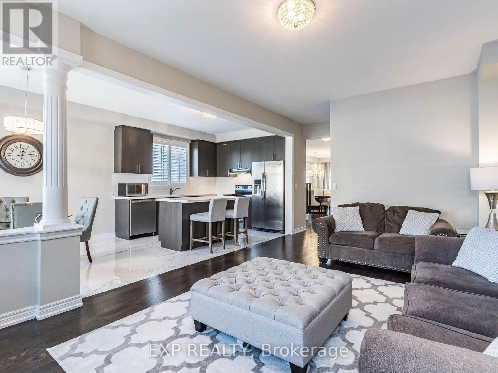 JAMES SNOW/DERRY Experience the epitome of executive living in this impeccably maintained Link home by Beaverhall, located in a sought-after neighborhood with convenient access to highways 401 and 407, the GO station, public transit, top-rated schools, and scenic parks. This home boasts 9-foot ceilings and gorgeous walnut-stained hardwood floors throughout. The large kitchen is equipped with built-in stainless-steel appliances, a center island, and a walkout to a fenced backyard. Enjoy formal dining in a separate dining room and cozy evenings by the gas fireplace in the spacious family room. The solid oak staircase leads to an oversized master bedroom featuring coffered ceilings, an ensuite bathroom, and walk-in closet. The second floor also offers the convenience of a laundry room and is adorned with California shutters throughout. Showing exceptionally well, this home is a perfect blend of style, comfort, and convenience. (id:27476)
