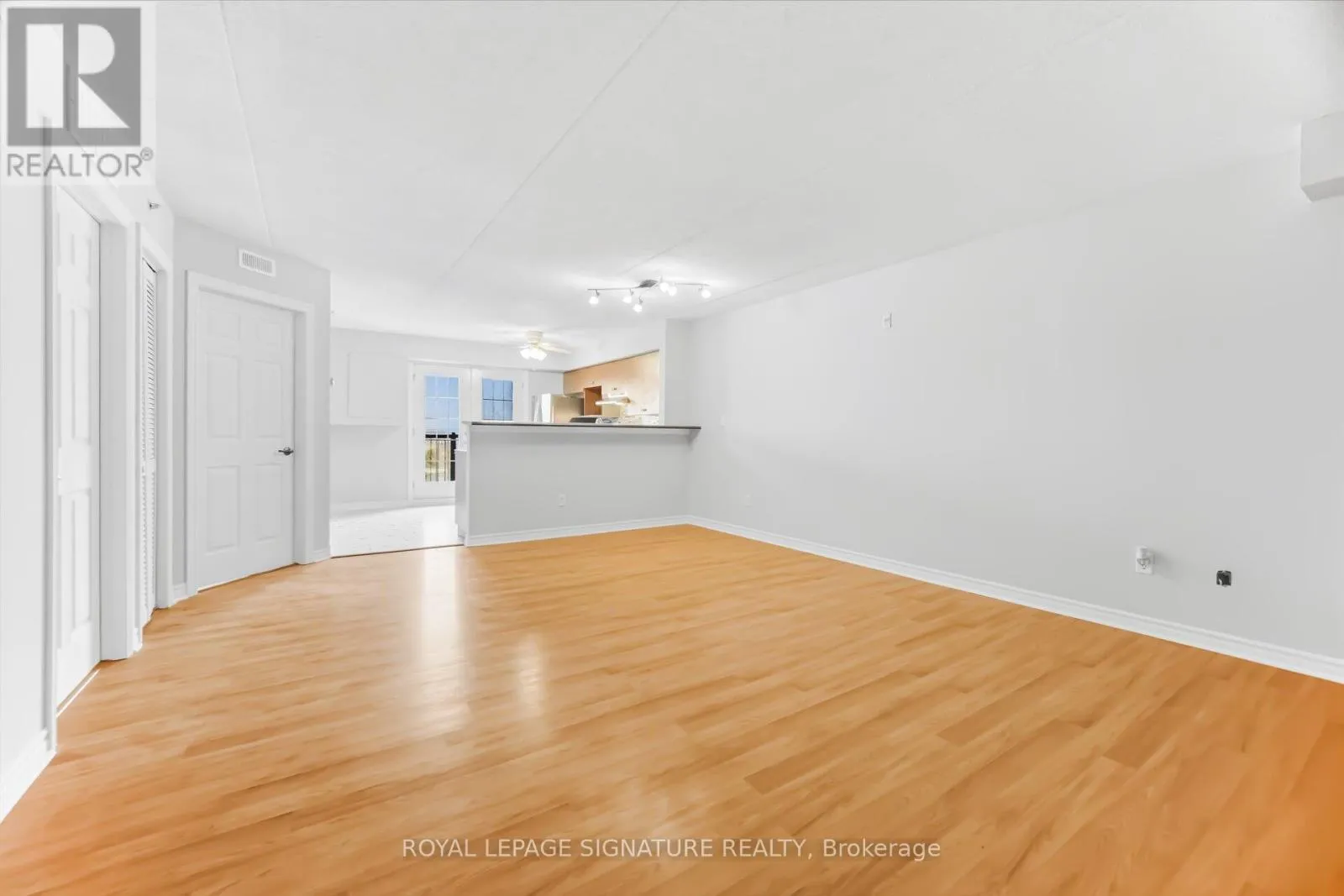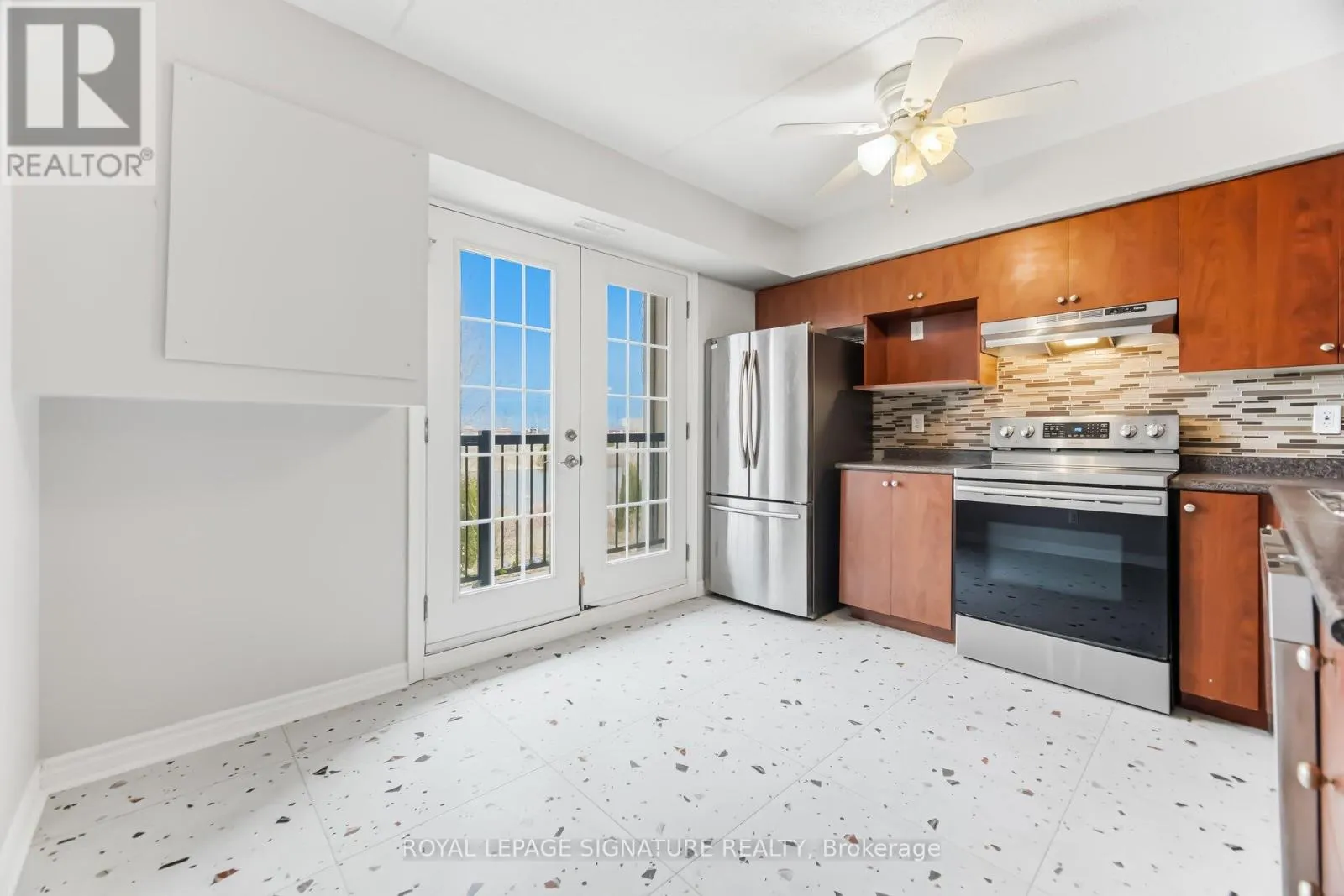 Maple Ave & Main St E Fabulous lake/pond view huge 893 sf 1 bed + 1 large den - can be used as 2nd bedroom. Freshly painted unit in the "Maple Crossing" community. Easy clean laminate flooring. Grand open concept living. Eat-in kitchen, ceramic floor & backsplash. Stainless steel appliances. Walk out to private balcony, overlooks tranquil pond & parkland setting. The unit comes with ensuite laundry, parking underground, gym, locker, party room/club house for private gatherings, bicycle rack, visitors parking. The building is secured with video surveillance. Minutes to hwy 401 & 407, shops & restaurants, schools, parks, Milton GO station, movie theatre, plus hospital nearby. "Let's Make A Bond" (id:27476)