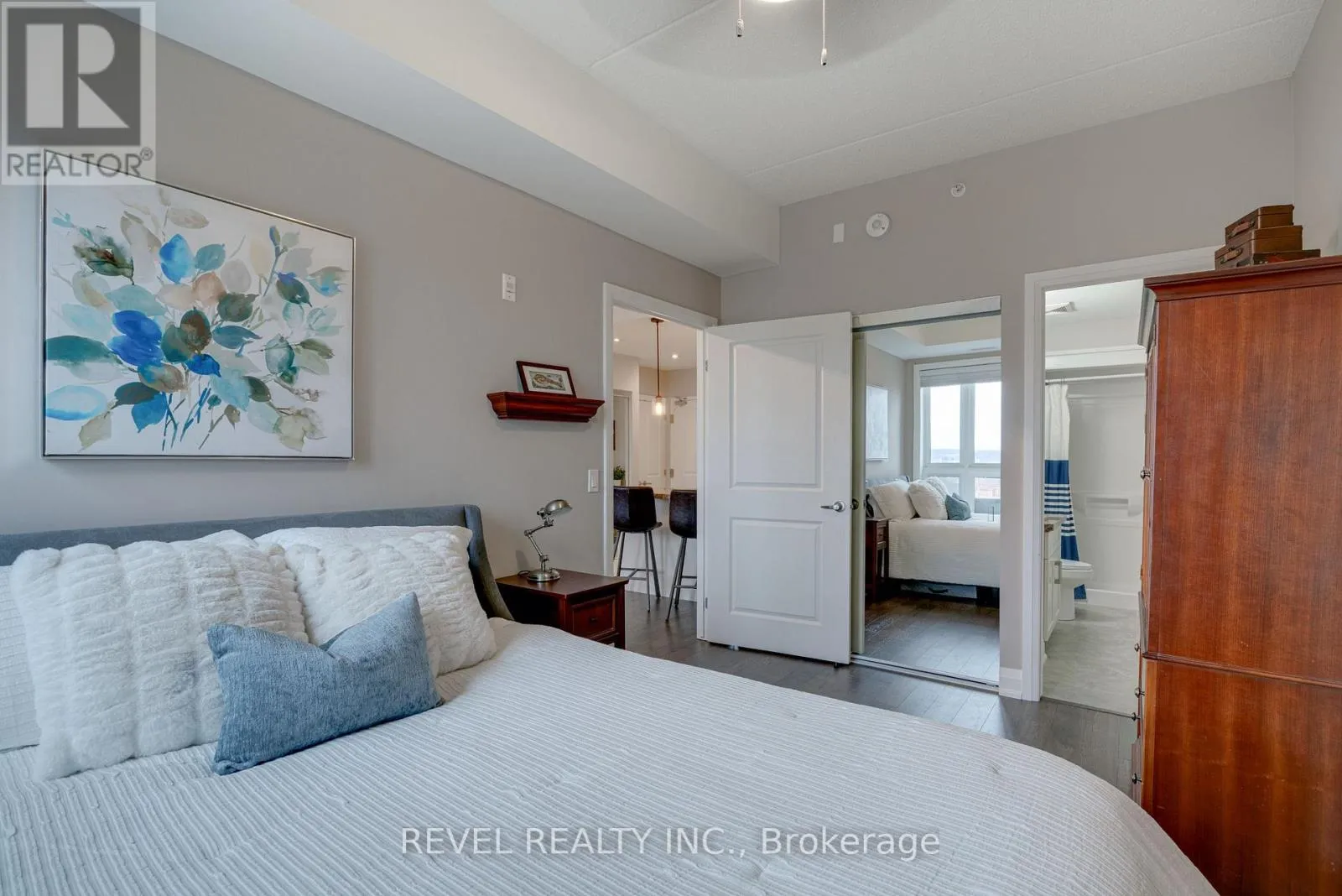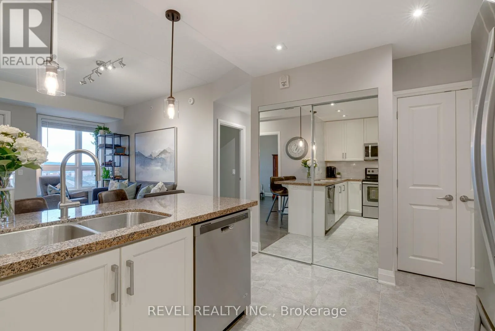 Cross Streets: Derry Road and Sauve Street. ** Directions: Derry Road south on Sauve Street. Welcome to this stunning two-bedroom condo perched on the top floor where the breathtaking sunsets and escarpment views will be your calm at the end of a busy day. Step inside to this thoughtfully designed unit featuring modern laminate flooring and a stylish kitchen highlighted by quartz countertops, a breakfast bar and traditional potlights complemented by a bright living area and walkout to a large private balcony. Both bedrooms are generously sized and offer flexibility for guests or a convenient home office. Enhanced by low maintenance fees, you will enjoy access to premium amenities including a well-equipped fitness room and an impressive rooftop deck ideal for hosting friends on a summer evening or unwinding against the night sky. Surrounded by scenic walking trails and just moments from local conveniences (schools, shops and dining), this condo offers the perfect balance between tranquility and urban accessibility - a truly exceptional place to call home. (id:27476)