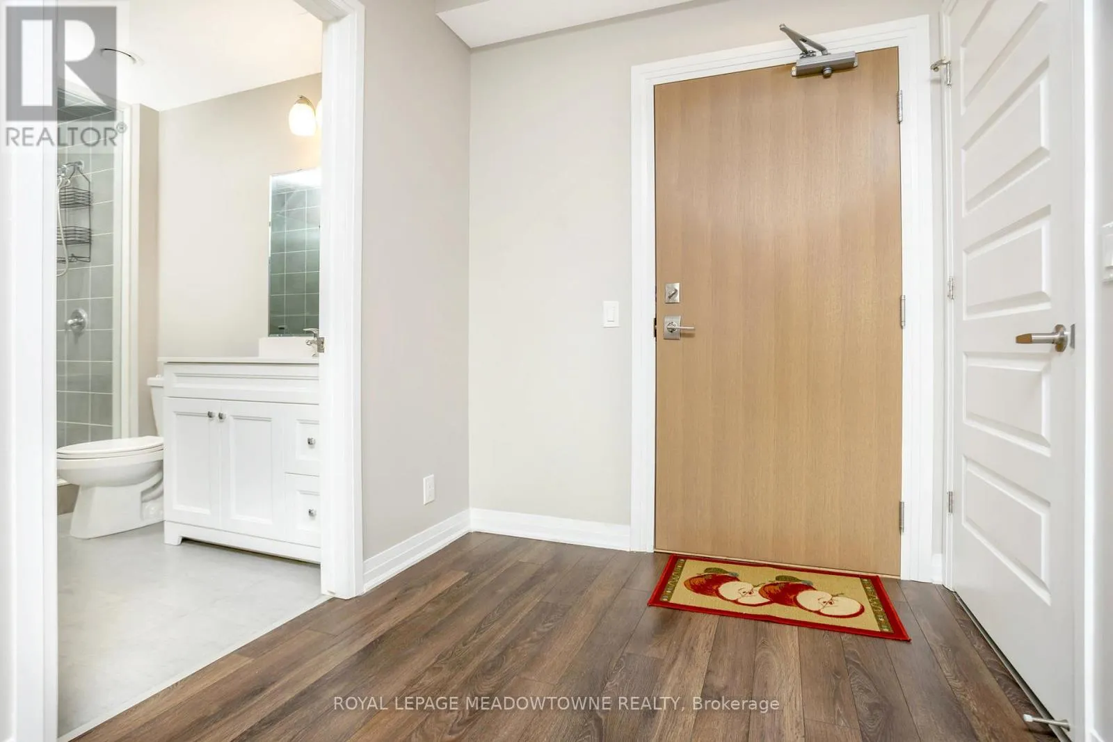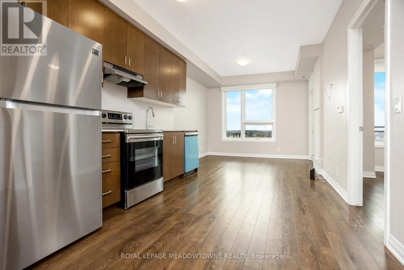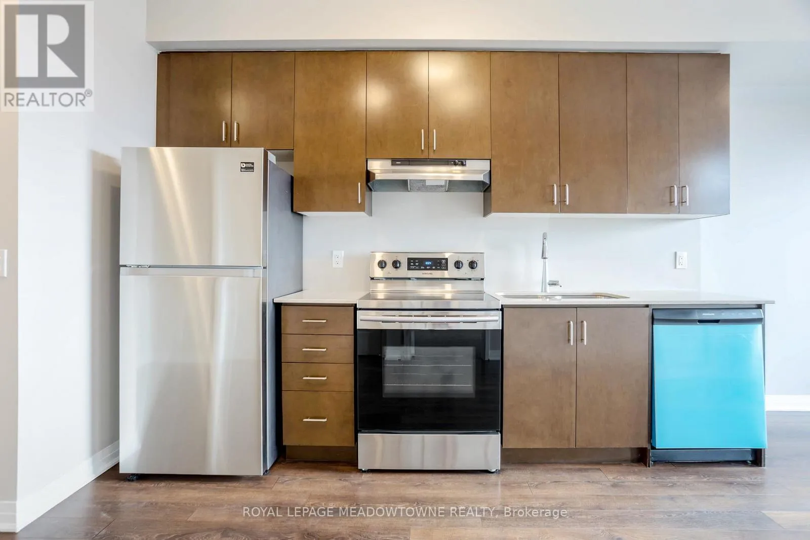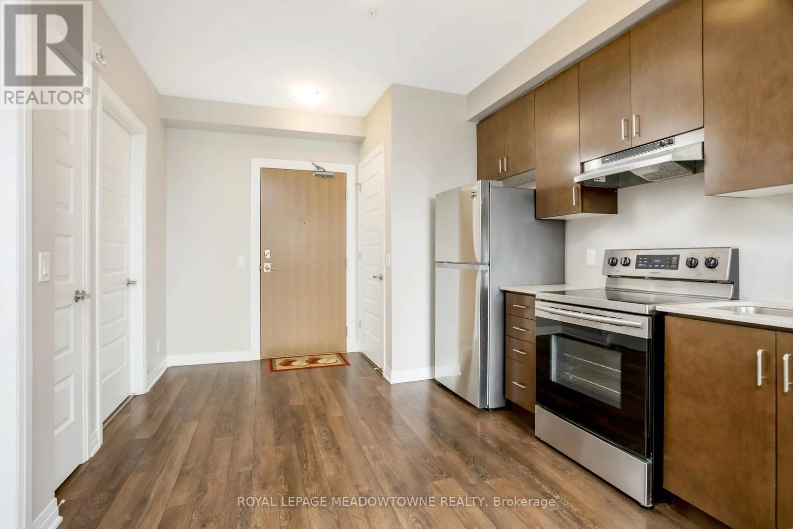 Louis St Laurent/Leger Way Delightful one-bedroom in Hawthorne South Village Condos. Located in the Ford Neighbourhood of Milton, across from Sobey's plaza, walking trails, and around the corner from elementary and Catholic high school. Laminate flooring throughout, plus renovated washroom with new tall vanity. Quartz countertops and stainless steel appliances. Covered balcony with clear South views. Extended cabinets for extra storage. Unit includes ensuite laundry plus one parking space (A-96) and locker (#312). (id:27476)