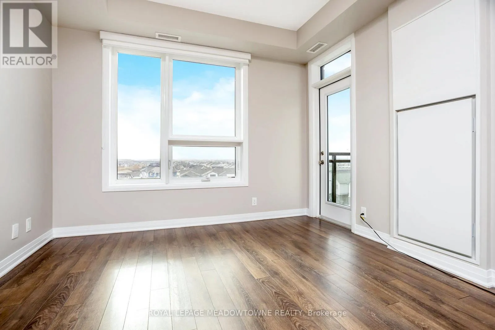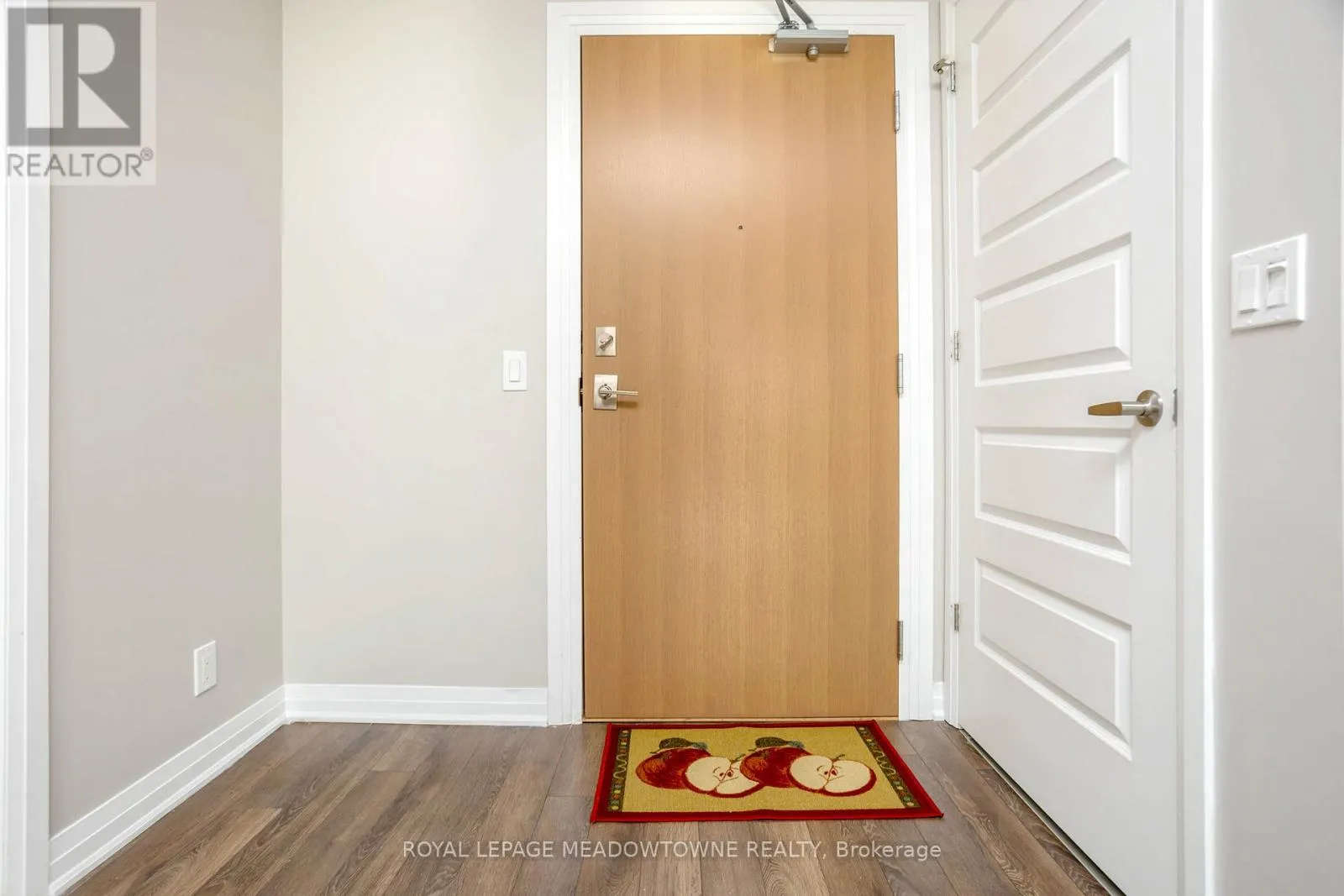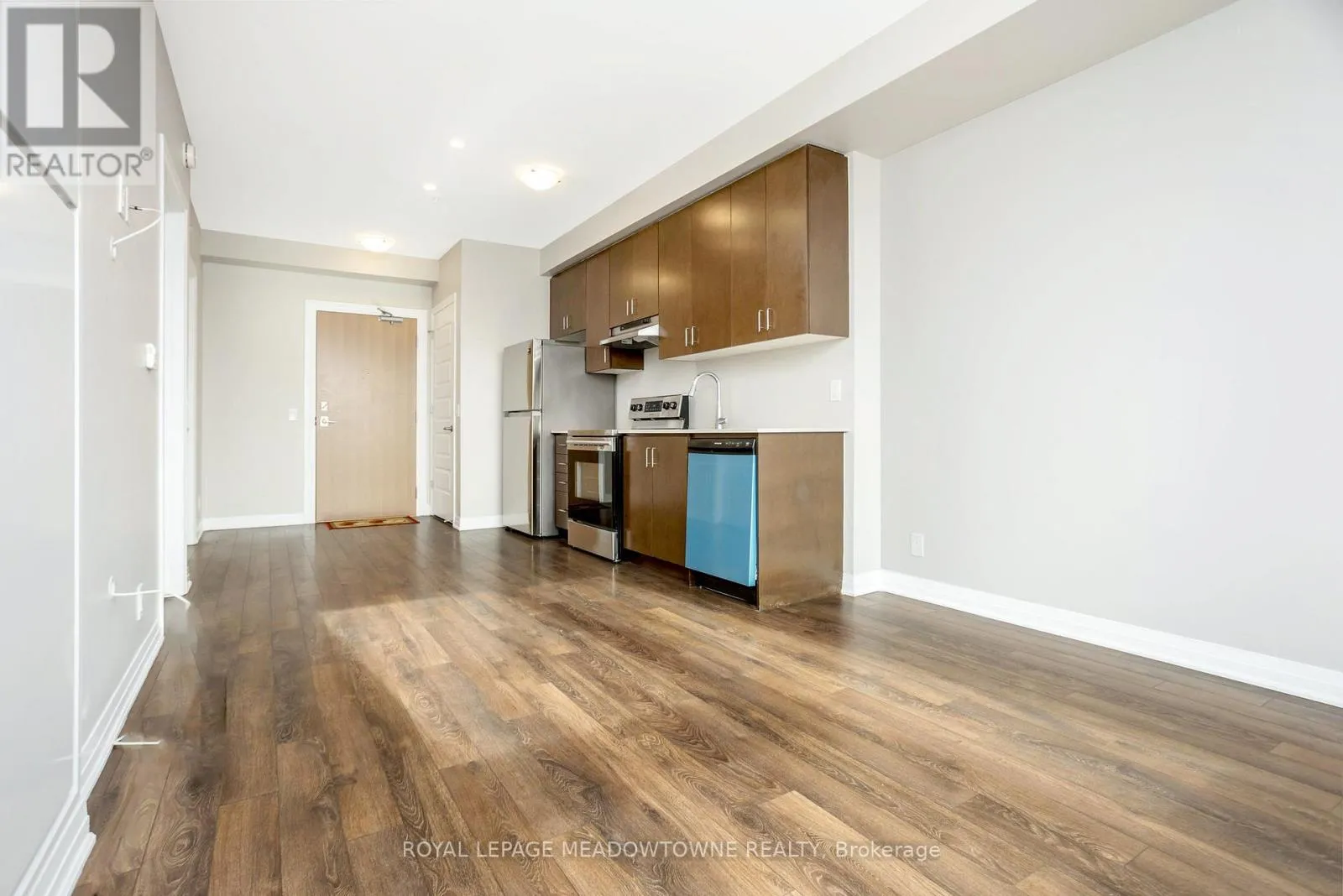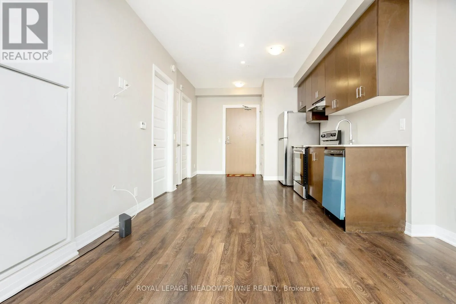 Louis St Laurent/Leger Way Delightful one-bedroom in Hawthorne South Village Condos. Located in the Ford Neighbourhood of Milton, across from Sobey's plaza, walking trails, and around the corner from elementary and Catholic high school. Laminate flooring throughout, plus renovated washroom with new tall vanity. Quartz countertops and stainless steel appliances. Covered balcony with clear South views. Extended cabinets for extra storage. Unit includes ensuite laundry plus one parking space (A-96) and locker (#312). (id:27476)