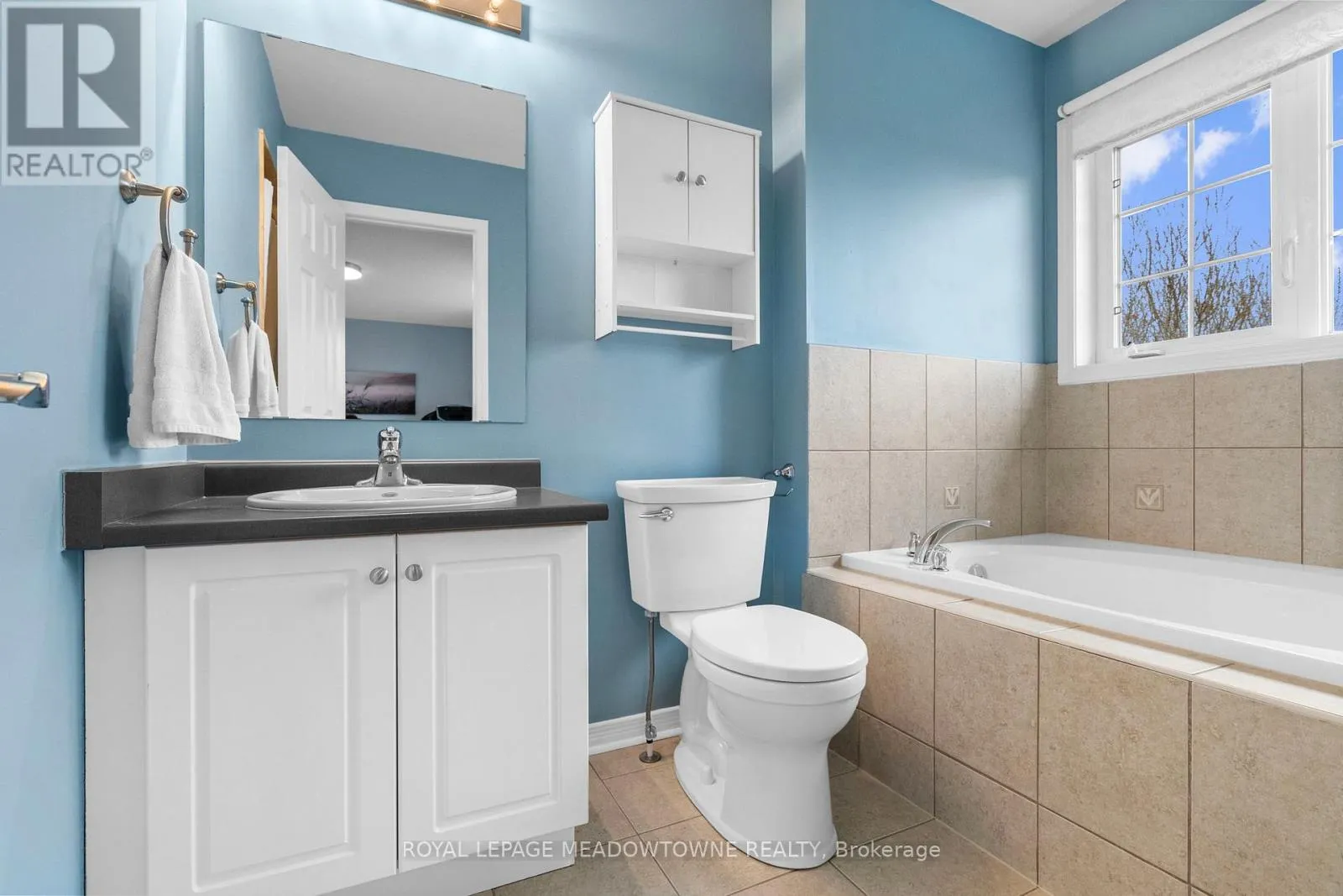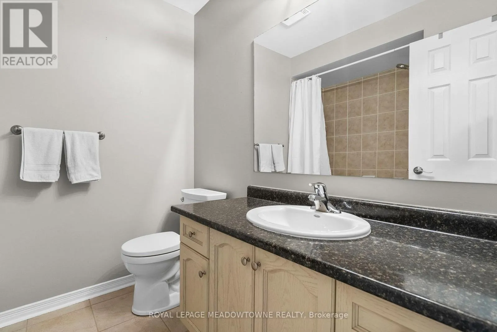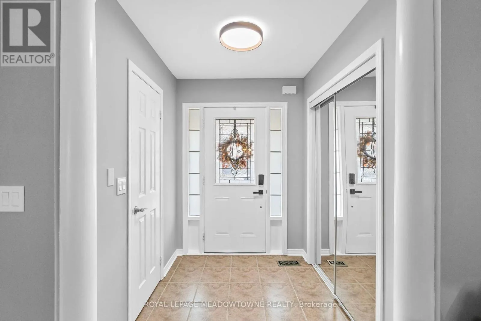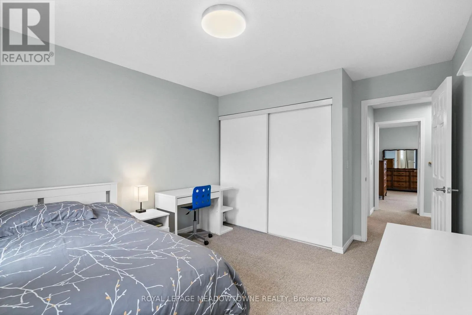 Thompson/Derry Carlton model townhome with 1,715 sq ft of living space. Backs onto mature trees and a neighbourhood park with no rear neighbours. Renovated "Adore Your Kitchen" with pantry, breakfast bar, backsplash and new appliances. Open concept main floor. 3 bedrooms, 3 bathrooms including 2 full upstairs. Convenient second floor laundry. Finished basement with rare, functional storage space. Quiet, low-traffic street. Walk to schools, parks, community centre, arts centre and GO. Parking for 3 cars. (id:27476)