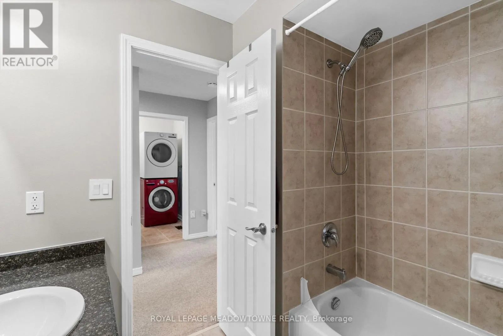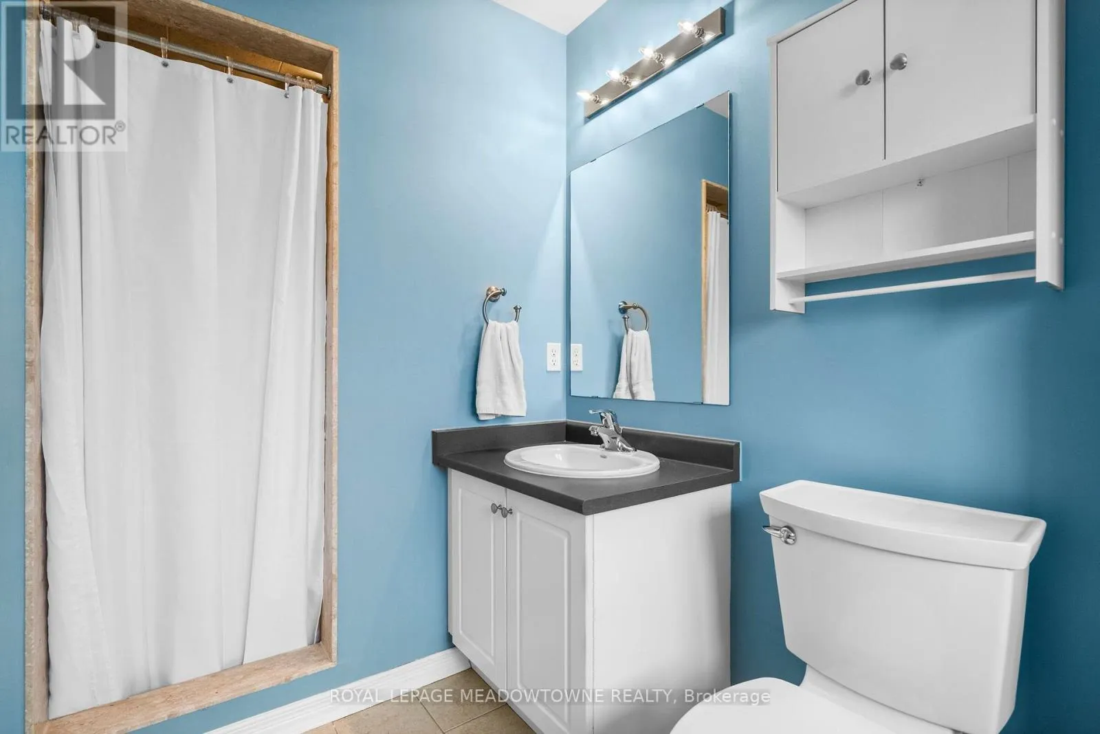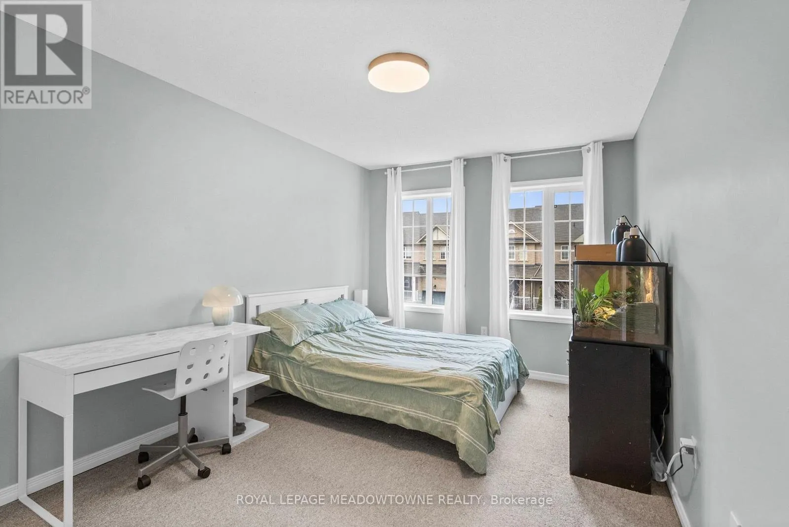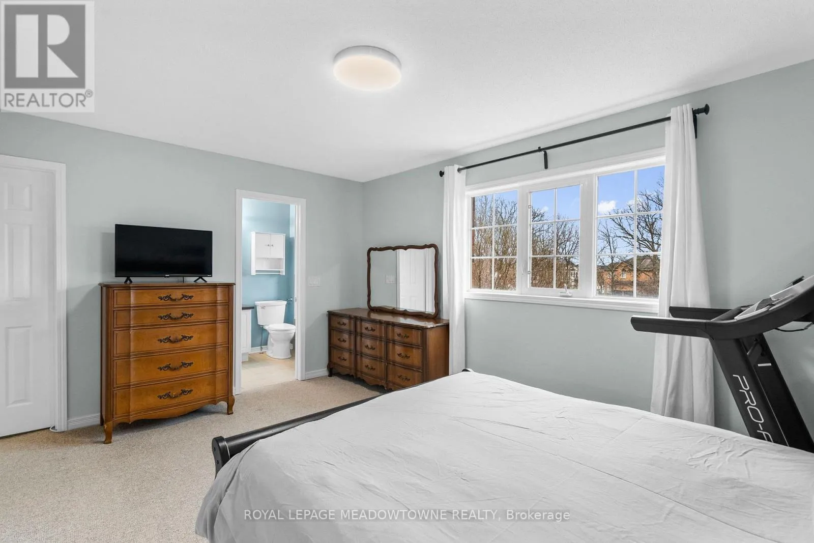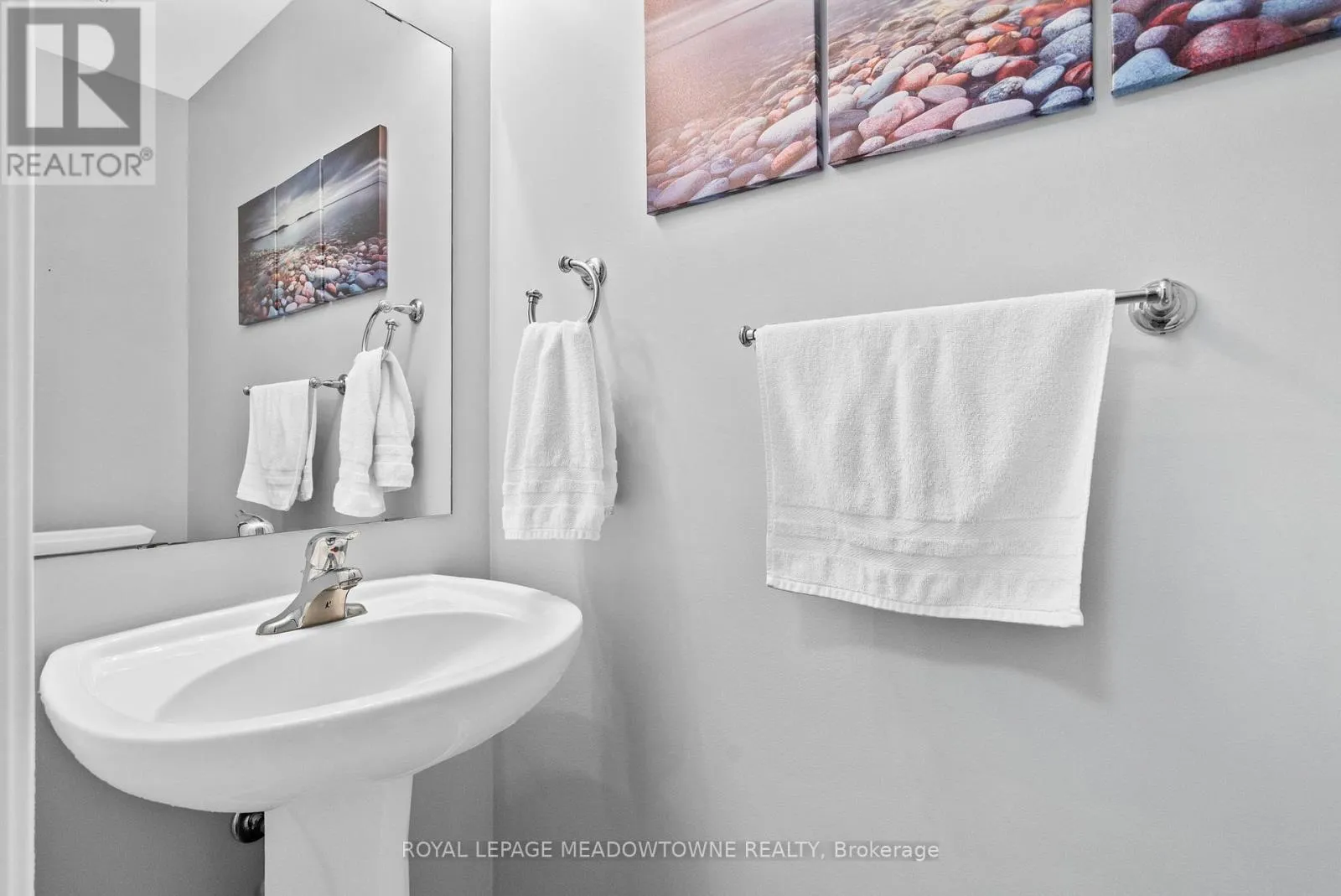 Thompson/Derry Carlton model townhome with 1,715 sq ft of living space. Backs onto mature trees and a neighbourhood park with no rear neighbours. Renovated "Adore Your Kitchen" with pantry, breakfast bar, backsplash and new appliances. Open concept main floor. 3 bedrooms, 3 bathrooms including 2 full upstairs. Convenient second floor laundry. Finished basement with rare, functional storage space. Quiet, low-traffic street. Walk to schools, parks, community centre, arts centre and GO. Parking for 3 cars. (id:27476)