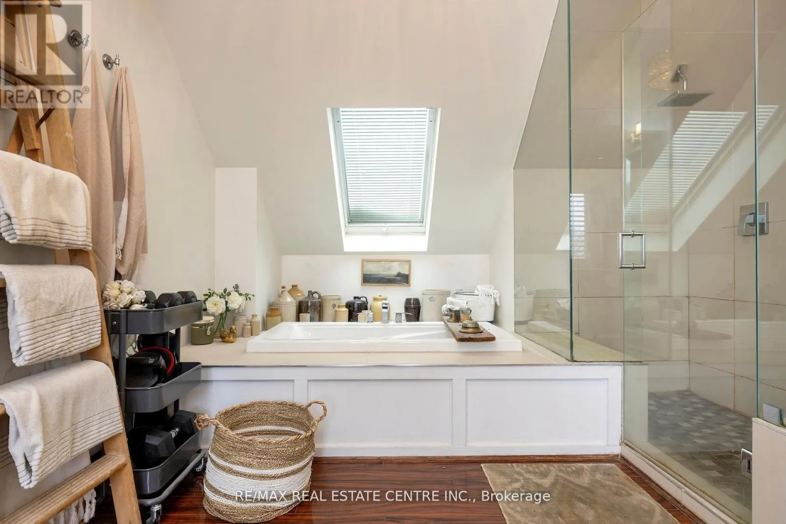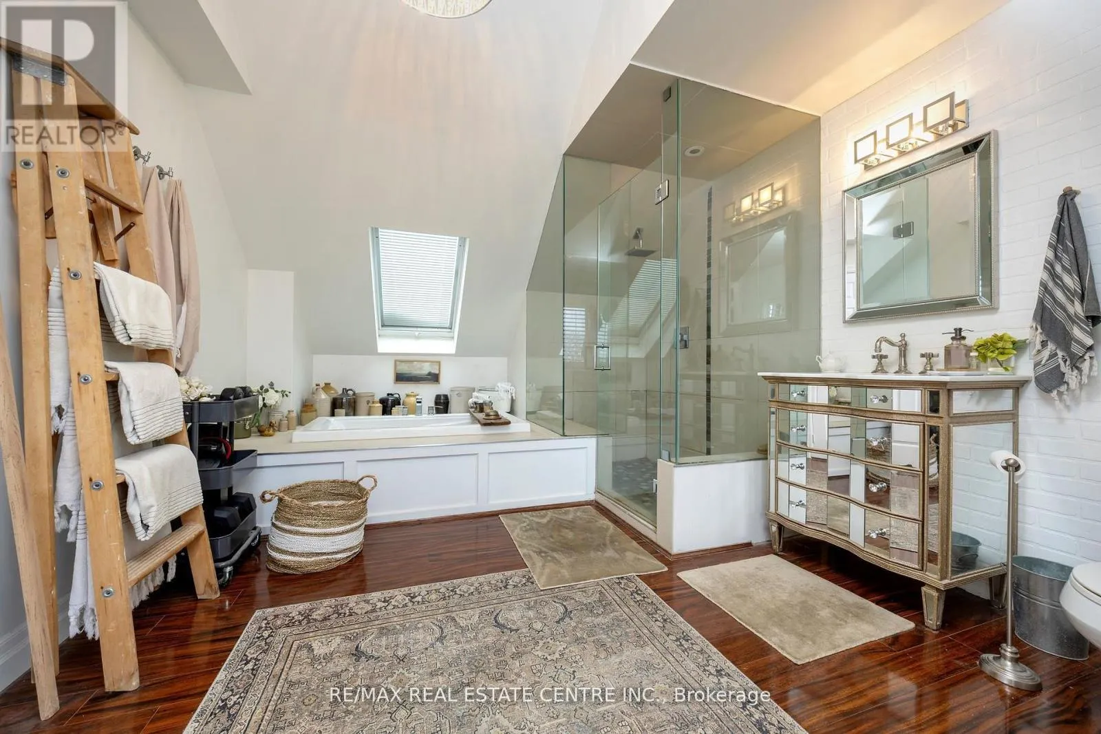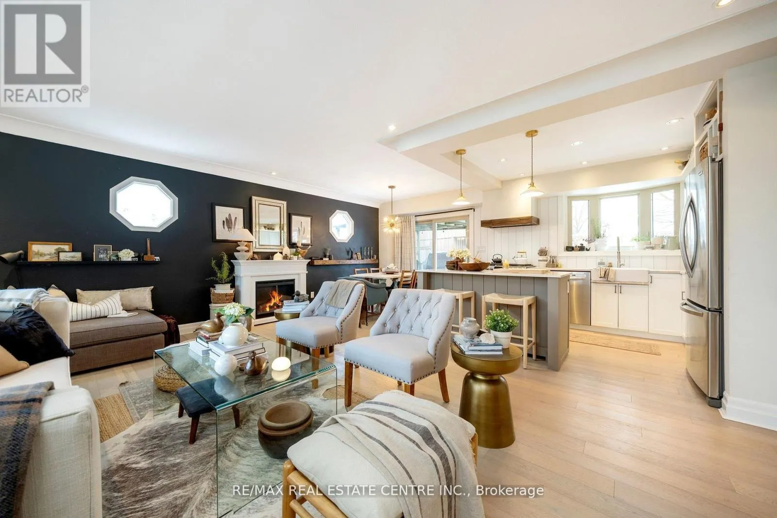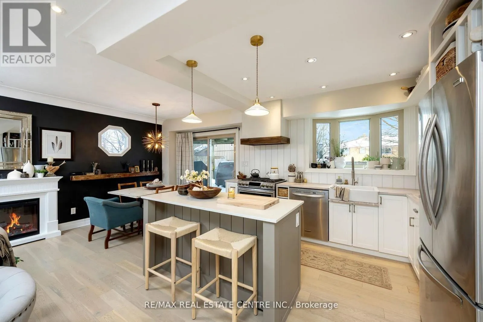 Cross Streets: James snow and 3rd side road. ** Directions: James Snow-3 side road-milton heights. Refined Living for the Modern Family... Welcome to a home where everyday life feels a little more elevated. Offering 2,638 sq ft of beautifully finished, carpet-free living space, this detached bungaloft residence blends timeless style with thoughtful function in the heart of Milton Heights. From the moment you arrive you are greeted by a charming covered front porch and tranquil pond, you'll feel the sense of space and privacy this property provides. Inside, heated tile floors, engineered hardwood, crown moulding, pot lights, open concept living and a statement fireplace create an atmosphere that is both sophisticated and welcoming.The open-concept main floor is designed for gathering. A stunning kitchen with quartz island, solid acacia butcher block counters, stainless steel appliances, and a gas stove overlooks the backyard deck; perfect for hosting summer dinners while the kids play outside. Upstairs, the primary suite offers a true retreat with a spa-inspired ensuite featuring a rain-head shower, deep soaker tub, built-ins, and a dedicated vanity space- your own private escape at the end of the day. The finished lower level with separate entrance provides flexibility for extended family, teens, a private office, or future in-law potential. And for families who need space- whether for vehicles, hobbies, or weekend projects, the heated double detached garage with 60 amp service and an expansive 10-car driveway is a rare luxury. Nestled in Milton Heights at the base of the Niagara Escarpment and nearby Kelso conservation this home offers a peaceful, family-friendly neighbourhood with scenic walking trails, nearby parks, and easy access to schools, shopping, and Highway 401. Just a short drive to downtown Milton where you can enjoy the Farmer's market, restaurants & shops- the perfect balance of tranquility and convenience. Elegant. Functional. Designed for real life.This is the kind of home families grow into, and never want to leave. (id:27476)