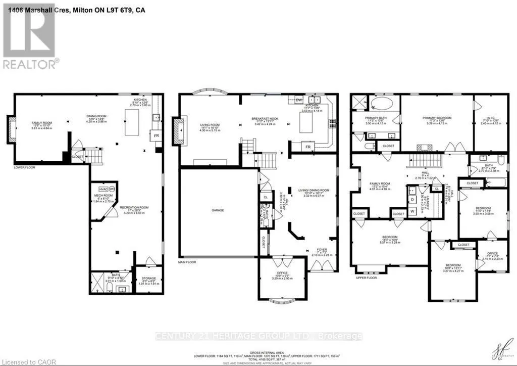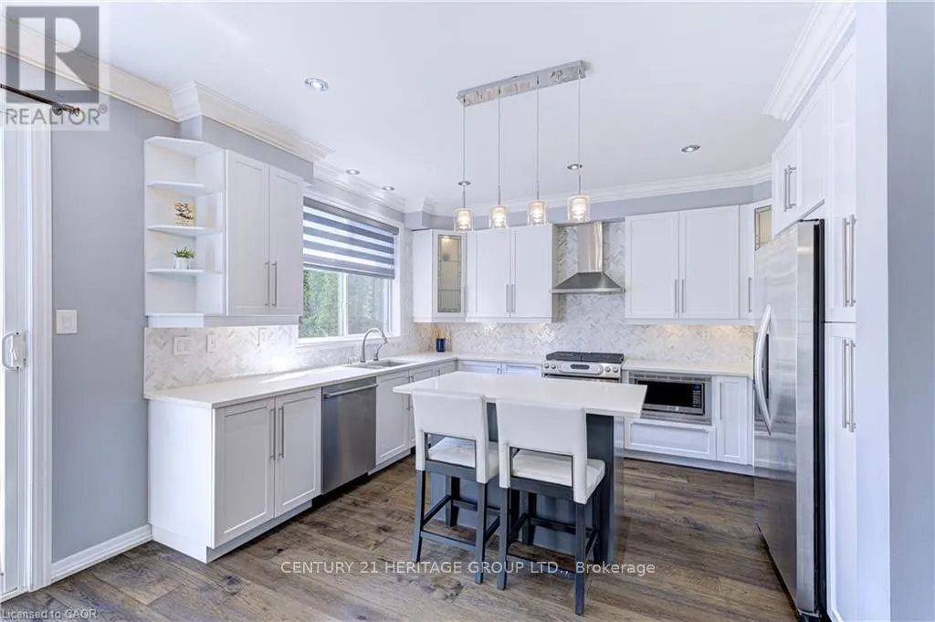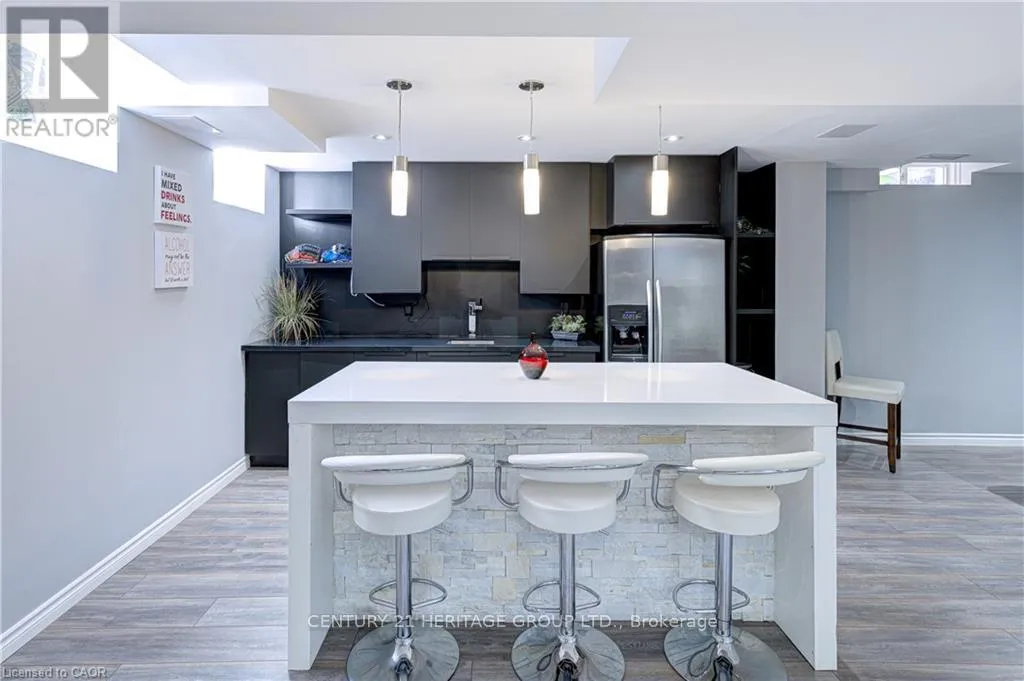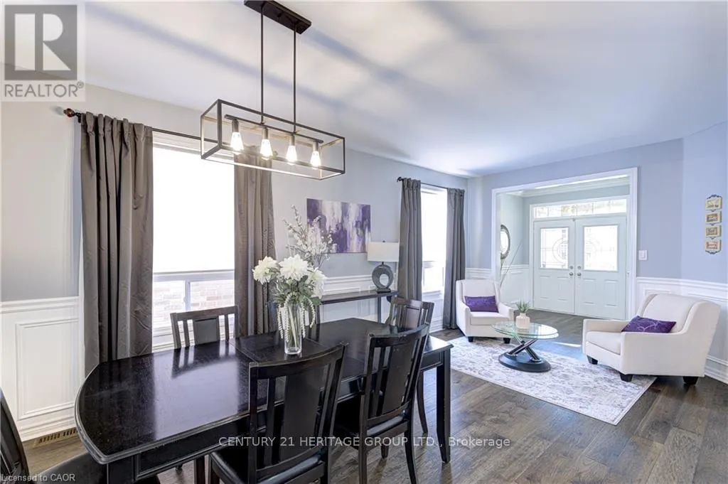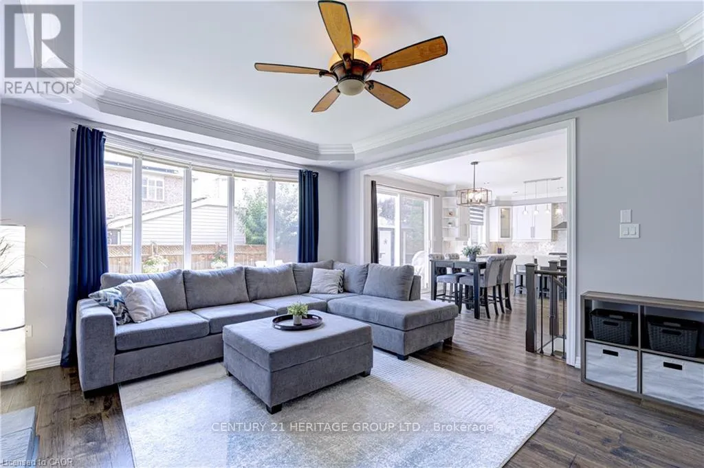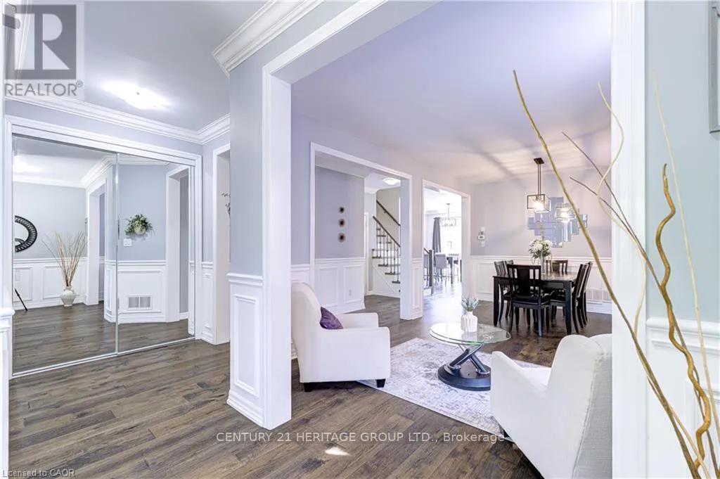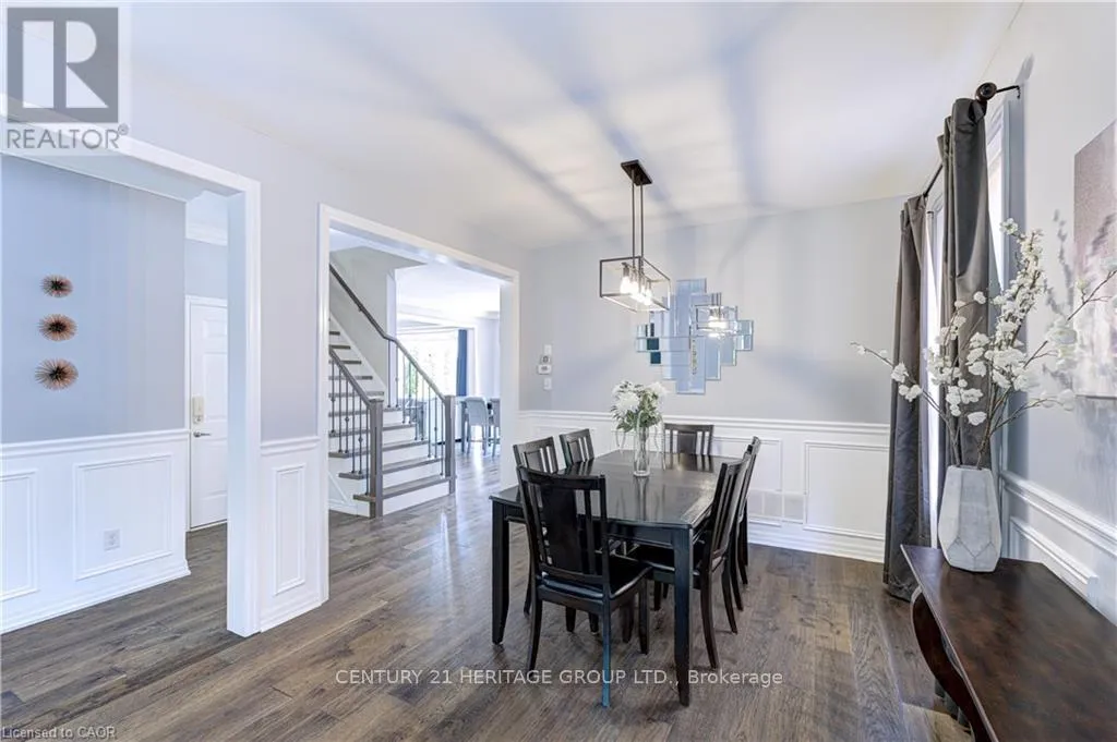 Fourth Line & Marshall Cres. Stunning, detached home in Milton's highly sought-after Beaty neighbourhood! Offering over 4,000 sq ft of beautifully finished living space, this 4-bedroom, 4-bathroom home is designed with modern living and entertaining in mind. The main floor features engineered hardwood throughout, timeless wainscoting trim, a large dedicated office, and a beautiful, open-concept kitchen/dinette with upgraded appliances, an island w/seating, and a walkout to a wood deck and fully landscaped backyard-complete with a cabana bar/shed and wiring ready for a hot tub! The family room is anchored by a cozy gas fireplace, perfect for relaxing evenings. Upstairs also features engineered hardwood throughout, generous bedroom sizes, a spacious primary retreat with a large walk-in closet and luxurious 5-piece ensuite, and a cozy sitting area by the landing. A versatile bonus room connects two of the bedrooms-ideal as a shared playroom, office/den, or walk-in closet. The convenience of a second-floor laundry room adds even more practicality. The fully finished basement offers laminate flooring, a kitchenette equipped with an island w/seating, dining area, family room w/electric fireplace, rec room, and a 3-piece bath-perfect for extended family, teens, or entertaining. Additional features include carpet free home throughout, furnace (2020), A/C (2022), and an attached 2-car garage with inside entry. Located just steps to parks, schools, transit, and all amenities, this home is perfect for families looking for space, function, and style in one of Milton's most family-friendly communities. (id:27476)