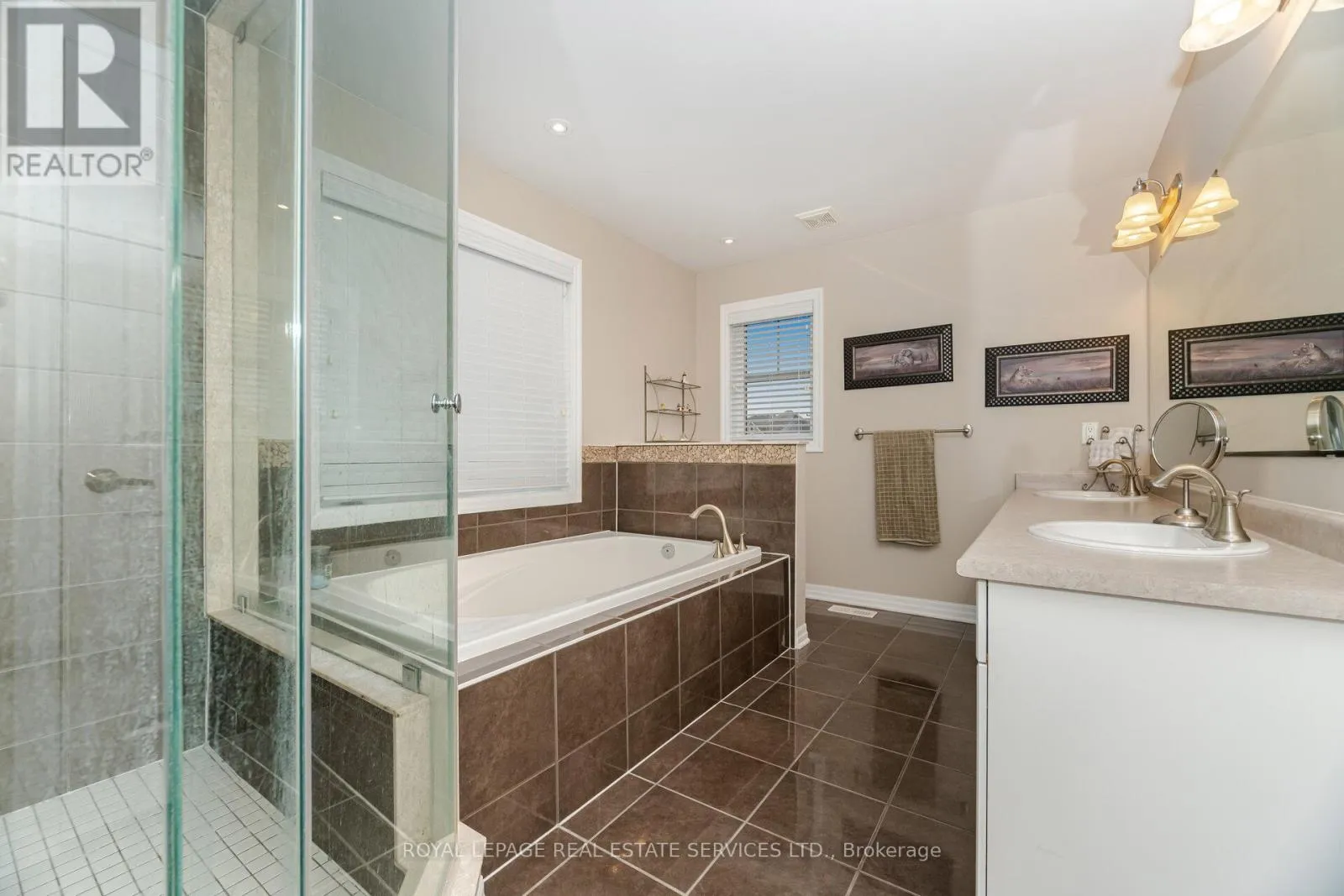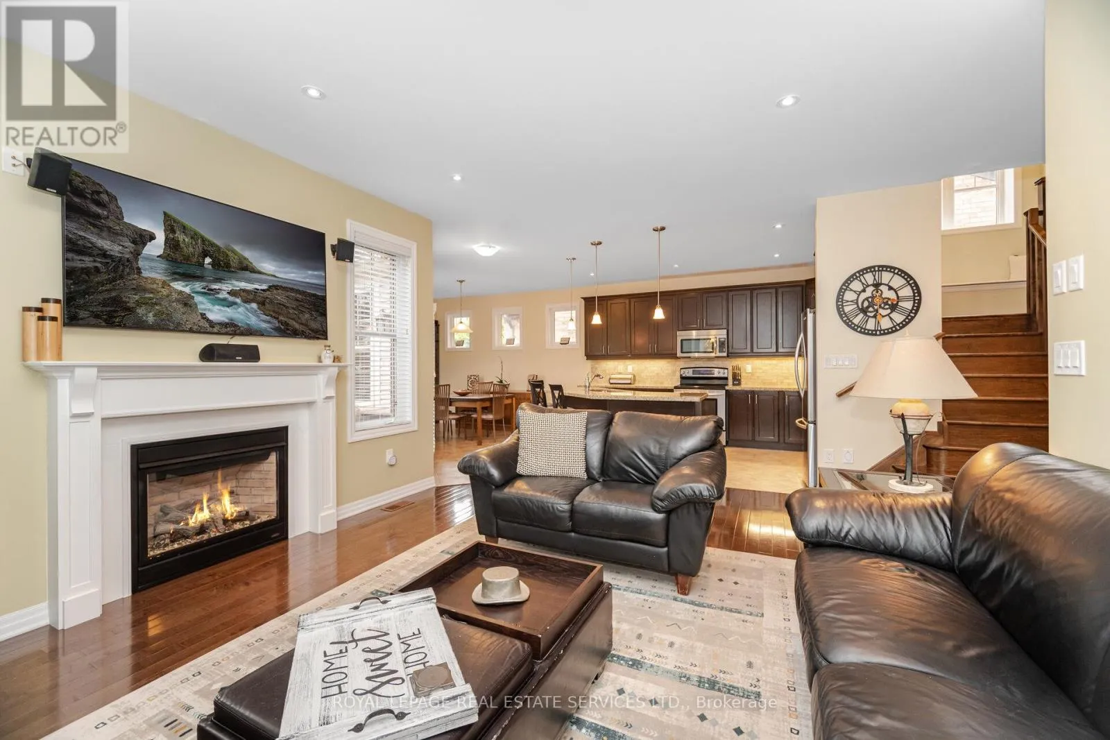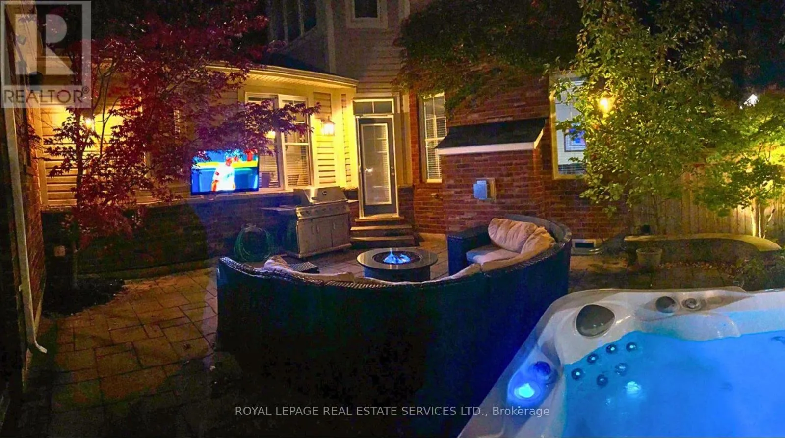 Savoline / Coombs Luxurious Corner-Lot Home fronting a protected Forest & Escarpment views! Welcome to this elegant 2,291 sq ft Mattamy Energy-Star detached home in Milton's prestigious Scott neighborhood. Freshly painted top-to-bottom (2026), this open-concept layout features premium espresso maple hardwoods, upgraded overhead rounded archways, and colonial window inserts for abundant natural light. The gourmet eat-in kitchen boasts an expansive island, espresso cabinetry, Giallo Ornamental granite, and high-end stainless appliances. A stylish barn door leads to the laundry with storage-lift Samsung appliances. Retreat to the primary suite featuring California Closets and a spa-like ensuite with an oversized glass shower. The private 20'x24' courtyard is a true sanctuary, framed by mature Silver Maples and Japanese Maples, featuring a 6-person Sunrise Hydro Massage Spa, 50,000 BTU gas firepit, 50" LG outdoor TV, and Yamaha speakers. The grounds offer incredible curb appeal with multi-zone timed landscape lighting, an interlocking path with stone benching, and a 3-zone digital sprinkler system. The ultimate heated double garage features a 50" Samsung Smart TV, workshop cabinetry, 240V service, and natural gas hookups. Additional highlights include a custom 8'x22' wired/vented shed, Nest thermostat, Trane AC, central vacuum, and a 4-camera Swann surveillance system. The unfinished basement offers oversized windows and a cold cellar. Keyless entry on all doors. Includes: all kitchen appliances, washer/dryer, courtyard & garage TVs, hot tub, fire pit, surveillance system, garage heater, and all wall mounts. Ideally located near trails and the Tremaine overpass, this home offers unparalleled sophistication and tranquility. (id:27476)