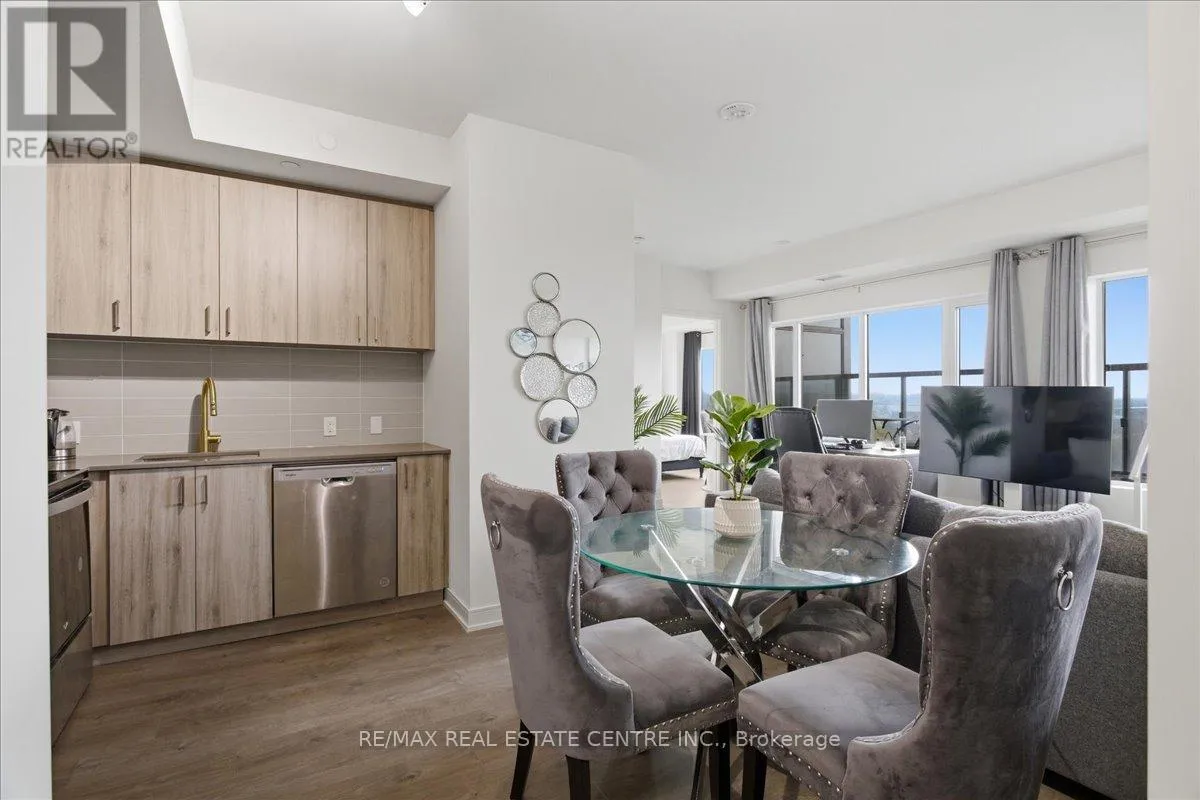 Derry & Regional Rd. 25 Is a stunning, well-kept, veyr bright, airy, 2 bedroom/2 Washroom mid-level Milton area condo that's perfectly situated on the South/East corner of HWY 25 and Derry in popular Coates neighbourhood of Milton close to plazas, Food Basics, restaurants, pub. transit, community parks, schools, trails, Milton Sports Centre, Milton District Hospital, Milton Mall and list goes on and on. The Connectt development by Lindvest has the distinction of being one of Milton's first and rare high-rise condominiums with great though and investment placed into lifestyle, conveniences and security. This particular unit comes with ground-breaking state-of-the-art amenities such as a full sized gym, yoga rooms, 24 hour concierge, party room, bike storage, pet spa, guest suites, party rooms, swimming pool, rooftop BBQ and cabannas, free wi-fi, business centre and so much more. The unit itself features decadent laminate flooring, sizeable kitchen w/backsplash, complimenting quarts countertops, stainless steel appliances, 9 ft ceilings throughout, 2 full bathrooms, stackable in-unit laundry, opem concept living w/ combined family and dining rooms, a large balcony, exclusive locker and 1 undergrlund parking spot. (id:27476)