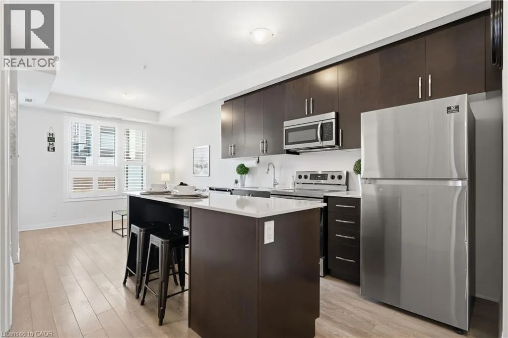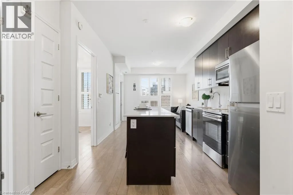 At the corner of Louis St. Laurent Avenue and Leger Way . Welcome to comfortable, modern living in Milton's popular Ford neighbourhood. This bright 1-bedroom, 1-bath condo features a smart open layout that works well for both day-to-day living and having people over. The kitchen is the heart of the space, with a large island, stainless steel appliances, granite counters, and plenty of storage. The finishes are clean and modern, and the unit gets great natural light throughout. Being on the ground floor really sets this one apart. You get a spacious garden terrace that extends your living space outside, with the option to add a privacy screen if you want a more secluded feel. There's also the added convenience of direct access from visitor parking, so no need to go through the main lobby. The unit comes with underground parking, a private locker, and there's plenty of visitor parking available. You're in a walkable area, just steps to groceries, banks, restaurants, and shops, with easy access to parks, trails, schools, and Milton District Hospital. A great option for first-time buyers, downsizers, or investors looking to get into a growing, family-friendly neighbourhood. A smart move in a growing neighbourhood, come and see the value for yourself! (id:27476)