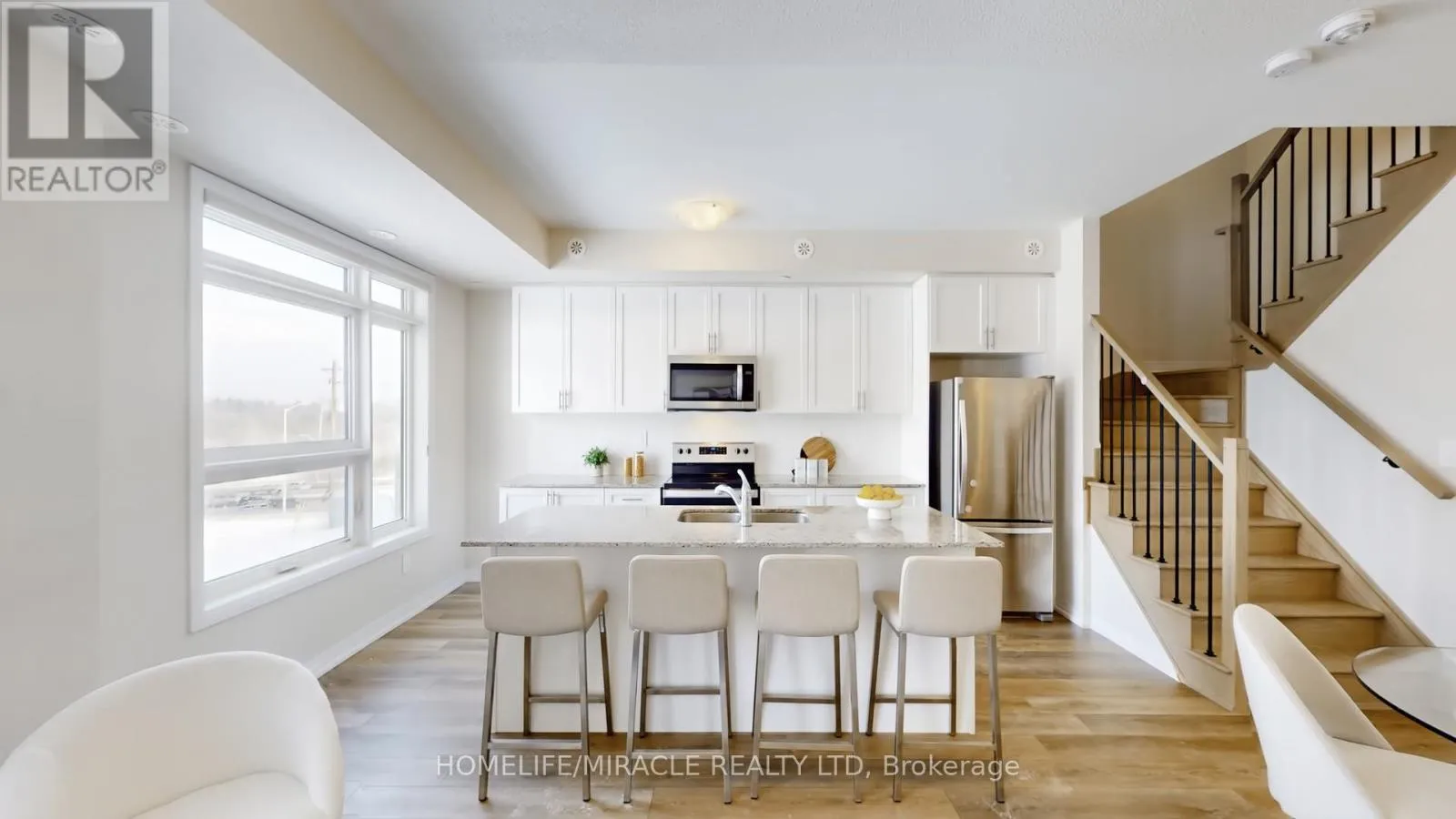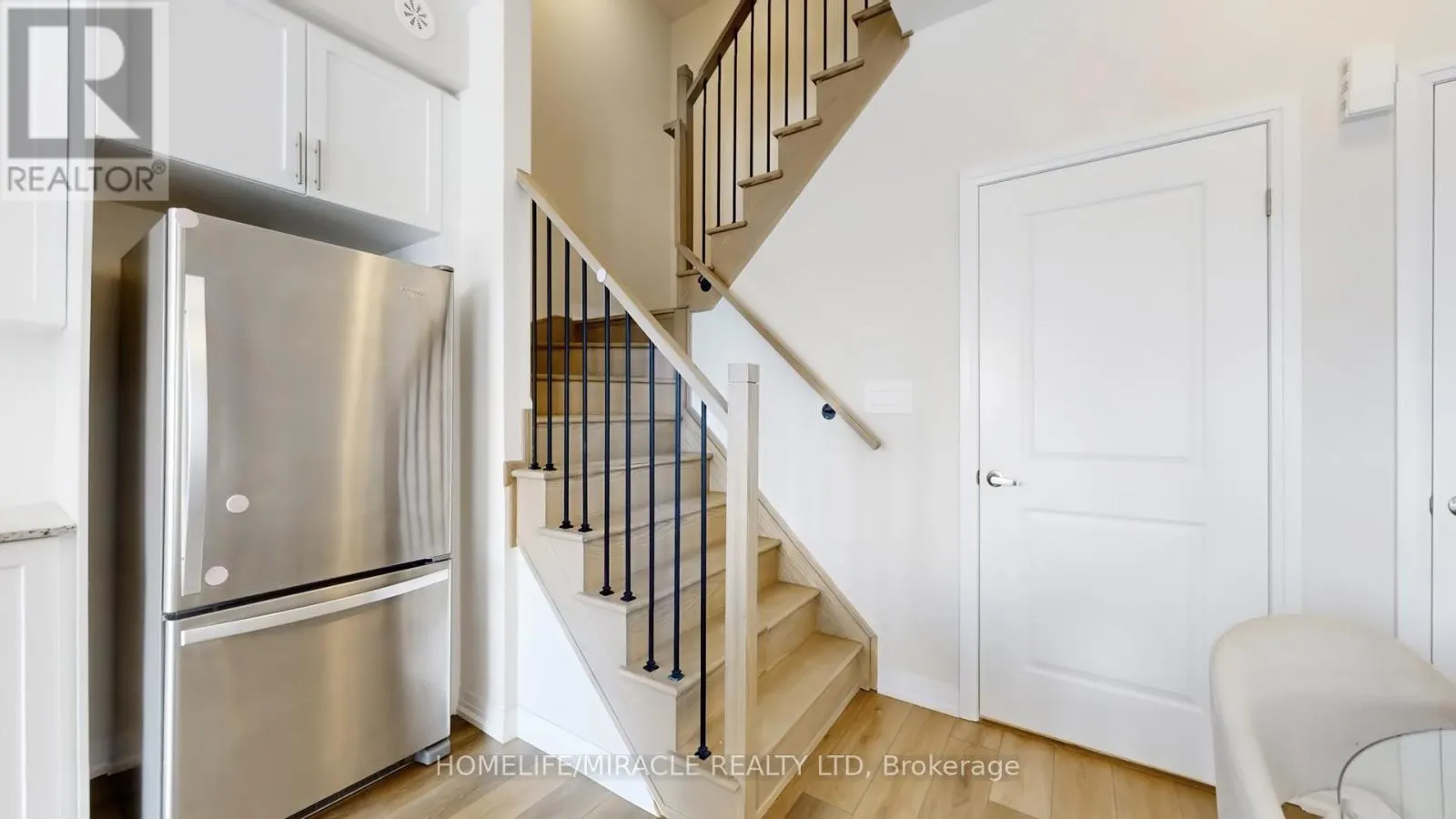 Highway 25 & Britannia Rd Welcome to this clean and cozy townhouse just about one year old and awaits a first time Home buyers or investors. Located in one of Milton's most sought-after communities, Conveniently located near to Hwy 25 and Britannia Rd. this modern home offers 2 spacious bedrooms, 2 full washrooms and 2 under ground next to each other Parking spaces. On the main floor, you'll find an open-concept living and dining area that leads to a private balcony, perfect for relaxing or entertaining. For added convenience, the stacked washer and dryer are also located on the main floor. The beautiful kitchen features a center island, quartz countertops, and stainless steel appliances, including a stovetop microwave, and built-in dishwasher. The second floor boasts a large primary bedroom with a 4-piece en-suite and a spacious closet. Also a generous size second bedroom with a closet and a large window along with a 4-piece main washroom, complete this level. The third floor features a utility room and a large rooftop terrace, ideal for soaking up the sun or hosting a BBQ gathering and so on... Make this stunning townhouse your new home today! INCLUDES TWO SIDE BY SIDE PARKINGS & A LOCKER. (id:27476)