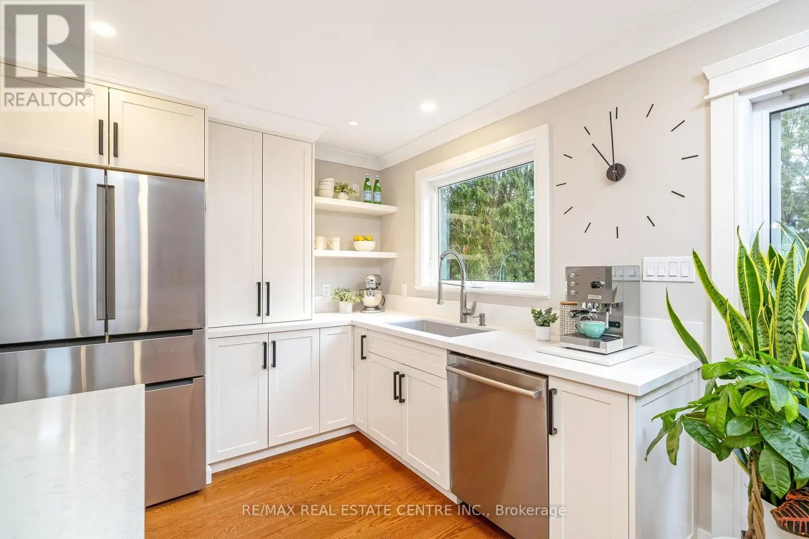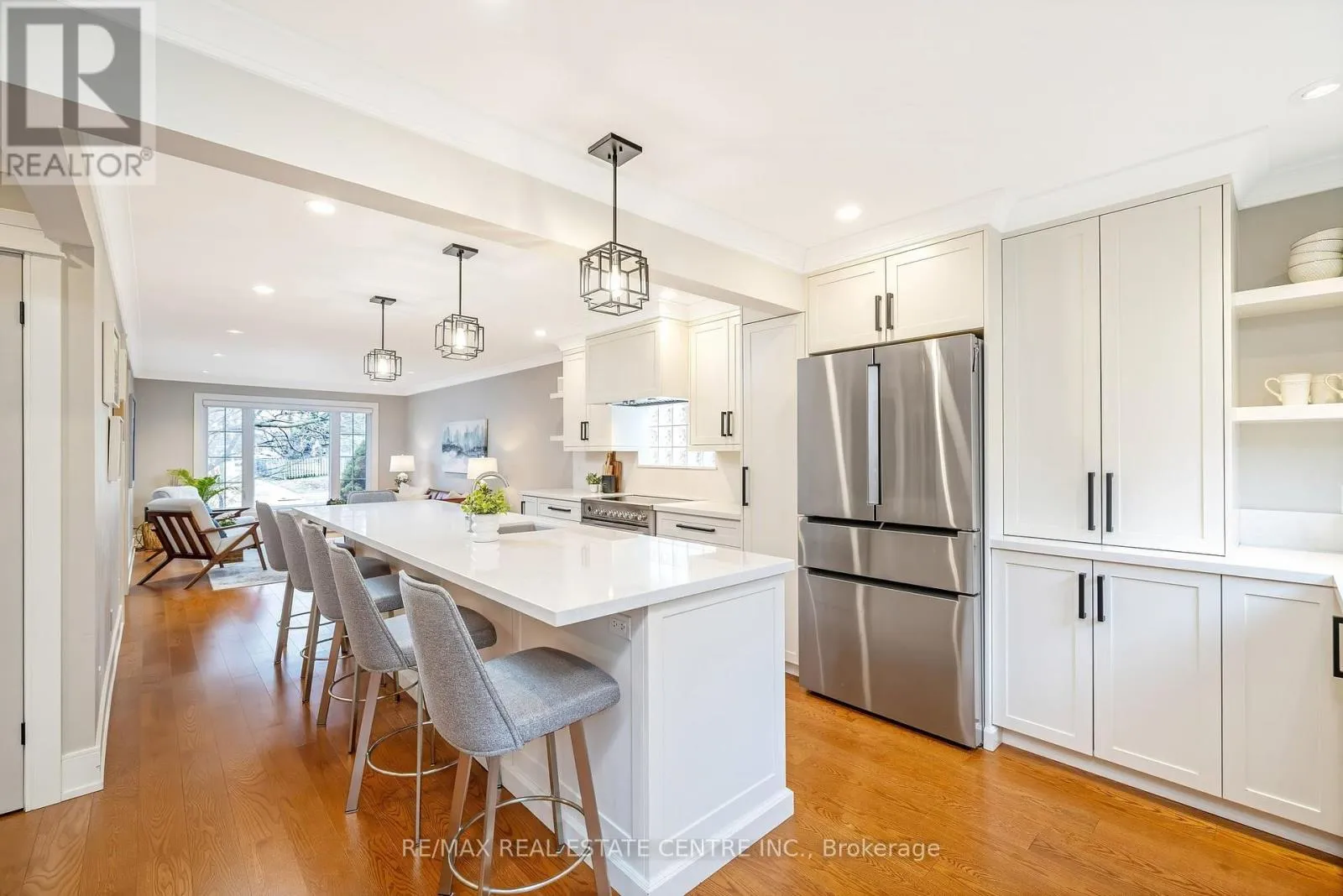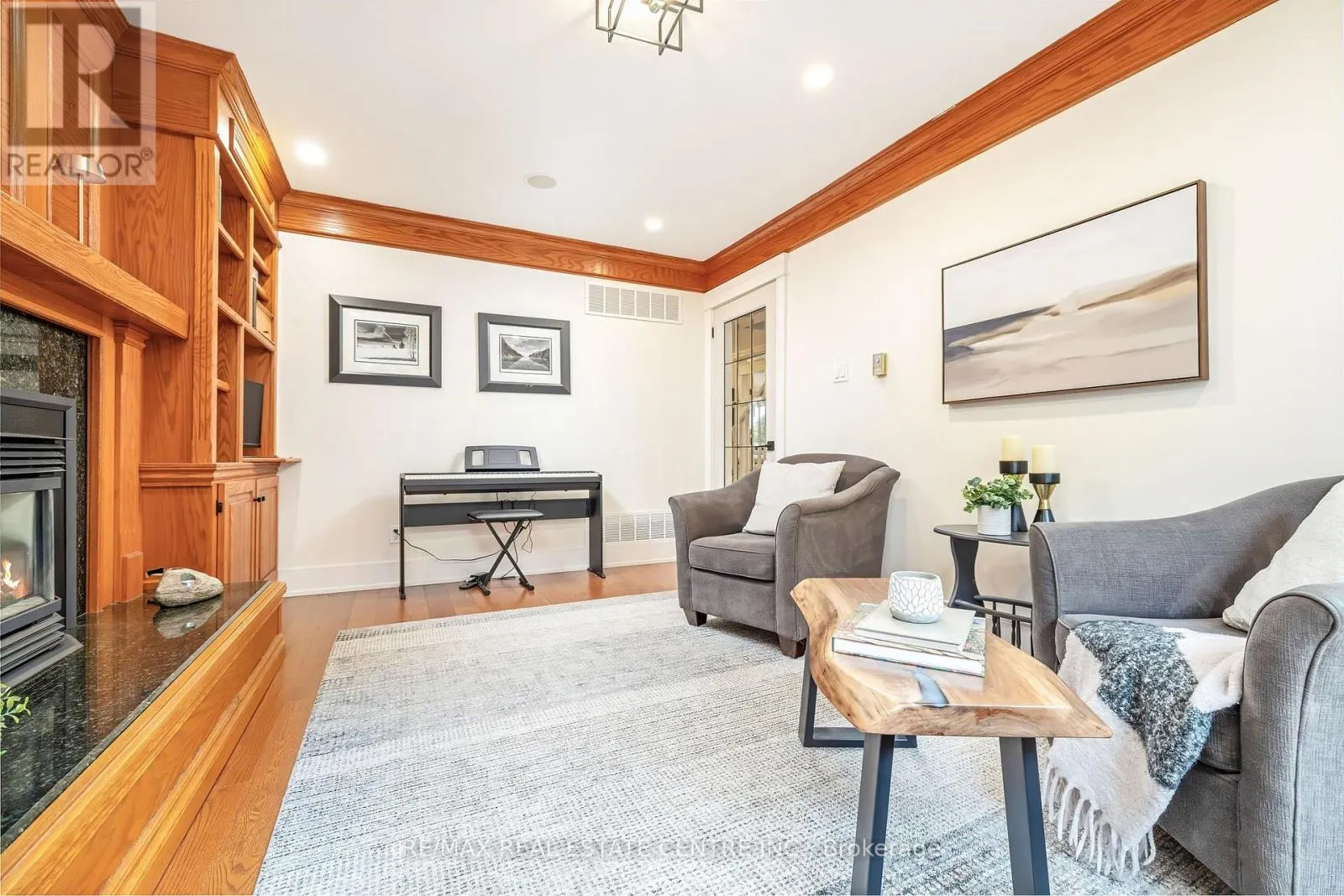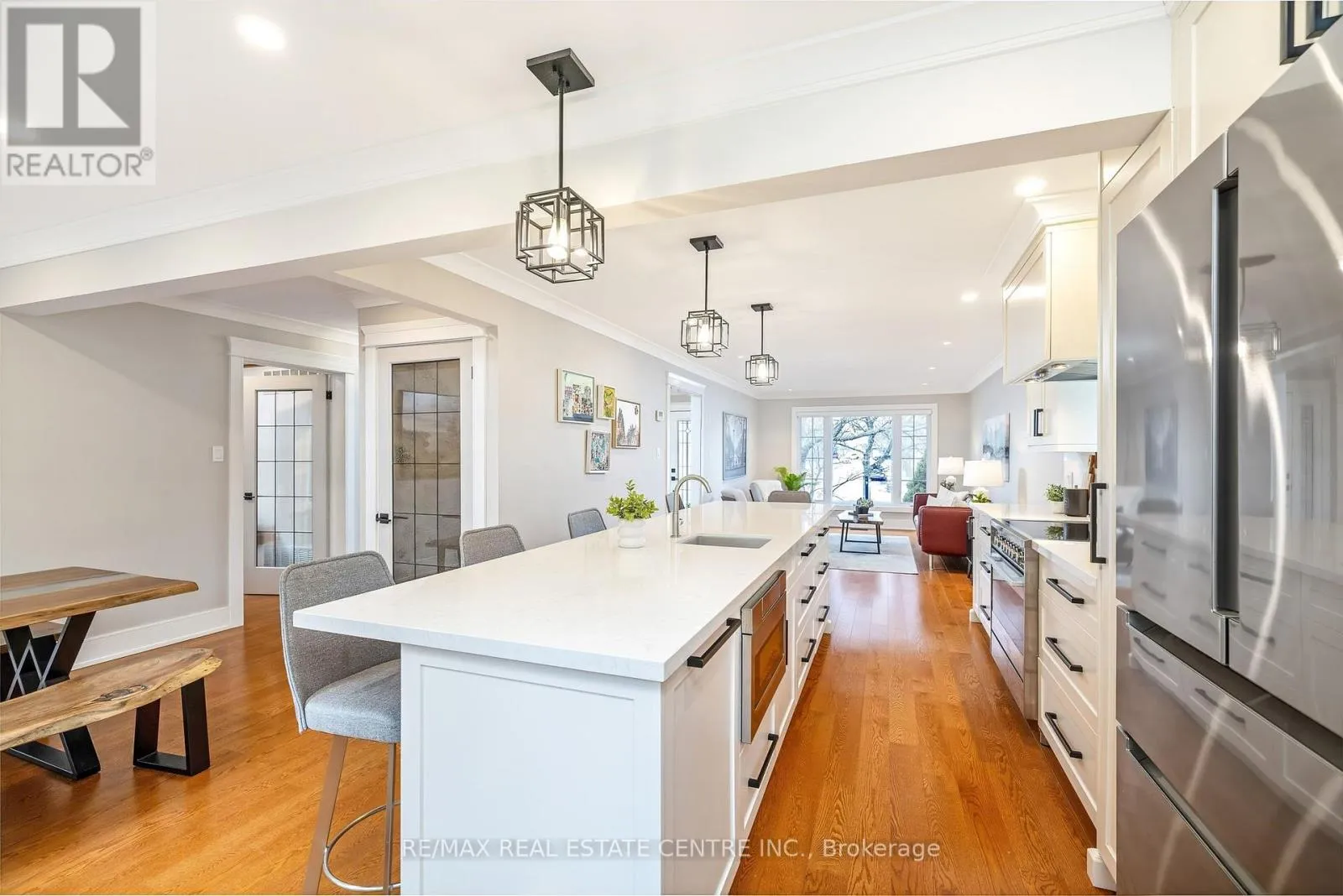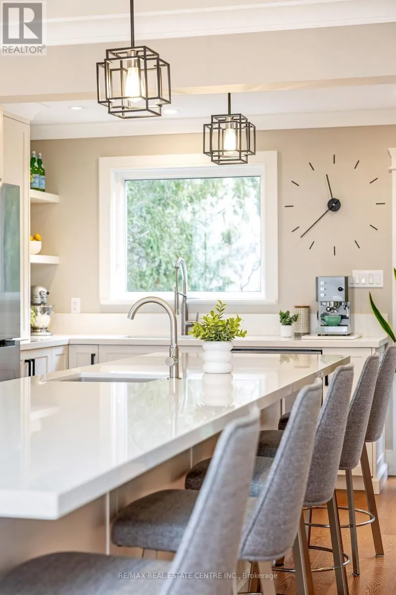 Laurier Avenue and Farmstead Drive TRUE PRIDE OF OWNERSHIP and steps to parks, schools and WALKING TRAILS! $250,000+ spent in recent well-designed RENOS. This executive 4-Bed 4-Bath home has loads of space for your family. It offers fabulous curb appeal w/ beautiful perennial gardens, poured concrete driveway, back patio, walkways. The main floor features a spacious foyer, laundry room w/ yard access, powder room, 2-CAR HEATED GARAGE (the MAN CAVE/STUDIO), open-concept living room w/ hardwood floors. The GOURMET WHITE EAT-IN KITCHEN and dining rm are thoughtfully designed w/ a MASSIVE 12' ISLAND, ample cabinetry, quartz countertops and matching backsplash, under-cabinet lighting, potlights, crown moulding, pantry, high-end SS appliances, including a microwave drawer. A double-wide patio door offers views of the lush landscaped yard ... a private secret garden. The family room features a gas fireplace, hardwood floors and BI cabinetry and speakers. The upper level has 4 spacious bedrms w/ stylish barn-door closet doors, all w/ hardwood, a 4-piece family bath w/ tall vanity, heated floors and extended glass surround tub. The primary bedroom has separate his/her closets w/ motion-activated lights, potlights, a 3-pc ensuite w/ heated floors, crown moulding and WI glass shower. The finished bsmt has a large rec room w/ BI speakers, gas fireplace, a "CHEERS" style wet-bar w/ bar hatch, beverage fridge & wine cooler, workshop, cold cellar and loads of storage. The private rear yard offers lighting, 220VAC and concrete pad for a future hot tub, a natural gas BBQ line and low maintenance perennial gardens. Addit'l features: 200 amp panel in garage (EV charger ready or workshop needs) along w/ professional lighting to cast minimal shadows, HWT and water softener (owned). Located close to all amenities: steps to schools, parks, downtown, public transit and a short drive to GO Station, groceries, Timmys, restaurants, shopping, rec centres and easy hwy access. Move in and enjoy ... this wonderful home has it AL (id:27476)