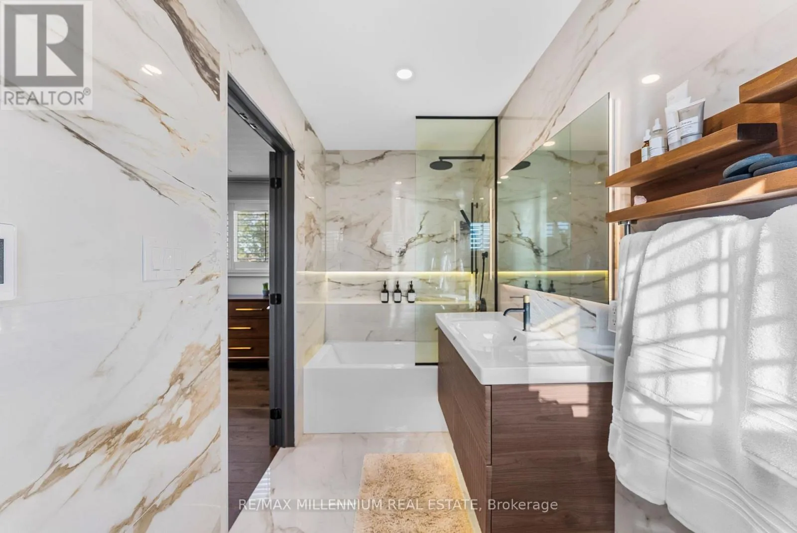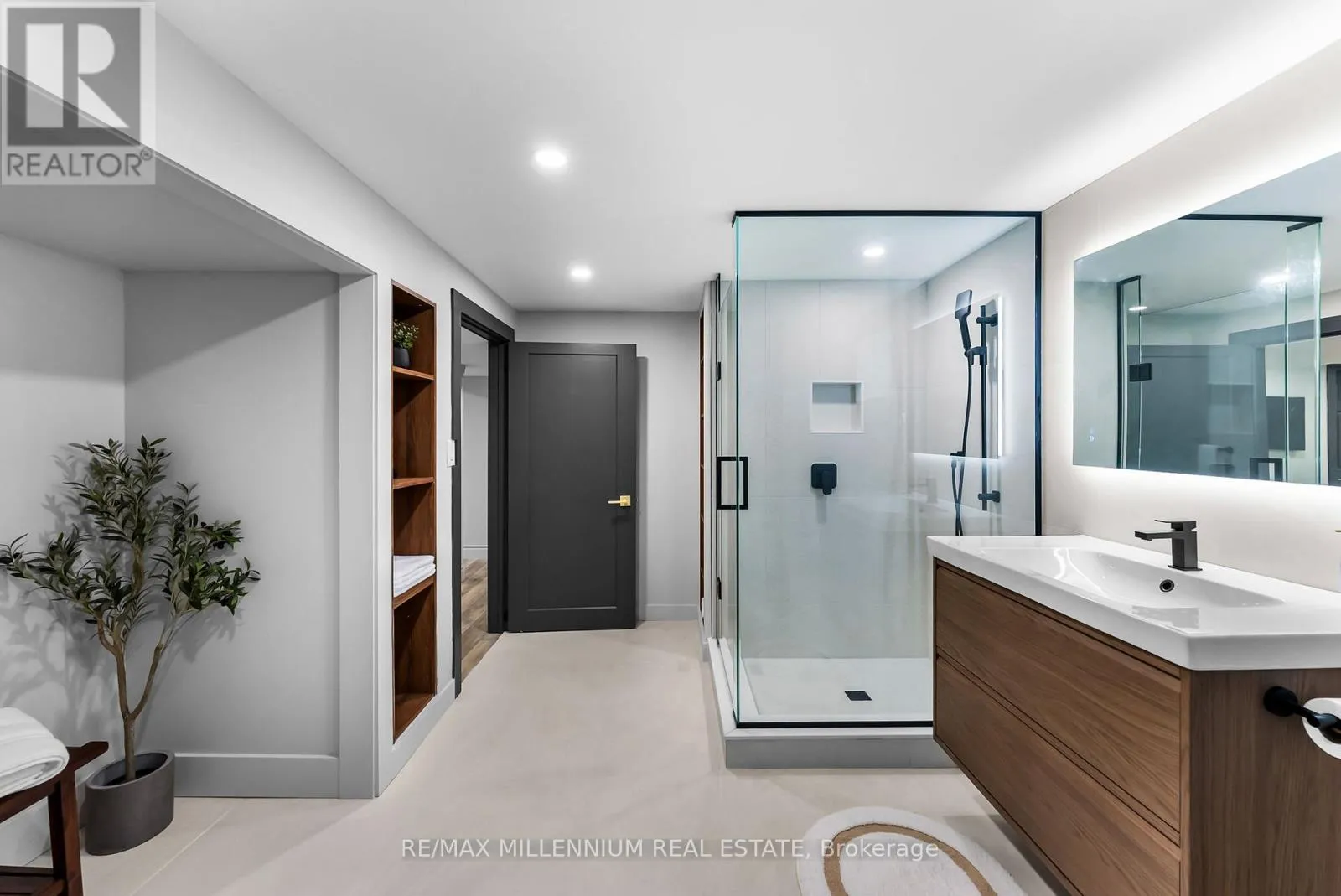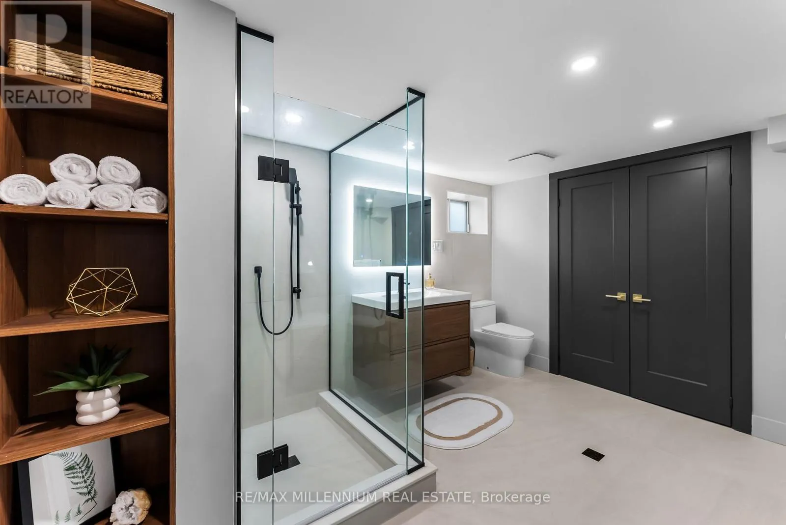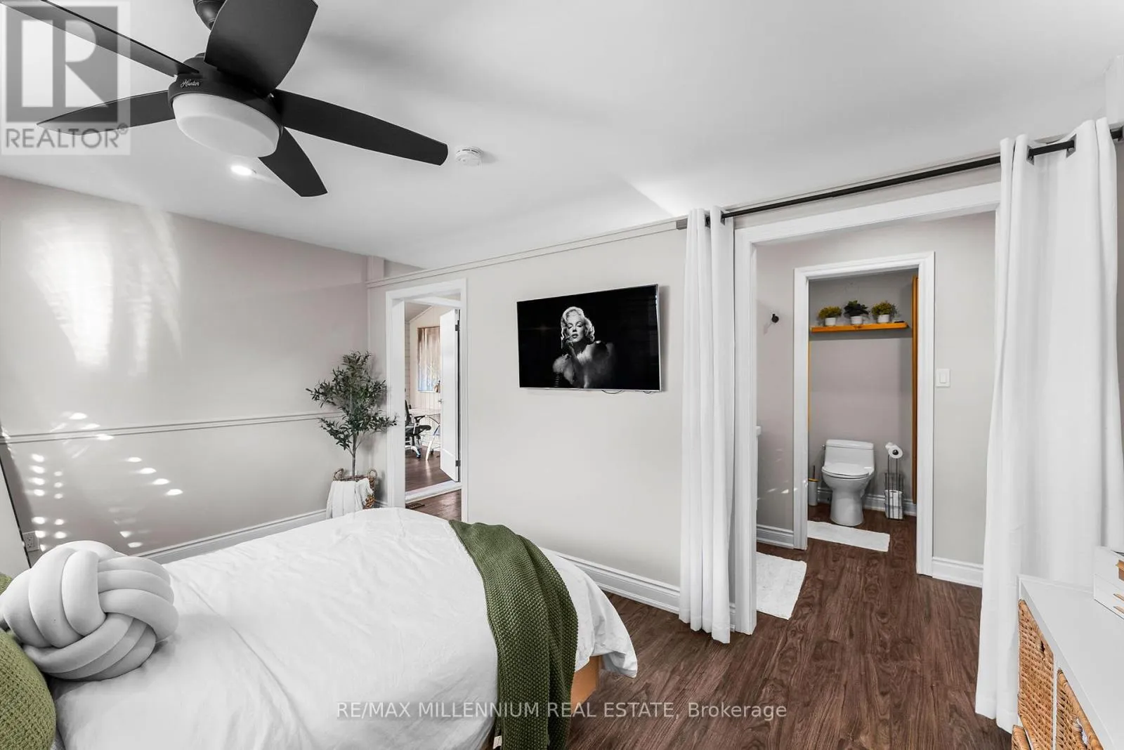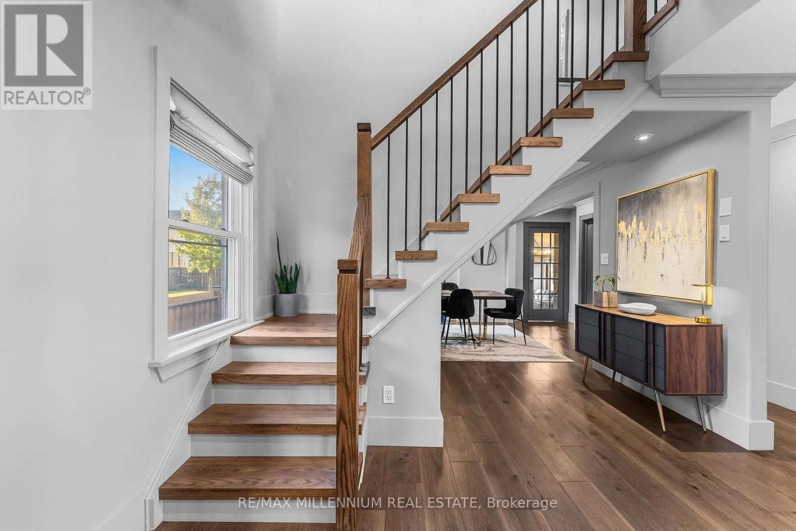 Ontario St N and Main St E Team Tiger proudly presents 393 George Street, Milton a stunning designer-inspired residence that blends luxury craftsmanship, modern comfort, and timeless sophistication in one of Milton's most established neighbourhoods. Every detail has been meticulously curated to create a home that radiates style, function, and warmth.Step inside to discover luxury large-plank Hickory engineered hardwood flooring (2023) that flows seamlessly throughout the main and upper levels, complemented by a custom hardwood-capped staircase with wrought iron railings (2025). The living area is anchored by a 56" Continental Linear Gas Fireplace framed with Italian 24"x48" Rebel porcelain tile, surrounded by custom built-in cabinetry with ambient lighting (2024) the perfect setting for elegant entertaining or quiet evenings at home.The primary ensuite redefines spa-like indulgence with heated Italian porcelain floors, a floating vanity, backlit mirror, Grohe wall-mounted toilet, custom glass shower, and Vogt Drava Collection fixtures every element designed for refined relaxation. Additional bathrooms mirror this design quality with premium porcelain tile, floating vanities, textured accent walls, and modern backlit mirrors (2025).Enjoy effortless comfort with custom window treatments, motorized sunroom shades, upgraded 200-amp electrical (2024), Beam SC375 central vacuum (2024), Fusion 2 water softener (owned, 2024), and gas BBQ connection. The roof (2020) and upgraded front porch (2022) add further peace of mind and curb appeal.The lower level offers a beautifully finished bathroom with custom glass shower, plus rough-ins for a laundry area and wet bar or kitchenette, offering endless potential for future expansion or in-law accommodations.Located steps from Milton's charming downtown core, parks, schools, and amenities, this exceptional home combines high-end finishes with a warm, inviting atmosphere the hallmark of thoughtful design. (id:27476)
