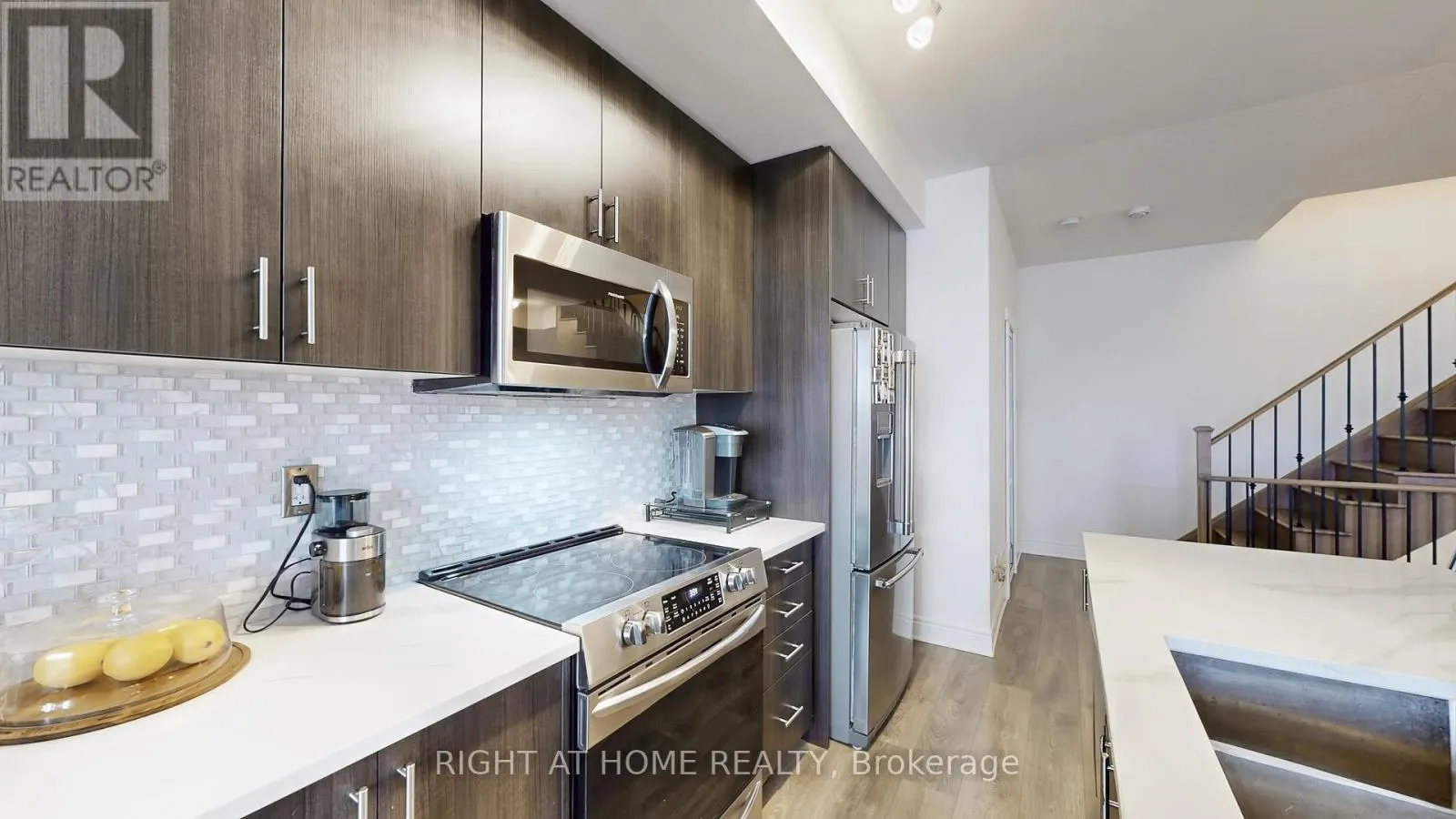 Louis St. Laurent/Highway 25 Step into this beautifully designed home featuring impressive 9-foot ceilings and a bright, open-concept layout that seamlessly connects the living room and kitchen. Built by award-winning Great Gulf Homes, this property showcases a striking modern exterior and quality craftsmanship throughout.The updated kitchen is a true centerpiece, boasting stunning granite countertops, an oversized island with a built-in stainless steel sink, and sleek stainless steel appliances-perfect for both everyday living and entertaining. A thoughtfully designed hidden powder room adds both style and convenience.Enjoy walkout access to your own private patio, creating an ideal indoor-outdoor lifestyle. Engineered hardwood flooring flows throughout the home, adding warmth and elegance. The spacious primary bedroom offers a relaxing retreat with a private ensuite and direct patio access.Located in Milton's highly desirable Ford District, you're just minutes from shopping, schools, parks, major highways, and Highway 407.Perfect for downsizers and first-time home buyers, this home truly has it all. (id:27476)