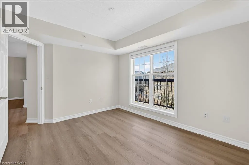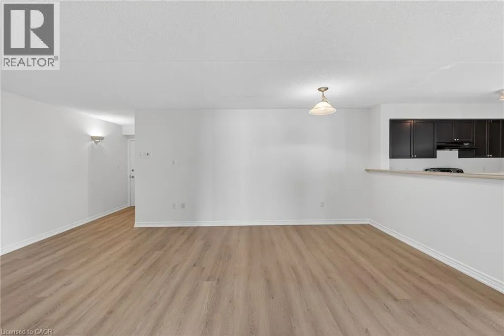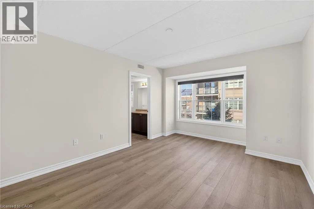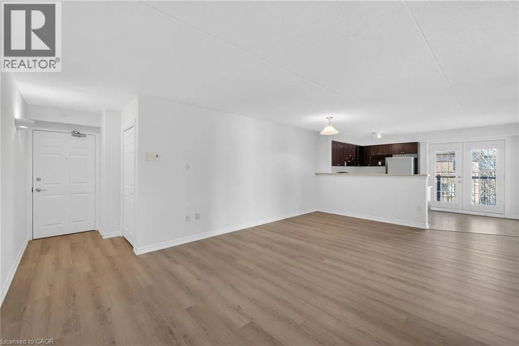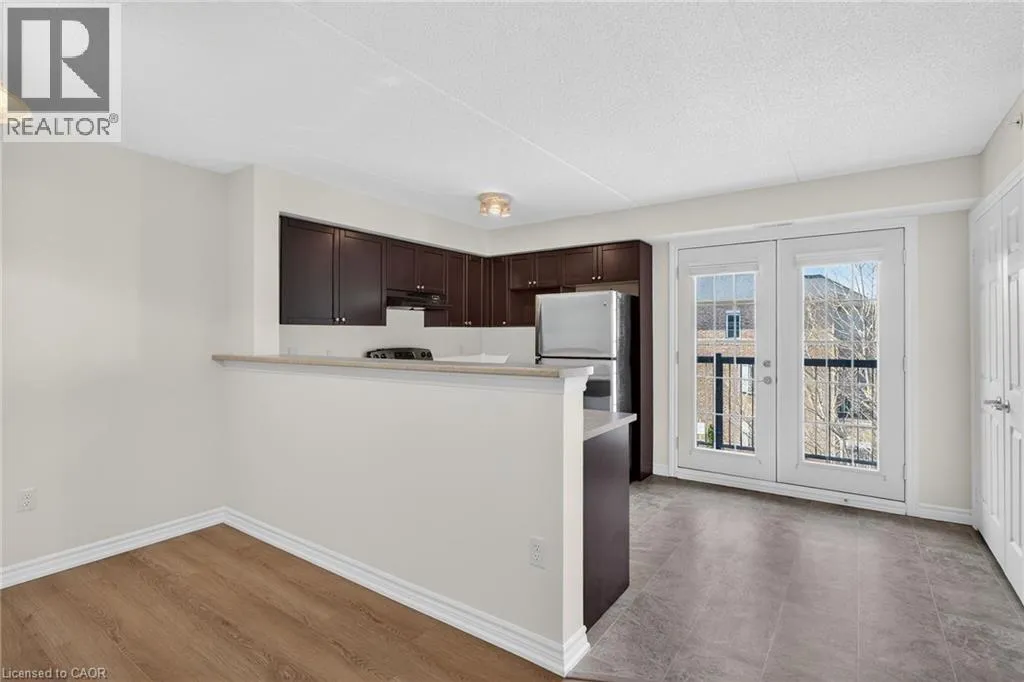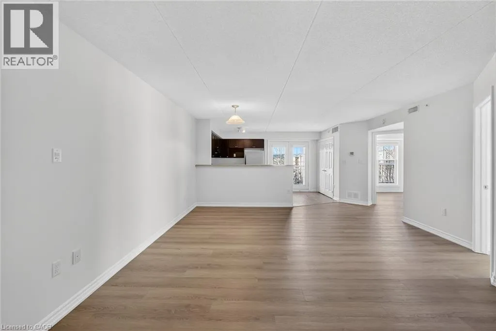 401 to James Snow Parkway to Main Street East. Beautiful and spacious 1,013 sq ft end-unit âWindsorâ model offering 2 bedrooms, 2 bathrooms, and plenty of thoughtfully designed living space. Complete with 1 owned underground parking spot, 1 locker, additional tenant parking, and ample visitor parking. This bright unit features a large open-concept living and dining area, ideal for both everyday living and entertaining. The eat-in kitchen is equipped with stainless steel appliances and offers a walkout to a private west-facing balconyâperfect for enjoying evening sunsets. The primary bedroom includes a private ensuite bathroom, while the second bedroom is generously sized and conveniently located near the main bath, making the layout ideal for guests, roommates, or a home office. Professionally painted (March 2026) with new luxury vinyl flooring (March 2026) and no carpet throughout, this unit is truly move-in ready. Additional highlights include in-suite laundry, Hunter Douglas window coverings, and an abundance of natural light throughout. Residents enjoy access to a well-maintained complex featuring a gym and clubhouse, providing added space for recreation and gatherings. Perfect for end users or investors alike. Unbeatable location - 2.2 km to Milton GO, 450 m to James Snow Parkway, 1.1 km to Hwy 401, 1.1 km to FirstOntario Arts Centre, Milton Public Library, and Dempsey Neighbourhood Park, 3.2 km to Milton Mall, 3.3 km to downtown Milton, 6.3 km to Milton District Hospital, and just a 9-minute drive to Toronto Premium Outlets. Surrounded by grocery stores, shops, and everyday conveniences. (id:27476)