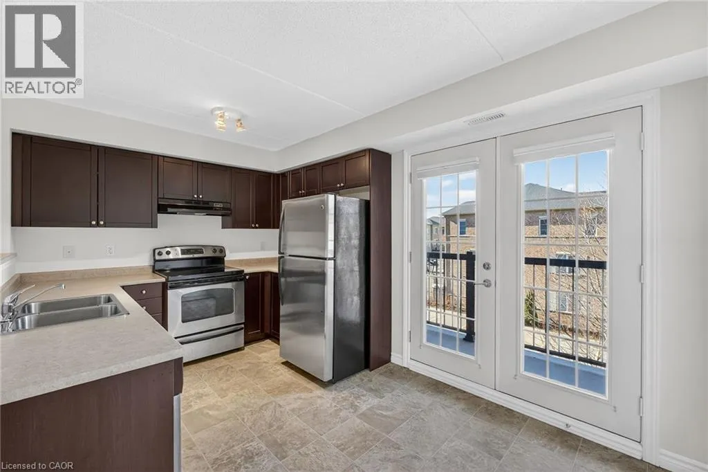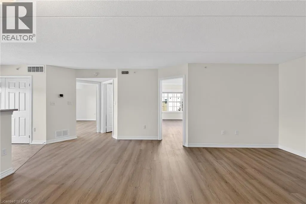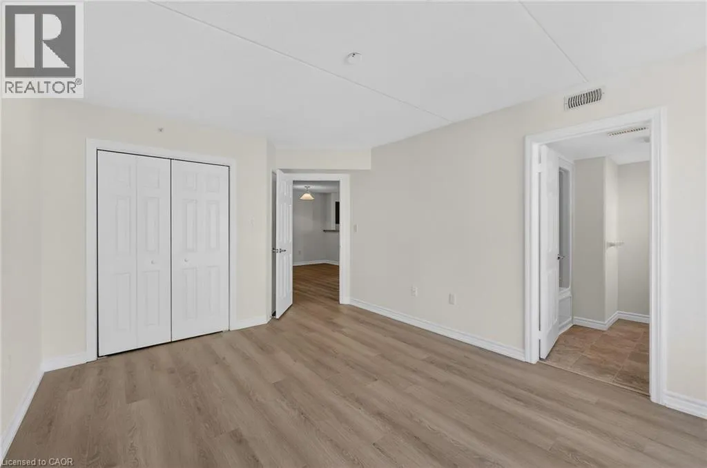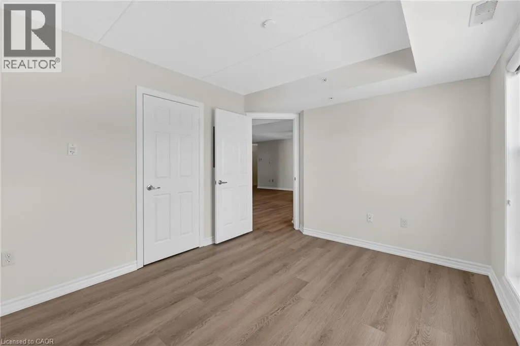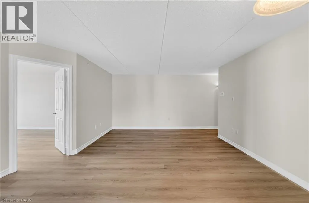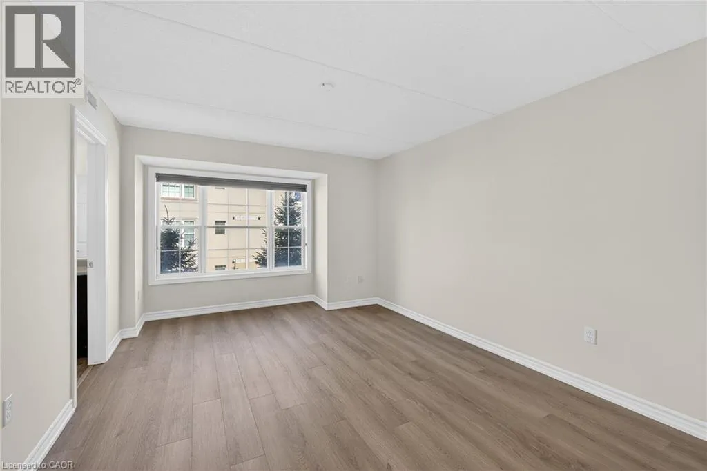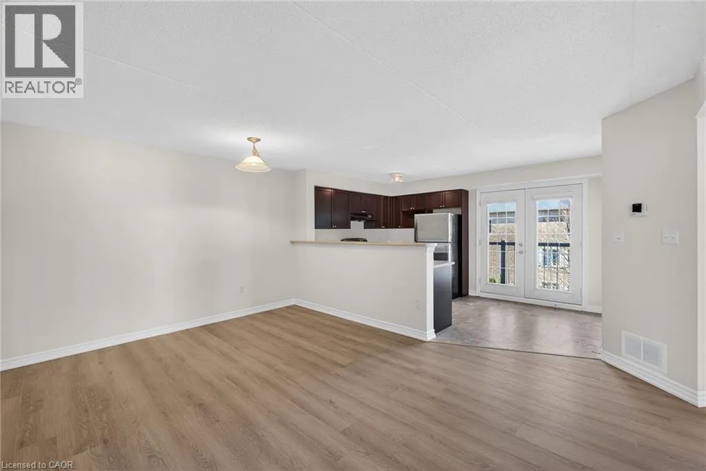401 to James Snow Parkway to Main Street East. Beautiful and spacious 1,013 sq ft end-unit âWindsorâ model offering 2 bedrooms, 2 bathrooms, and plenty of thoughtfully designed living space. Complete with 1 owned underground parking spot, 1 locker, additional tenant parking, and ample visitor parking. This bright unit features a large open-concept living and dining area, ideal for both everyday living and entertaining. The eat-in kitchen is equipped with stainless steel appliances and offers a walkout to a private west-facing balconyâperfect for enjoying evening sunsets. The primary bedroom includes a private ensuite bathroom, while the second bedroom is generously sized and conveniently located near the main bath, making the layout ideal for guests, roommates, or a home office. Professionally painted (March 2026) with new luxury vinyl flooring (March 2026) and no carpet throughout, this unit is truly move-in ready. Additional highlights include in-suite laundry, Hunter Douglas window coverings, and an abundance of natural light throughout. Residents enjoy access to a well-maintained complex featuring a gym and clubhouse, providing added space for recreation and gatherings. Perfect for end users or investors alike. Unbeatable location - 2.2 km to Milton GO, 450 m to James Snow Parkway, 1.1 km to Hwy 401, 1.1 km to FirstOntario Arts Centre, Milton Public Library, and Dempsey Neighbourhood Park, 3.2 km to Milton Mall, 3.3 km to downtown Milton, 6.3 km to Milton District Hospital, and just a 9-minute drive to Toronto Premium Outlets. Surrounded by grocery stores, shops, and everyday conveniences. (id:27476)