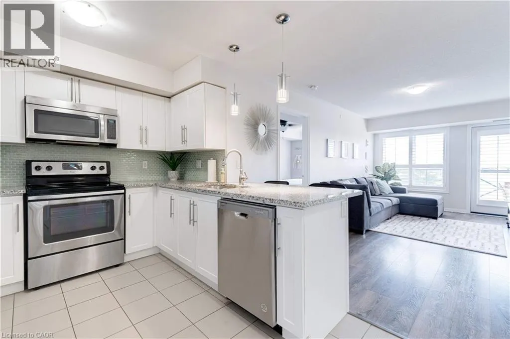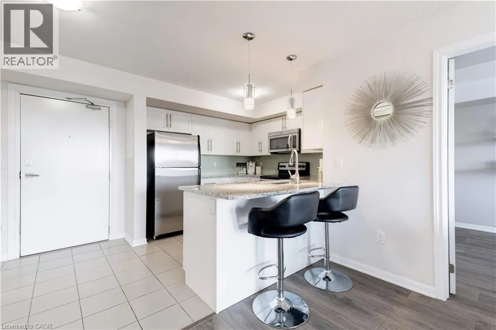 Diefenbaker Street - Nadalin Heights Welcome to Village Suites, a sought-after low-rise condo in one of Milton's most desirable neighbourhoods! This beautifully maintained top-floor 2 bedroom, 2 bathroom suite offers the perfect blend of comfort, style, and convenience. Enjoy a bright and airy open concept layout with southern exposure, filling the space with natural light throughout the day. The upgraded white kitchen features granite countertops, a glass backsplash, stainless steel appliances, and a functional breakfast bar perfect for casual dining or entertaining.The unit boasts modern laminate flooring throughout with no carpet, creating a clean and cohesive look. The spacious primary bedroom includes a private ensuite with a large walk-in shower, while the second bedroom is ideal for guests, a home office, or growing families. Step outside to your private south facing balcony, perfect for enjoying morning coffee or admiring the sunset. Additional highlights include underground parking and a storage locker for added convenience. Location, Location, Location! Ideally situated close to Parks, schools, Shopping, restaurants, and everyday amenities! Easy access to highways and transit for commuters! This is an exceptional opportunity to own a stylish, move-in-ready condo in a fantastic community perfect for first-time buyers, down sizers, or investors alike! Flexible possession available! (id:27476)