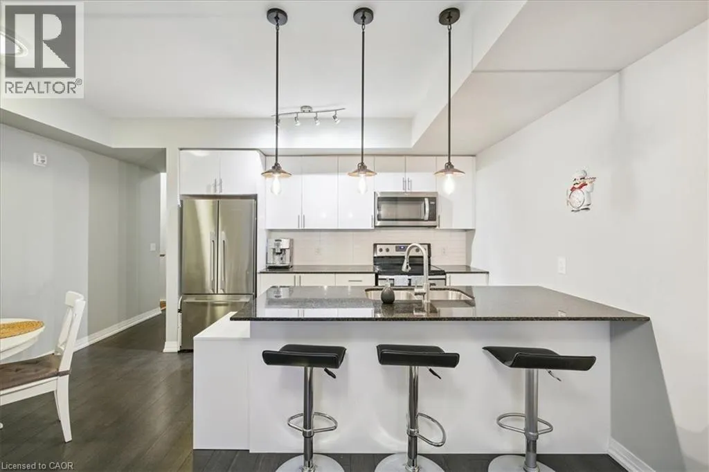 Main St & James Snow Pkwy Welcome To This Bright & Beautiful 2 Bedroom, 2.5 Bathroom Stacked Townhome In One Of Milton's Most Desirable Communities! Offering A Perfect Blend Of Modern Design, Comfort & Convenience - Ideal For First-Time Buyers, Downsizers, Or Anyone Seeking A Stylish Low-Maintenance Home. The Open-Concept Layout Features 9' Ceilings, Oversized Windows & Rich Hardwood Flooring Throughout Main Level. The Kitchen Shines With Granite Counters, A Large Island, Extended Cabinetry, Classic Subway Tile Backsplash & Walk-Out To A Private Outdoor Space - Perfect For Morning Coffee Or Evening Relaxation! The Primary Bedroom Boasts A Walk-In Closet & A Modern 3-Pc Ensuite W/ Glass Shower, While The Second Bedroom, 4-Pc Bath, Laundry & Ample Storage Complete The Home. Close To GO Station, Parks, Schools, Shopping, Scenic Escarpment Trails & Major Highways - This One Has It All! (id:27476)