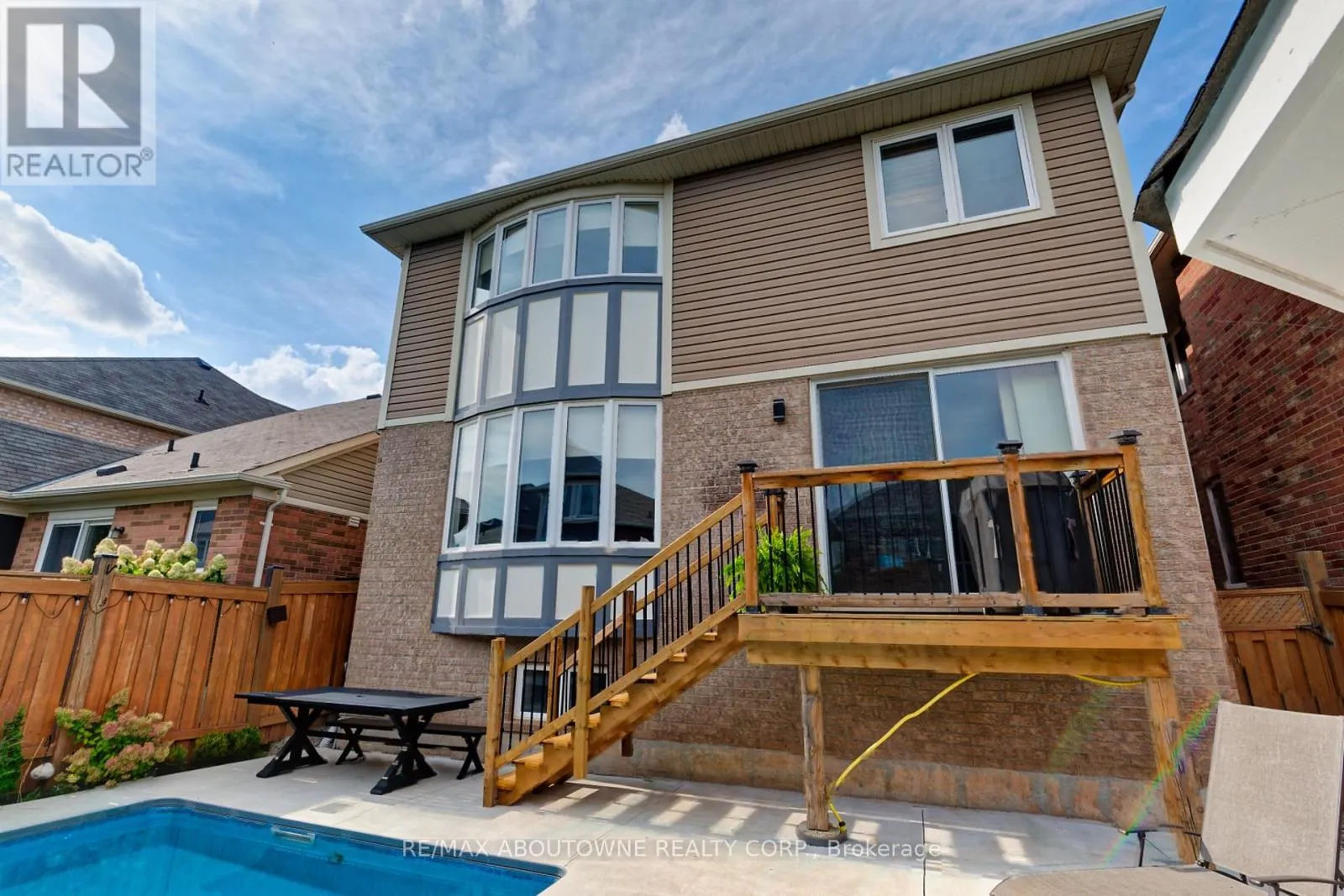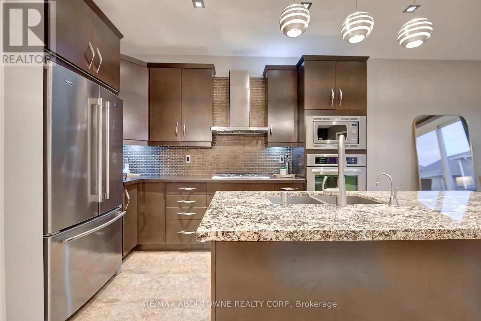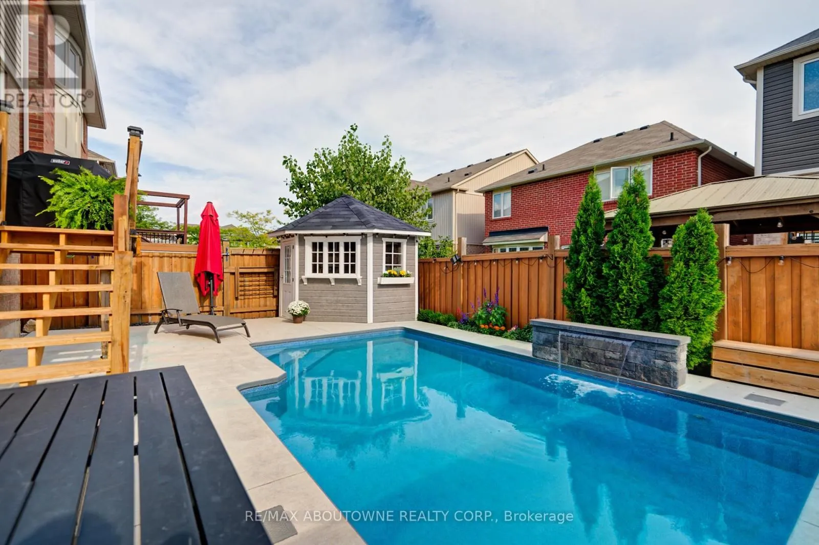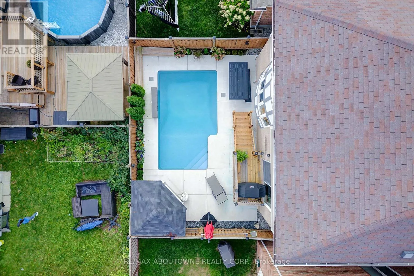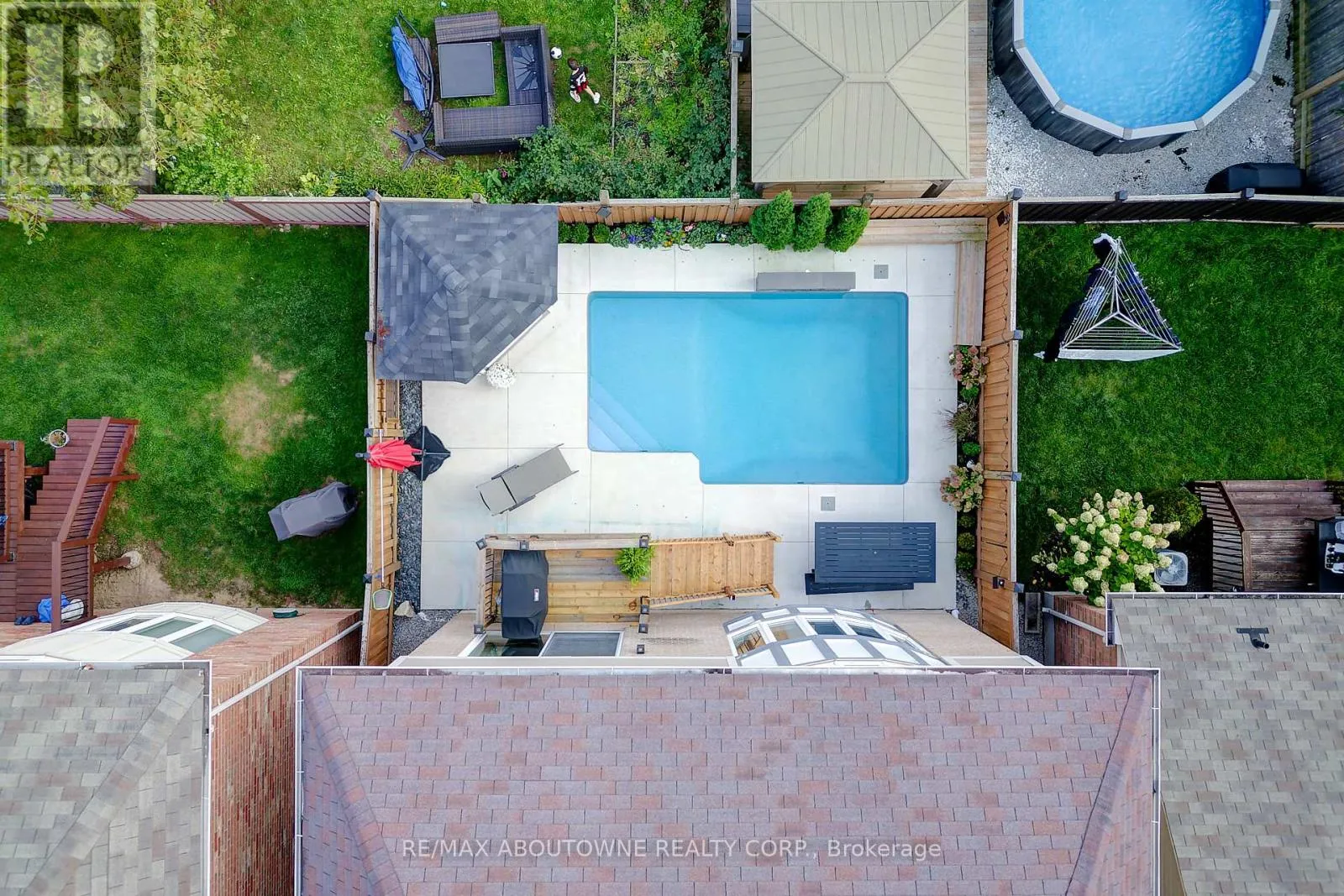 Cross Streets: Bronte & Derry. ** Directions: Pringle -Savoline. Beautiful 2,296 square foot brick and stone detached home located in Milton's sought-after Harrison neighbourhood, a family-focused community known for its parks, playgrounds and walking trails.This well-designed home offers spacious principal rooms with beautiful maple hardwood flooring, Approx. 52 upgraded pot lights, Kitchen Aid B/I cooktop and wall oven .The Living room features Cathedral ceiling and 2 French doors to large balcony.and overlooks a formal dining room, The open concept kitchen with breakfast area overlooks the backyard.Step outside to your private backyard oasis featuring an pioneer in-ground pool installed in 2021. Perfect for summer entertaining and relaxing with family and friends.The upper level offers generously sized bedrooms including a spacious Primary suite with 5Pc ensuite bath.hardwood maple floors and walk-in closet.The finished basement adds valuable living space with a recreation room, bedroom with 3pce ensuite bathroom, ideal for guests, teens or extended family.Located close to excellent schools, parks, shopping and commuter routes, this home offers the perfect combination of space, comfort and location in one of Milton's most desirable neighbourhoods (id:27476)