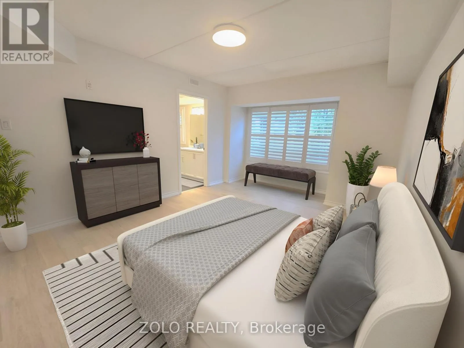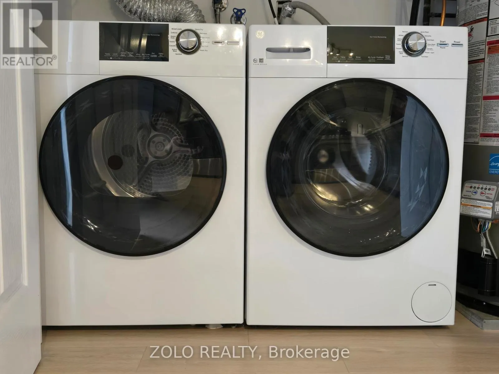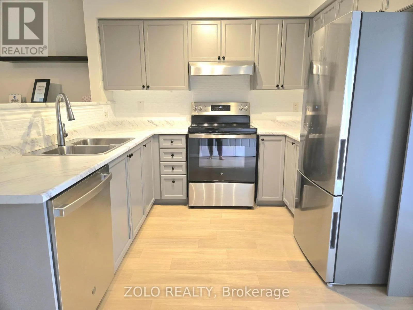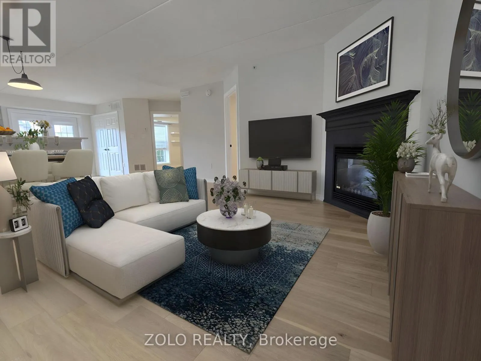 Cross Streets: Main Street E. & James Snow Parkway. ** Directions: Corner of Main Street & Maple Avenue. **Property is Virtually Staged**. Welcome home to this beautiful, bright, open concept, newly renovated main level 2 bed + 2 full bath corner unit nestled in the quiet Milton complex of Milton Crossing; Boasting over 1000 square feet of open concept living; Enjoy sunsets on your private porch; Very spacious and loaded with upgrades, including hard wood floors throughout; Appliances include: stainless steel fridge, stove, dishwasher & microwave; washer & dryer, all purchased new in 2023; freshly painted in neutral and modern colors; Living room features a stunning corner gas fireplace; Ensuite laundry; Quartz countertops in bathrooms; Ample visitor parking; One underground parking space & one storage locker; Building amenities include onsite gym & party room; Only minutes from major highways, hospitals, schools, parks, shopping & entertainment. (id:27476)