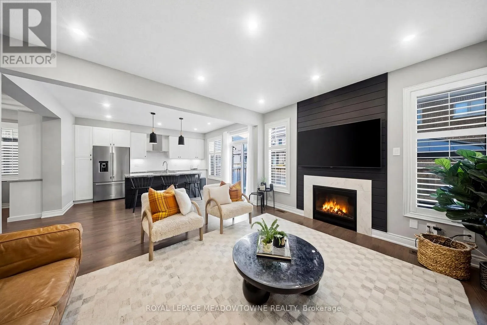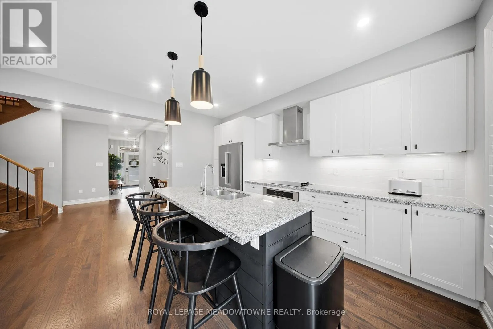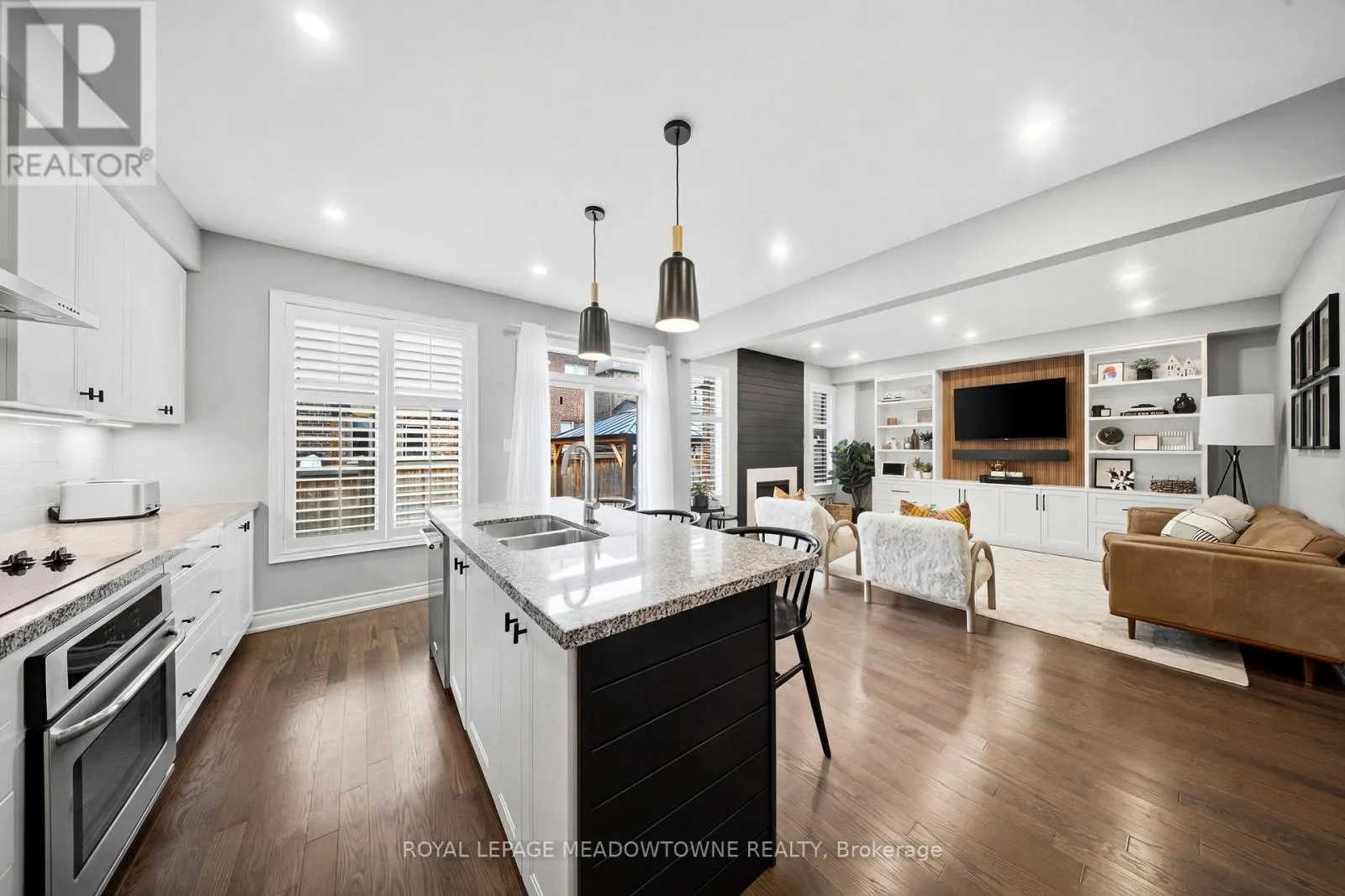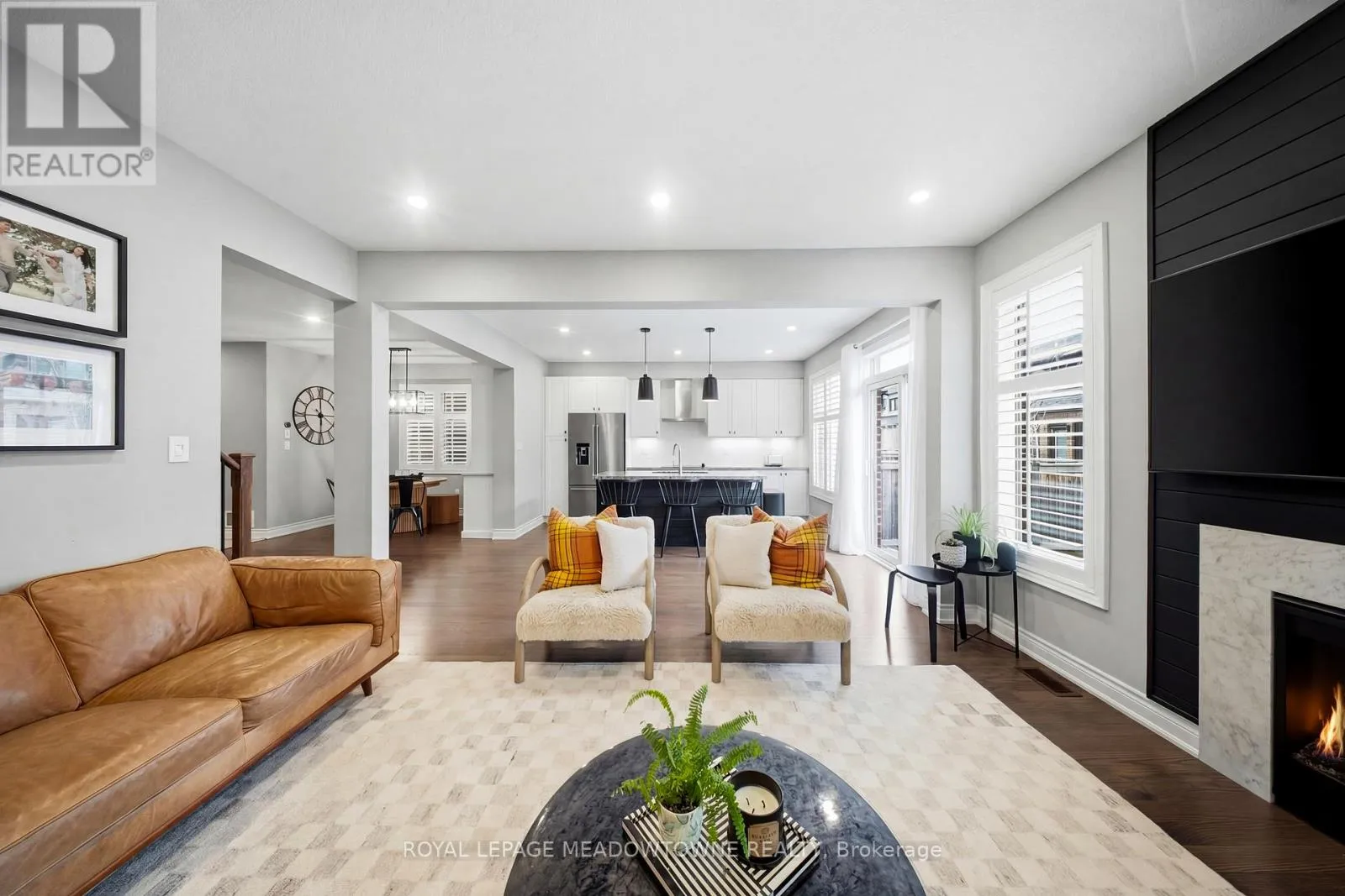 Hwy 25/Louis St Laurent Ave Welcome home to this beautifully maintained 4-bedroom residence nestled on a quiet, family-friendly street. The open-concept main floor features rich hardwood flooring, a bright dining area with a large window, and a spacious living room complete with a cozy gas fireplace. An elegant oak staircase with wrought iron pickets adds a touch of sophistication. The upgraded kitchen is designed for both style and function, offering stainless steel appliances, quartz countertops, a breakfast bar, and a walkout to a fully fenced backyard with an interlock patio-perfect for entertaining and outdoor enjoyment. Enjoy the convenience of main floor laundry with direct access to the garage, featuring a durable painted epoxy floor. Upstairs, the generous primary suite boasts a walk-in closet and a luxurious 5-piece ensuite with a separate shower. Three additional well-sized bedrooms and a full bathroom complete the upper level. The finished basement adds valuable living space with a rec room and an additional bathroom-ideal for family gatherings or a home retreat. Ideally located close to parks, sports fields, top-rated schools, scenic trails along 16 Mile Creek, the Milton Sports Centre, shopping, dining, and Rattlesnake Golf Club-this home offers the perfect blend of comfort, convenience, and community living. (id:27476)