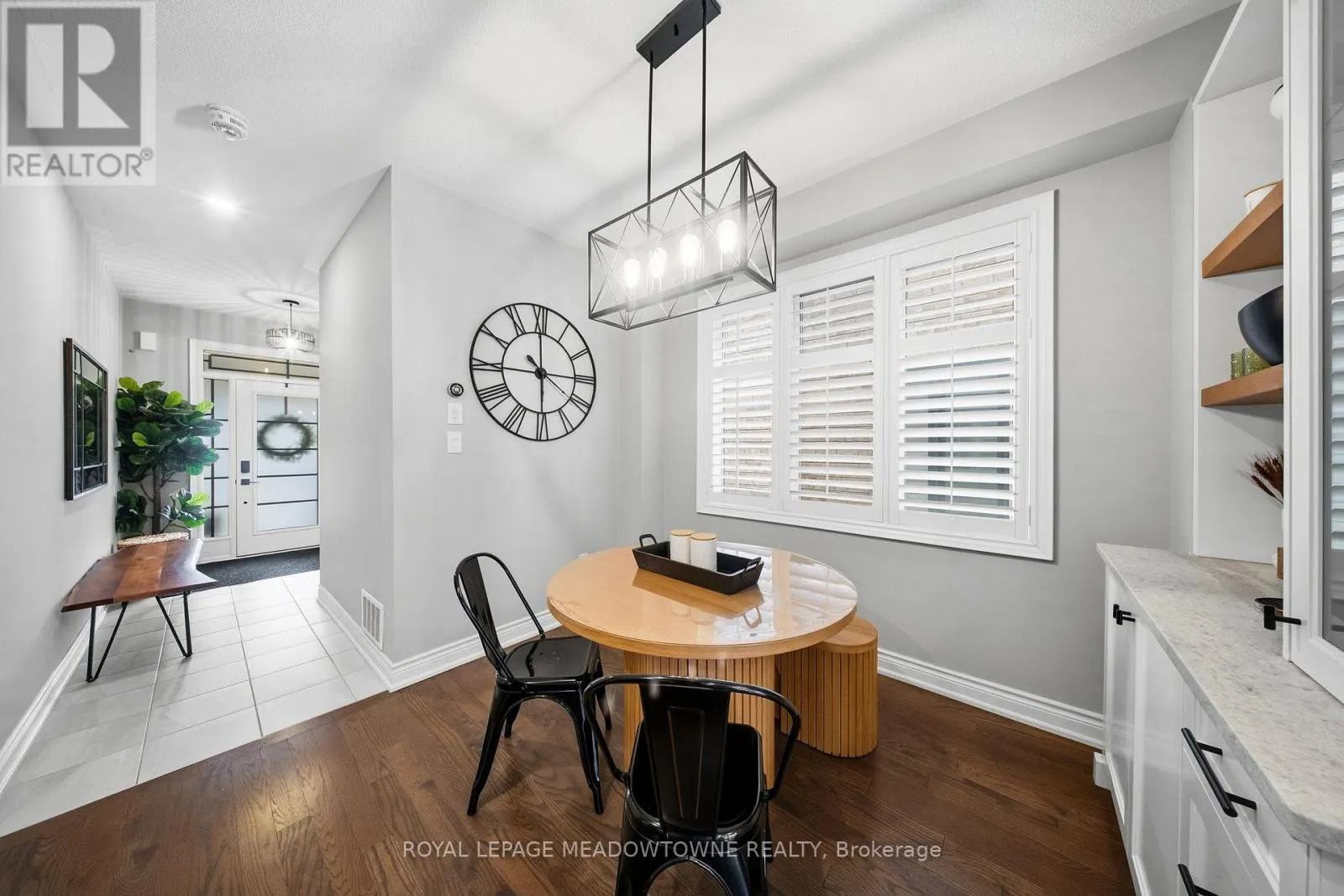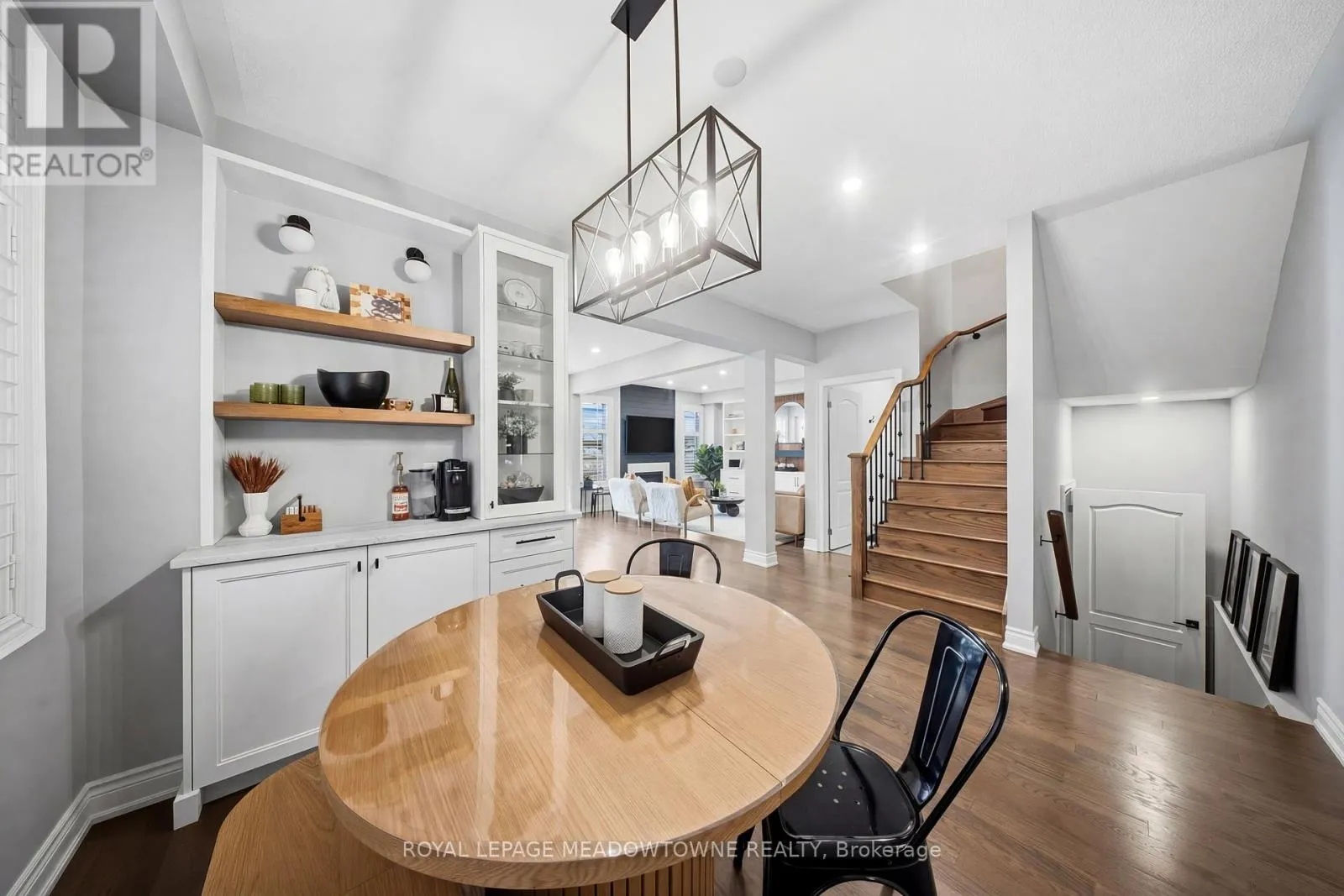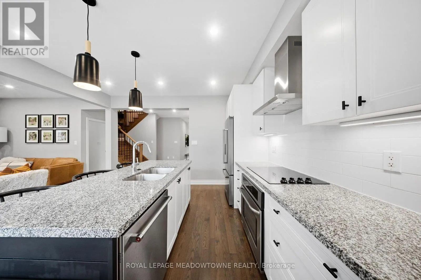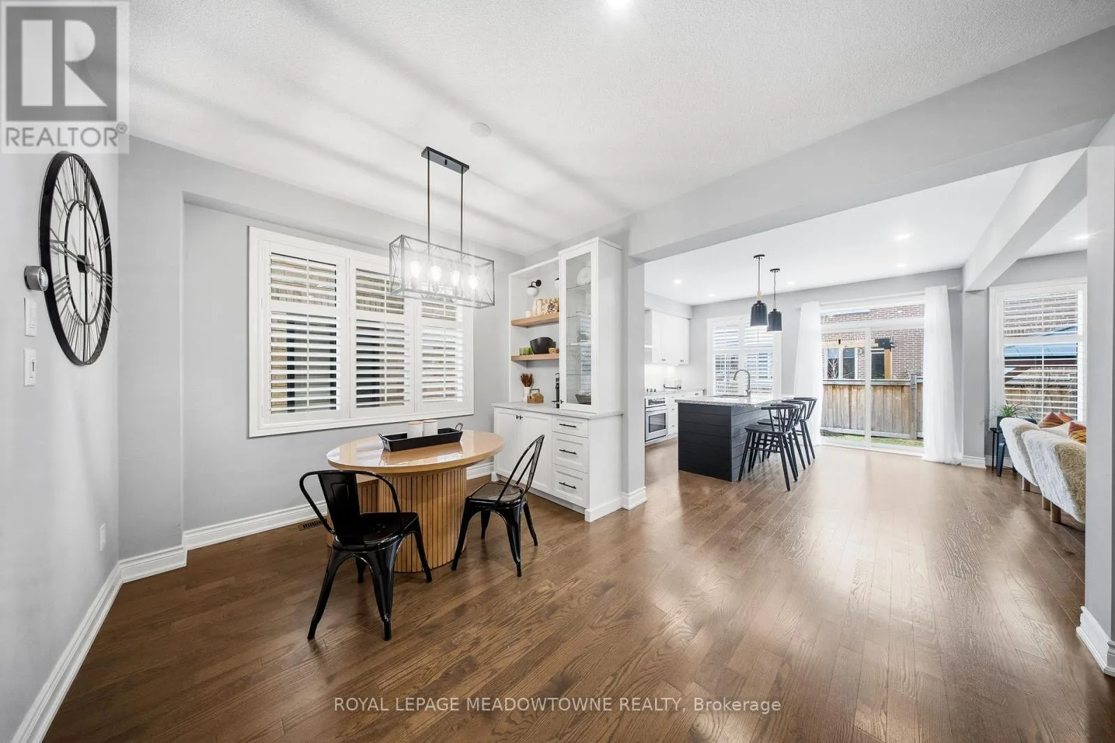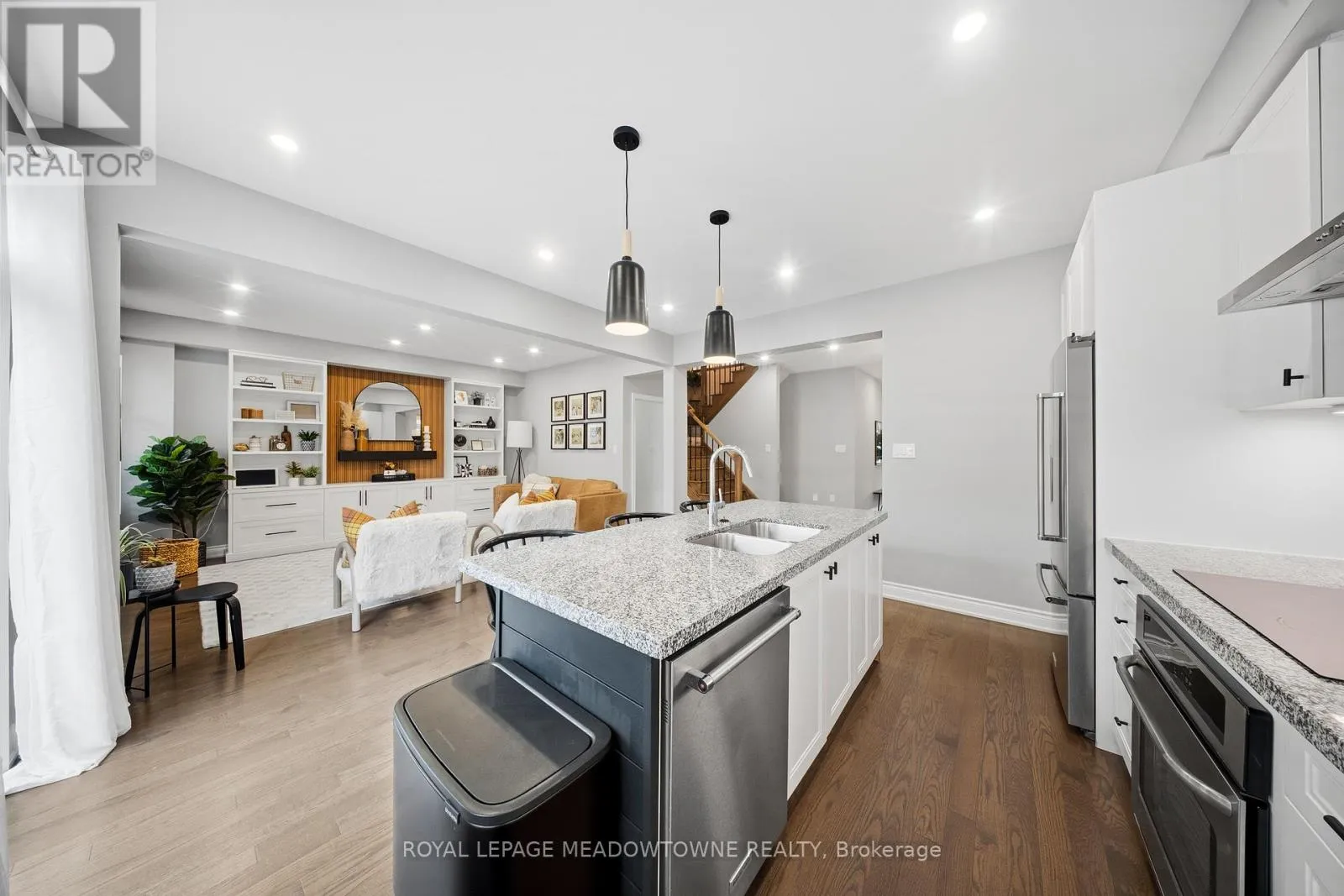 Hwy 25/Louis St Laurent Ave Welcome home to this beautifully maintained 4-bedroom residence nestled on a quiet, family-friendly street. The open-concept main floor features rich hardwood flooring, a bright dining area with a large window, and a spacious living room complete with a cozy gas fireplace. An elegant oak staircase with wrought iron pickets adds a touch of sophistication. The upgraded kitchen is designed for both style and function, offering stainless steel appliances, quartz countertops, a breakfast bar, and a walkout to a fully fenced backyard with an interlock patio-perfect for entertaining and outdoor enjoyment. Enjoy the convenience of main floor laundry with direct access to the garage, featuring a durable painted epoxy floor. Upstairs, the generous primary suite boasts a walk-in closet and a luxurious 5-piece ensuite with a separate shower. Three additional well-sized bedrooms and a full bathroom complete the upper level. The finished basement adds valuable living space with a rec room and an additional bathroom-ideal for family gatherings or a home retreat. Ideally located close to parks, sports fields, top-rated schools, scenic trails along 16 Mile Creek, the Milton Sports Centre, shopping, dining, and Rattlesnake Golf Club-this home offers the perfect blend of comfort, convenience, and community living. (id:27476)