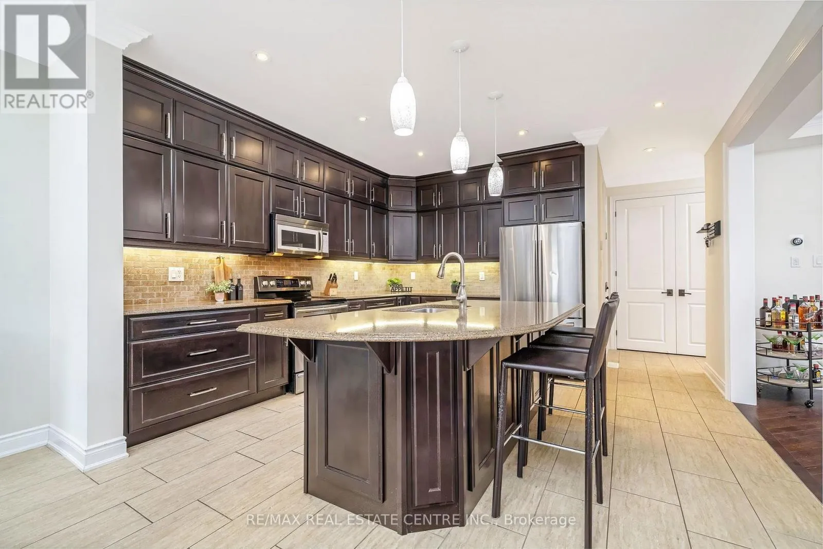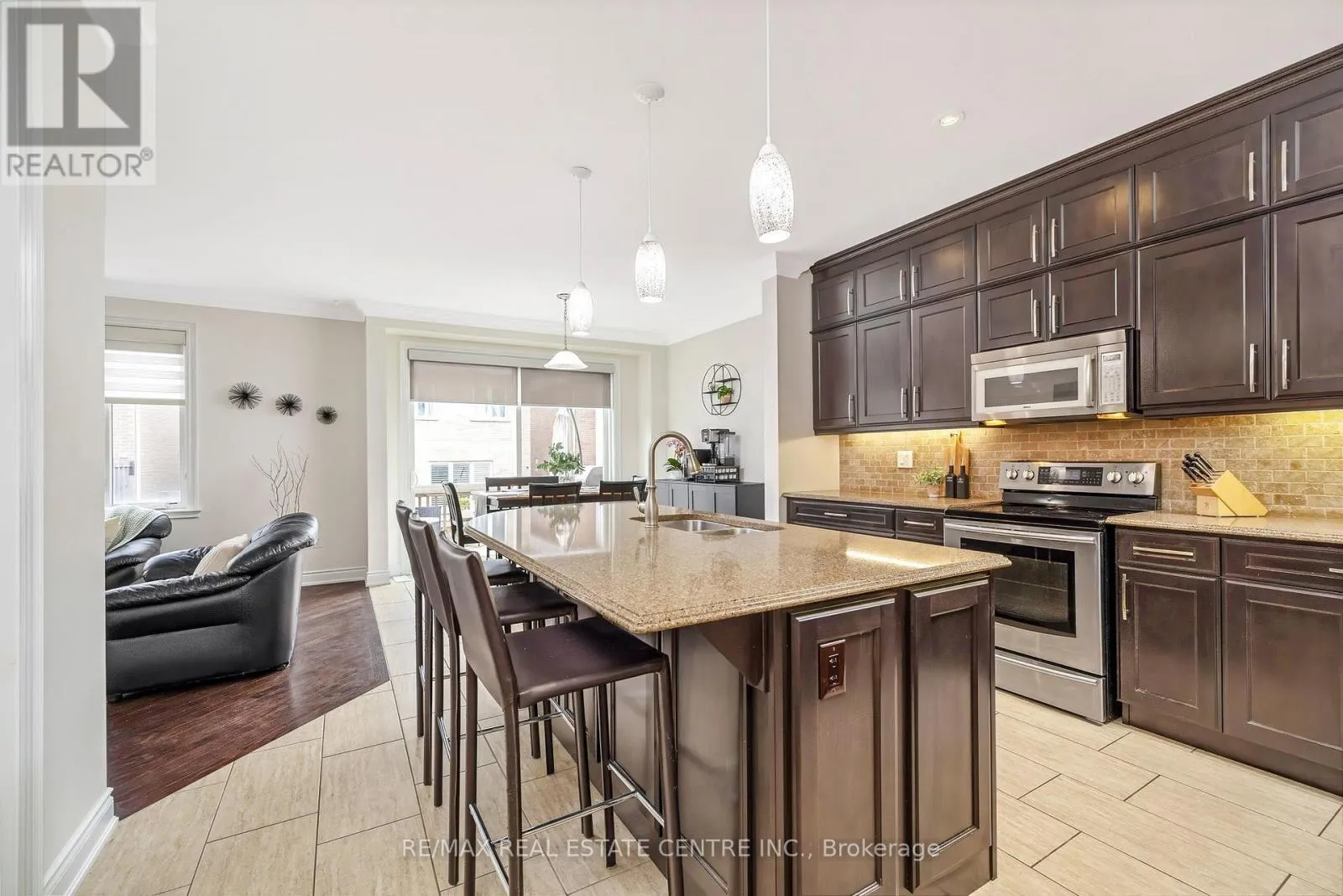 Cross Streets: Farmstead Drive and Etheridge Avenue. ** Directions: Farmstead Drive to Whitney Terrace. Stunning all-stone and brick 4-bedroom detached FOREVER HOME with almost $150K in UPGRADES situated on a PREMIUM PIE-SHAPED lot with an expansive 75+ FT WIDE BACKYARD. This beautifully upgraded home features a CUSTOMIZED FLOOR PLAN with an open-concept main floor with 9 FT CEILINGS, crown moulding, pot lights, and diagonally cut hardwood flooring throughout. A HOME OFFICE off the front entry and tucked away from the rest of the living space adds convenience and privacy for working from home. The separate dining area overlooks the bright living room with a cozy gas fireplace and views of the backyard. The modern kitchen is designed for both style and function, offering ceiling-height cabinetry, under-cabinet lighting, stainless steel appliances, granite countertops, tile backsplash, cvac crumb catcher, and a MASSIVE CENTRE ISLAND with breakfast bar. Upstairs, a stained oak staircase leads to four spacious bedrooms and CONVENIENT 2ND FLOOR LAUNDRY with built-in cabinetry, window, and floor drain. The primary suite features two closets (including a large walk-in), a dramatic underlit tray ceiling, and a 4-pc ensuite with double sinks, glass shower with bench, and steam shower rough-in. The 5-pc main bath includes double sinks, elegant tilework, and a built-in linen closet. The unfinished basement OVER-SIZED ABOVE-GRADE LOOKOUT WINDOWS, a bathroom rough-in, cold cellar, conduit from basement to attic for future updates, and endless potential. Enjoy the massive, POOL-SIZED BACK YARD with a raised deck, BBQ gas line - never run out!), stairs to a raised aggregate patio, a raised Armour stone vegetable or flower garden, and double gate access. Front and side aggregate walkways provide a clean, low-maintenance exterior. Ideally located on a quiet, child-friendly street close to top-rated schools, parks, shopping, restaurants, and amenities, with easy highway access and nearby conservation areas for year-round outdoor enjoyment. This exceptional family home truly has it all! (id:27476)