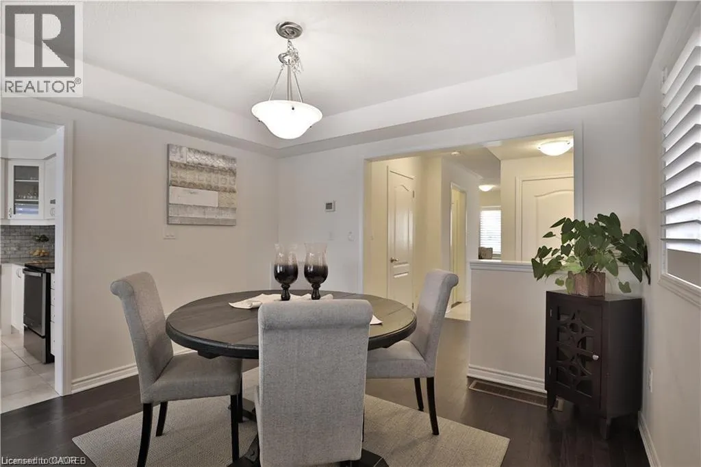 Britannia, Farmstead, L on Eves, R on Gooding Cres Welcome to this stunning 3 bedroom, 3 bathroom freehold townhouse, the Parkhill End Model built by Mattamy! As you approach, you'll be greeted by a lovely sunny covered front porch. Step into the foyer, featuring a double closet and a charming den with a large window that invites natural light.The oversized kitchen boasts white cabinetry, a double sink, and a suite of four stainless steel appliances. It offers ample countertop space and a large sliding glass door that opens to the rear yard, seamlessly connecting to a spacious living room with an expansive window, as well as a separate dining room. The main floor also includes a convenient two-piece washroom and access to the garage. Upstairs, you'll find the primary bedroom, which features large windows, a walk-in closet, and a luxurious four-piece ensuite with a double-wide vanity and a walk-in shower with a glass door. The second bedroom showcases vaulted ceilings and large windows, along with a double closet, while the third bedroom includes a sizable window and a walk-in closet. The upper level also offers a four-piece main bathroom with ceramic tile, a generous vanity, and a tub/shower combination, as well as a separate laundry room equipped with a washer and dryer. The driveway accommodates one car, in addition to the single-car garage with inside entry. The fully fenced backyard features a gate, enhancing privacy and security. This unit is an end unit, providing extra windows and access to the side yard. 1723 Sq ft. Available starting May 1st, a rental application is required, along with three months of pay stubs, an employment letter, an updated full credit report, references, and identification. (id:27476)