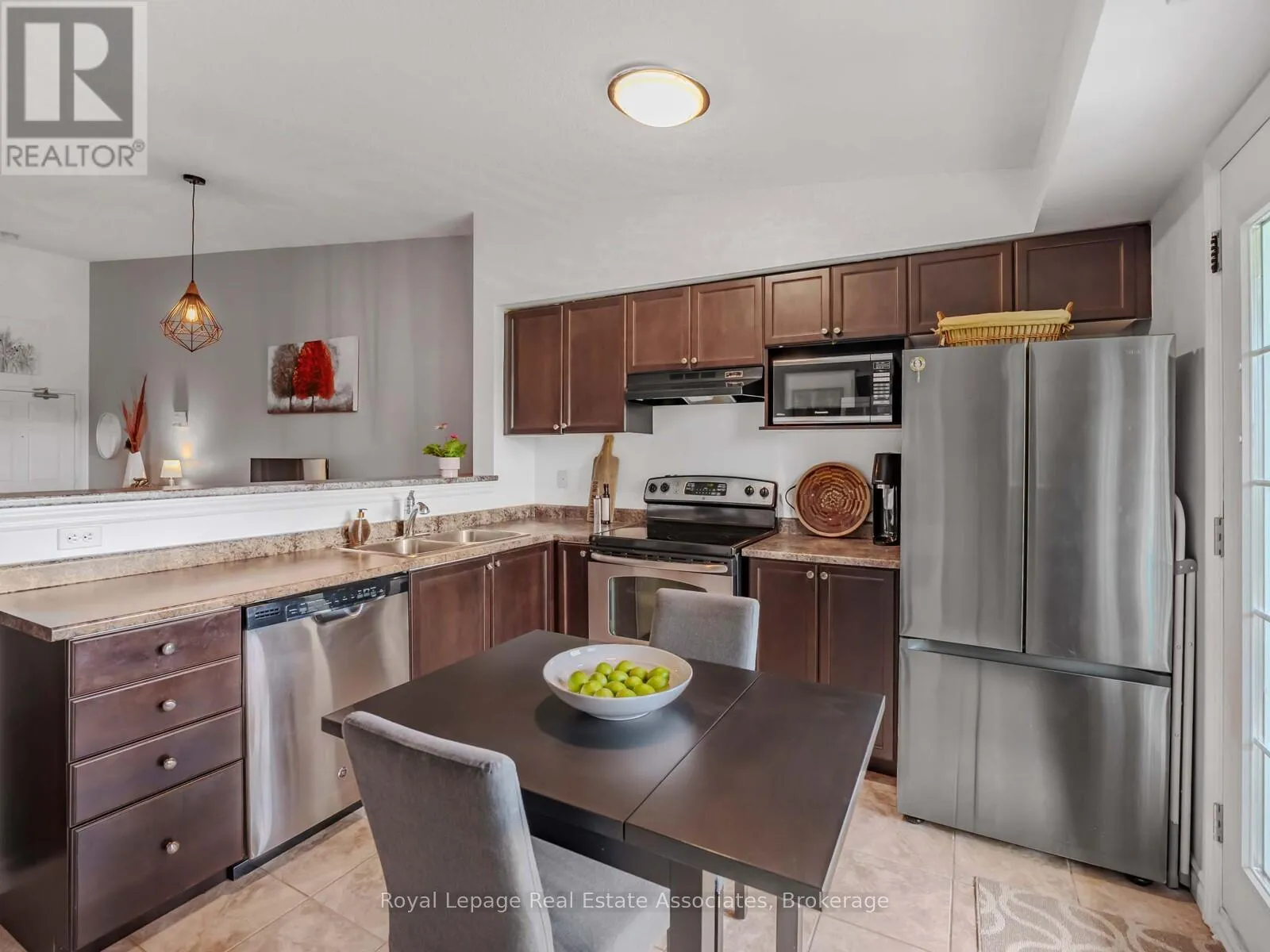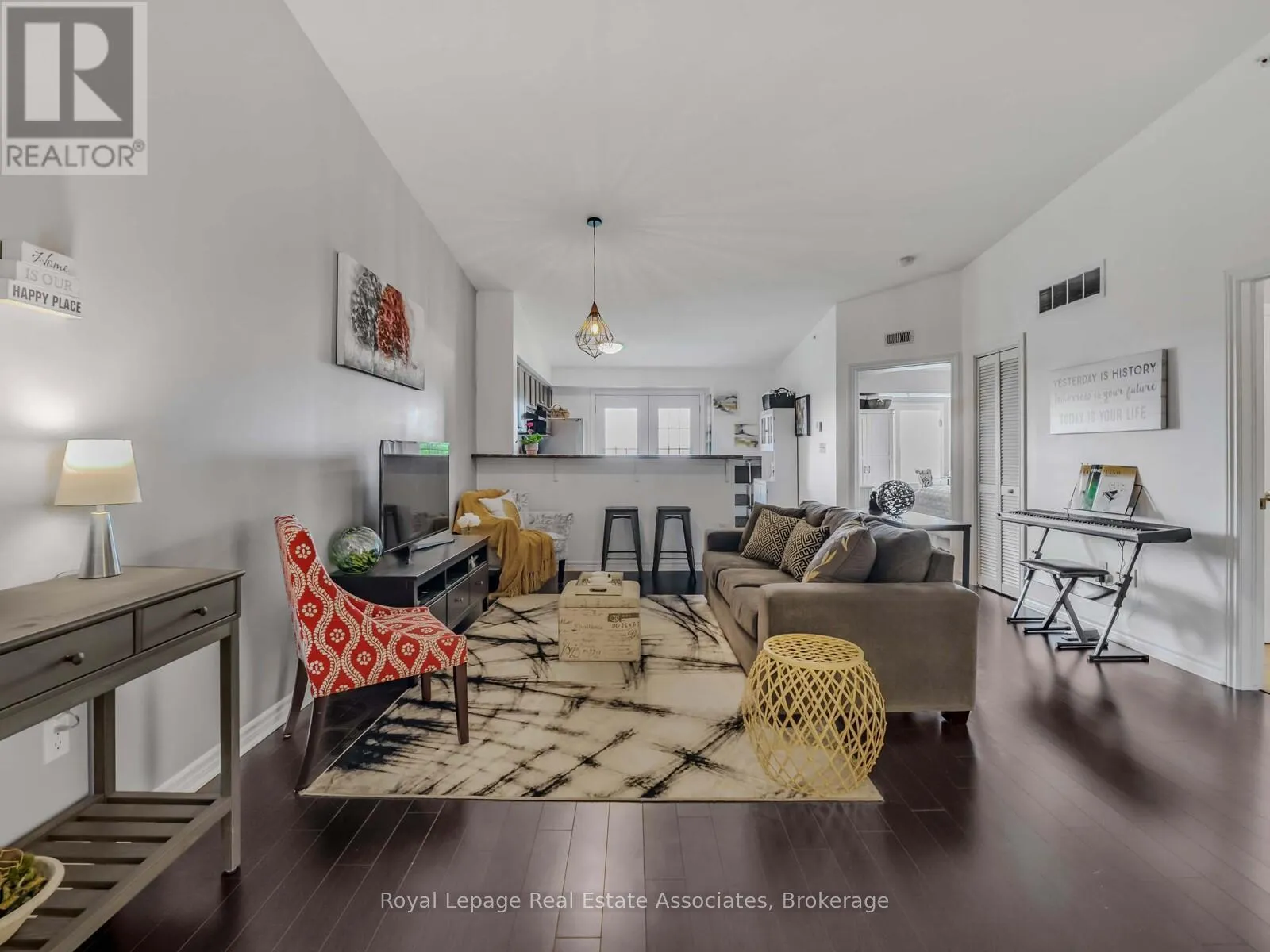Cross Streets: Main Street E & James Snow Pkwy. ** Directions: SW of Main Street E & James Snow Pkwy. Welcome to this beautiful top-floor suite at Bristol on Main, where impressive 12-foot vaulted ceilings create a bright, open feel throughout. Offering 893 sqft of thoughtfully designed living, the open-concept layout features a spacious living area that flows effortlessly into a well-appointed kitchen with an eat-in dining space and breakfast bar, ideal for both everyday living and entertaining. French doors open to a private balcony overlooking the peaceful park and lush greenery, creating a serene outdoor escape. The generous primary bedroom includes a cozy sitting area or workspace with the same tranquil views. A flexible second bedroom or den features a walk-in closet, adding valuable storage and versatility. Pride of ownership is evident throughout this meticulously maintained suite and well-managed building. Conveniently located near excellent schools, Milton GO, public transit, and Highway 401, everything you need is within easy reach. Plus experience the comfort and charm of top-floor living in this exceptional suite! (id:27476)