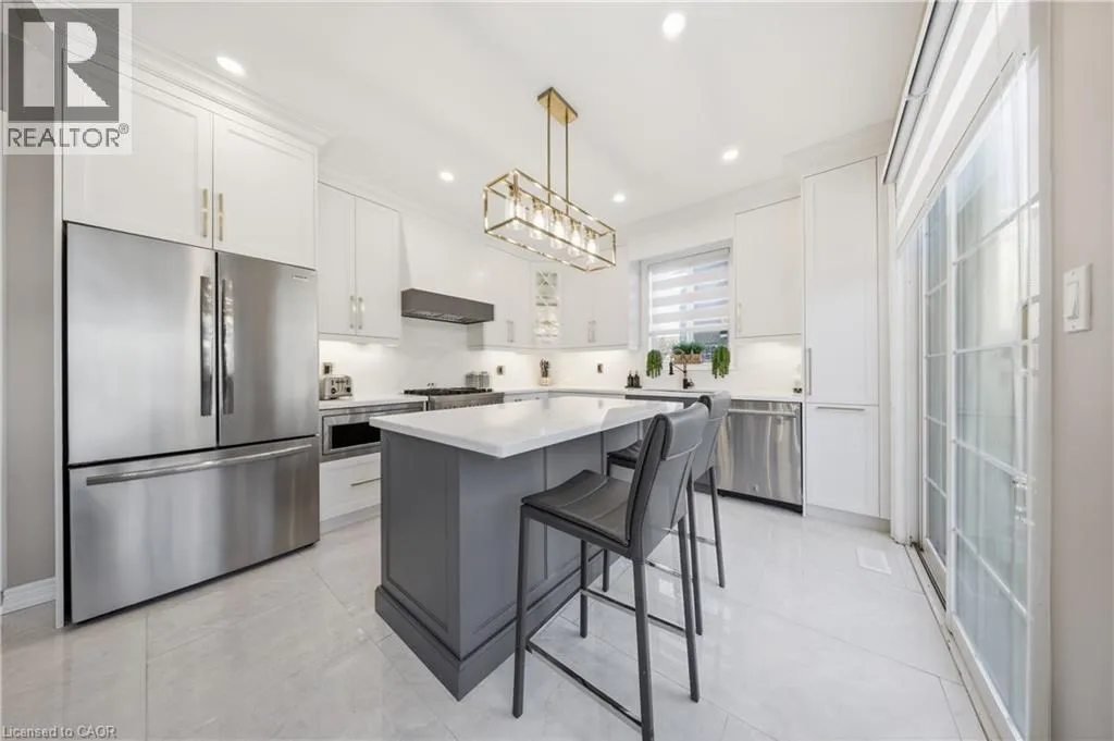 Welcome to 1360 Hill, an exceptional opportunity in a highly sought-after enclave in Beaty. Set on a 52x103ft lot, this beautifully maintained Mattamy home, proudly owned by the original owners, offers 2,675 sq ft above grade plus a 900 sq ft finished basement. Positioned minutes to shopping, schools, parks, public transit, and Hwy 401, this home delivers a high walk score. Enjoy a thoughtful layout designed for everyday comfort and entertaining, with 9ft ceilings on the main floor, brand new porcelain tiles throughout the main level, professionally refinished maple hardwood on the main and upper levels, and a timeless oak staircase. Updated lighting and pot lights enhance the home, while the walk-in coat closet adds convenience. At the heart of the home is the professionally designed luxury kitchen (2024), featuring custom cabinetry, quartz countertops and backsplash, and new JennAir appliances with transferable extended warranties. The kitchen is elevated with a built-in microwave, valance lighting, gas range, and commercial-grade professional range hood. Just off the kitchen, the inviting family room is anchored by a stone-clad gas fireplace. A custom-built office offers a polished work-from-home setup, while the primary bedroom includes custom closets. Upstairs, you'll find 4 large bedrooms and second-floor laundry. The fully finished basement adds bonus space with brand-new luxury vinyl flooring, home theatre, gym area, bathroom, large recreation space, two storage rooms, and a sump pump. Outside, an oversized driveway accommodates 4 vehicles, plus an oversized 2 car garage with shelving. A new high-end GARAGA garage door adds style and function. The roof was completed in 2017 and remains in excellent condition. Step into the oversized backyard and unwind on the wooden deck, perfect for summer BBQs and outdoor entertaining. A rare offering blending space, upgrades, and prime location-this is a home you don't just move into, you grow into. (id:27476)