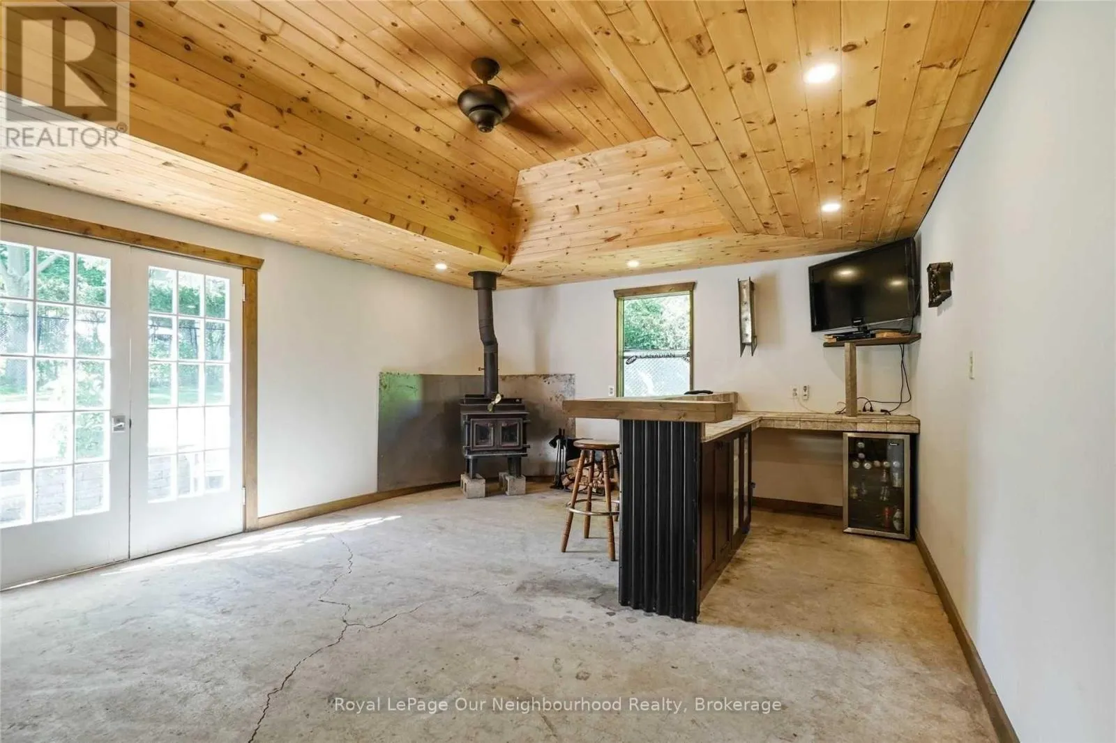 Cross Streets: Guelph Line/Highway 401. ** Directions: Guelph Line South Of The 401. Welcome to Campbellville and this quaint and charming 2-bedroom bungalow, perfect for the down-sizer or first-time buyer. Small-town living yet so close to city amenities, this home is minutes to the 401 and a short drive to the heart of Milton. A stamped concrete walkway welcomes you to the front door. The living and dining areas feature unique crown moulding and abundant natural light. The kitchen is bright and spacious with ample counter space and a breakfast bar/prep area, while a pocket door separates it from the side entrance leading to the basement.Two well-sized bedrooms are located on the main floor, one with a walk-out to the backyard deck. The basement offers a cozy rec room with beautiful flooring and pot lights, an office area with a built-in workspace, an additional bedroom with above-grade windows and double closet, and a spacious laundry room with a 3-piece bath. A kitchenette was added during the 2022 basement renovation, along with numerous upgrades throughout. A second laundry was also added upstairs, and a brand-new water softener was installed in 2026.The fully fenced backyard is gorgeous, featuring a 2020 deck, 2019 hot tub, tasteful landscaping, and a stamped concrete walkway around the garage. The garage is truly unique, with a long and wide parking area ideal for a workshop. Beyond it, separated by sliding barn doors, is an impressive "man-cave" complete with a wood-burning stove, bar, and coffered wood ceiling, with French doors leading to the yard.This home has been very well maintained with many improvements over the years. Situated on a prime lot with significant development potential, the neighboring property is also available for sale, presenting a rare opportunity for future expansion or land assembly. Well, water, and septic studies have been completed, and when combined with the adjacent property, the site offers strong potential for a multi-use commercial/residential development or live-work townhomes. (id:27476)