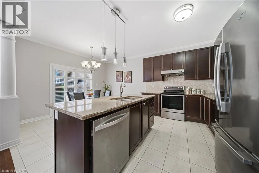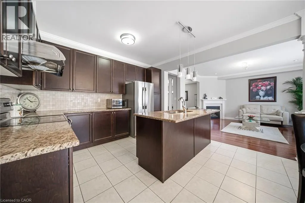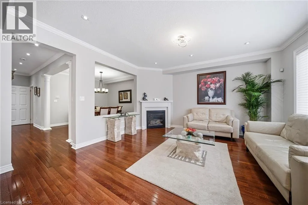 Hwy 25 - Louis St. Laurent Ave - Yates Dr - Stoutt Cres Welcome to this stunning detached home in the desirable Coates neighbourhood of Milton. in Milton, offering a grand double-door entry and a warm, inviting foyer. Elegant wood stairs with iron spindles enhance the home's upscale feel, leading into a bright and spacious main floor. The living room features pot lights and gleaming hardwood floors, creating a perfect space to relax, while the separate dining area is ideal for entertaining family and guests. The family room boasts an electric fireplace, pot lights, and large windows that fill the space with natural light. The designer kitchen is both stylish and functional, complete with stainless steel appliances, modern countertops, and ample cabinetry for storage. The adjoining breakfast area is perfect for everyday meals or morning coffee and offers direct access to the backyard. Main floor laundry adds everyday convenience. Upstairs, you'll find a versatile office nook, ideal for working from home or study space. The spacious primary bedroom features a large ensuite with double sinks and a walk-in closet. Two additional well-sized bedrooms are complemented by two full bathrooms, offering comfort for the whole family. The finished basement adds valuable living space with new vinyl flooring, a generous rec room, an additional bedroom, closet, and a full bathroom-perfect for guests or extended family. Step outside to a huge fully fenced backyard featuring aggregate concrete, ideal for outdoor gatherings and family enjoyment. Additional highlights include a concrete driveway border and two exterior cameras included for added security and peace of mind. (id:27476)