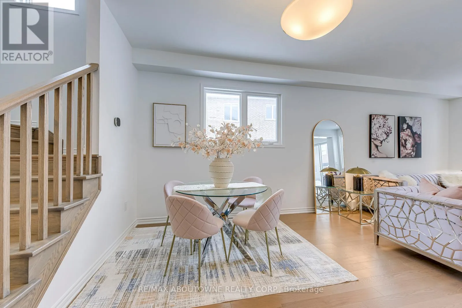 Ferguson Dr & Louis St. Laurent One-year-new fully upgraded 1938 sq. ft. end unit townhouse located on a quiet street of Milton's most desirable new development subdivisions. This sun-filled home offers a thoughtfully designed layout featuring 4 spacious bedrooms, 3 modern washrooms, 2 walk-in closets and 9 feet ceilings on both main and second floor. The open-concept main floor features abundant natural light, and a modern kitchen with a large center island, high-end cabinetry, and upgraded quartz countertops. Tasteful hardwood flooring and staircases add elegance throughout the home, while upgraded porcelain tiles enhance all washrooms. As an end unit, this home enjoys added privacy and natural light, with one side backing onto peaceful backyard green space. Ideally located close to the community centre, schools, shopping, public transit, major highways, and all essential amenities, this home offers both comfort and convenience. (id:27476)