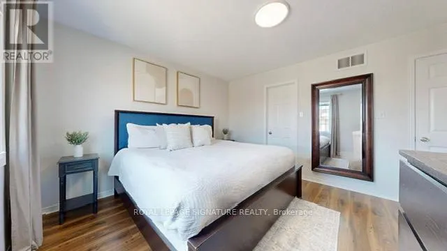 Maple Ave. & Thompson Rd. N. Welcome to this move-in ready, turnkey semi-detached home in the highly desirable Dempsey neighbourhood, with premium upgrades and thoughtful renovations throughout! Located on a quiet, low-traffic street, it offers excellent curb appeal with a covered front porch, no sidewalk to maintain, and a fully fenced private backyard + patio - perfect for relaxing or entertaining.The main floor boasts a bright, open-concept living and dining area with sliding doors to a private backyard for seamless indoor-outdoor living. The kitchen includes stainless steel appliances, a modern backsplash, refreshed cabinetry, a large window overlooking the yard, and a convenient pass-through. A spacious, sunlit foyer features a walk-in closet with built-in shelving, an Ecobee Smart Thermostat, and a stylish 2-piece powder room with a quartz vanity.Upstairs, the spacious primary bedroom accommodates a king-size bed and has a walk-in closet, large windows, and a semi-ensuite 4-piece washroom with a whirlpool tub and quartz vanity. All three bedrooms offer ample closet space, natural light and large windows.The finished basement - with separate side entrance - adds nearly 600 sq ft of additional living space, complete with a 3-piece bathroom and wet bar; ideal for an entertainment room, home office, or in-law suite. Additional features include a new furnace (2025), cold room, utility room, enclosed laundry area and under-stairs storage area.A long driveway and garage provide parking for three vehicles, with automatic garage door opener and interior access. Conveniently located within walking distance to transit, GO Train, shopping, medical services, parks, and top-rated schools - this home offers the perfect blend of comfort, style, and convenience! (id:27476)
