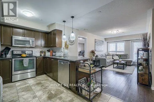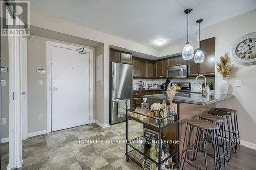 Hwy 25 & Louis St Laurent Welcome to Village Suites - The Mambo! This bright and spacious 2-bed, 2-bath ground floor suite offers the perfect blend of comfort and convenience in one of Milton's most sought-after communities. Enjoy an open-concept living and dining area with walk-out to your private balcony, a modern kitchen featuring granite counters, breakfast bar, and backsplash, plus the ease of in-suite laundry. The generous primary bedroom features a large closet and 3-piece ensuite. Located steps to Milton Community Park, Sports Centre, schools, hospital, Sobeys, and public transit. Underground parking and private locker included. Maintenance fees cover heat, CAC, common elements, building insurance, and parking. A turnkey opportunity for first-time buyers, downsizers, or investors alike! (id:27476)