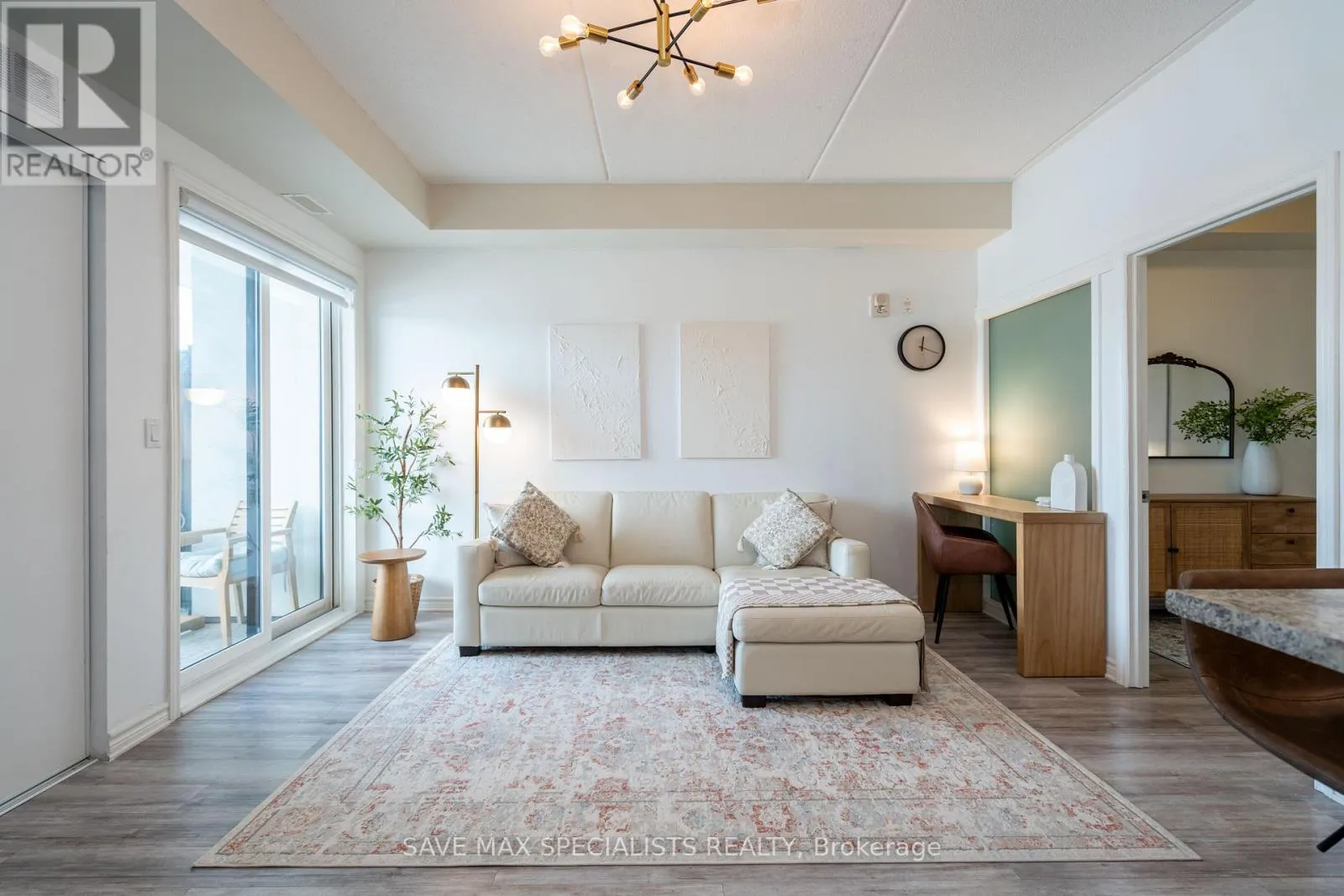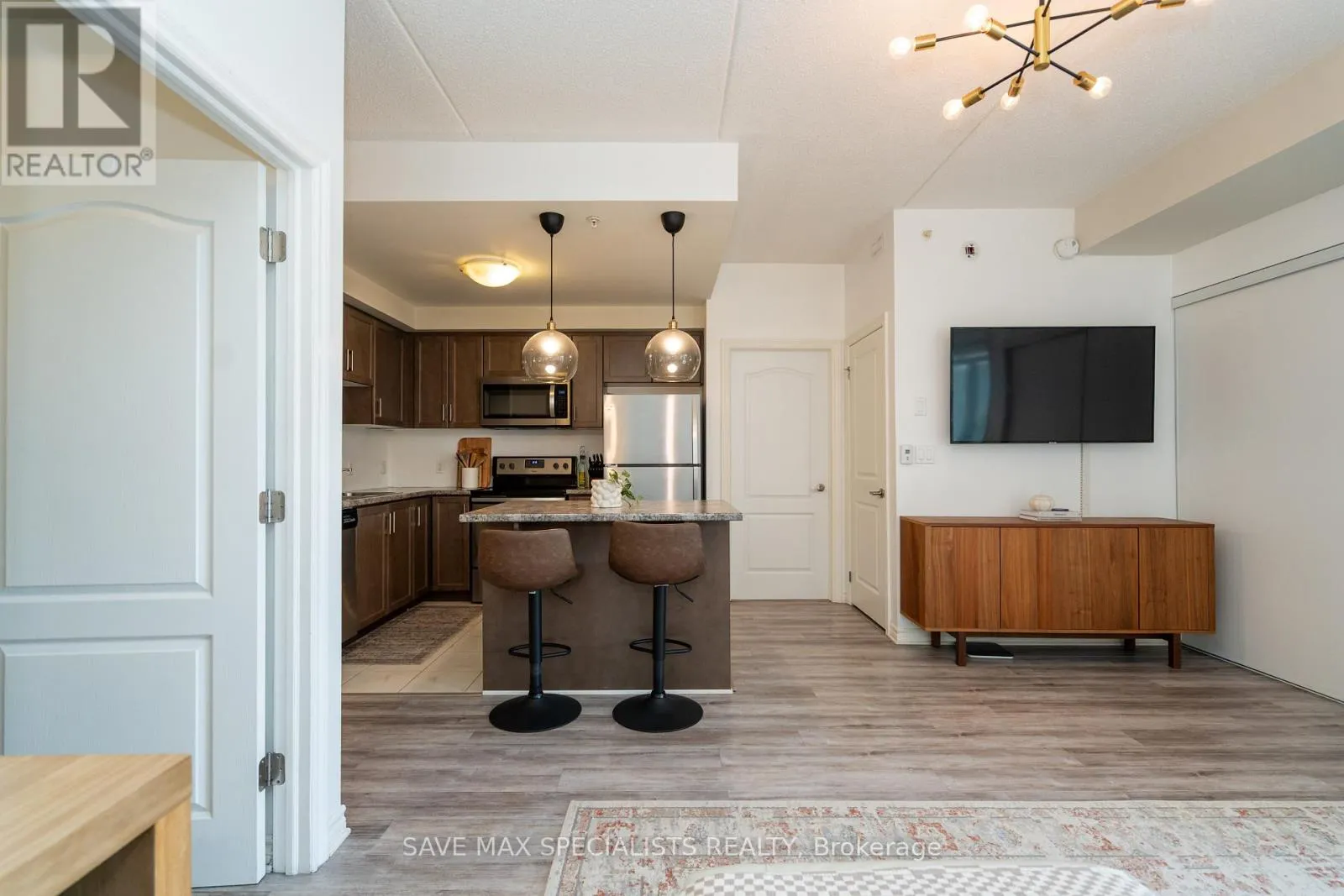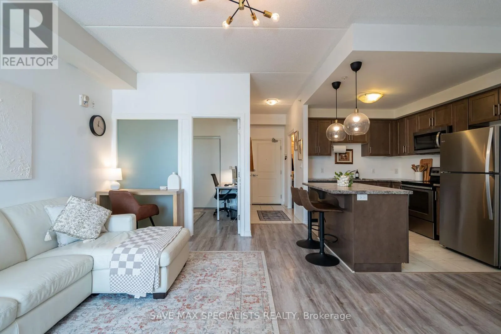 Derry / James Snow pkwy Welcome to this beautifully designed 2-bedroom, 1-bath condo offering a bright and spacious open-concept layout with soaring 9-foot ceilings and a walk-out to your own private balcony -perfect for enjoying your morning coffee or unwinding in the evening. This stylish, carpet-free unit features upgraded laminate flooring throughout and a sleek, modern kitchen equipped with stainless steel appliances and a functional eat-in island, ideal for both everyday living and entertaining. Residents enjoy access to premium amenities including a rooftop terrace with stunning views. Common amenities include 2 fully-equipped fitness rooms, and 2 large party rooms. The building also offers ample visitor parking for added convenience. Perfectly located just minutes from the GO Train and Hwy 407/401, and within walking distance to Irma Coulson Public School, Lullaboo nursery and Childcare, parks, and essential shopping, this condo combines comfort, style, and unbeatable convenience - a true gem in a prime location. (id:27476)