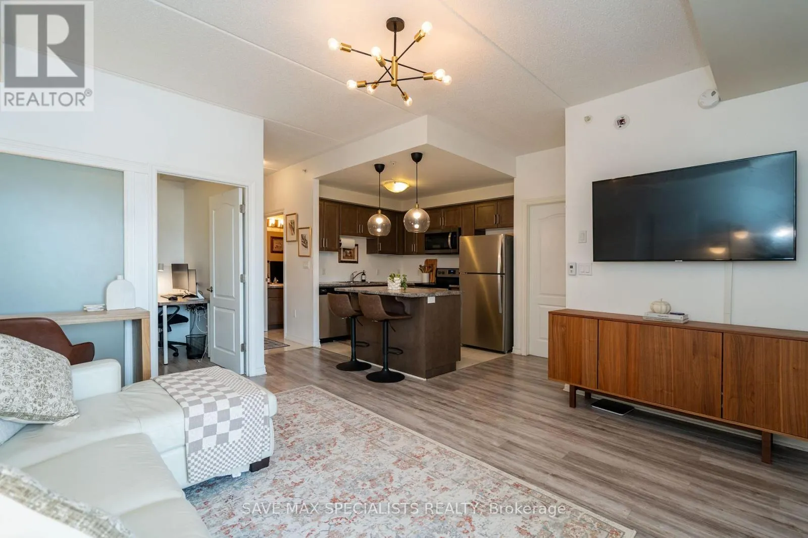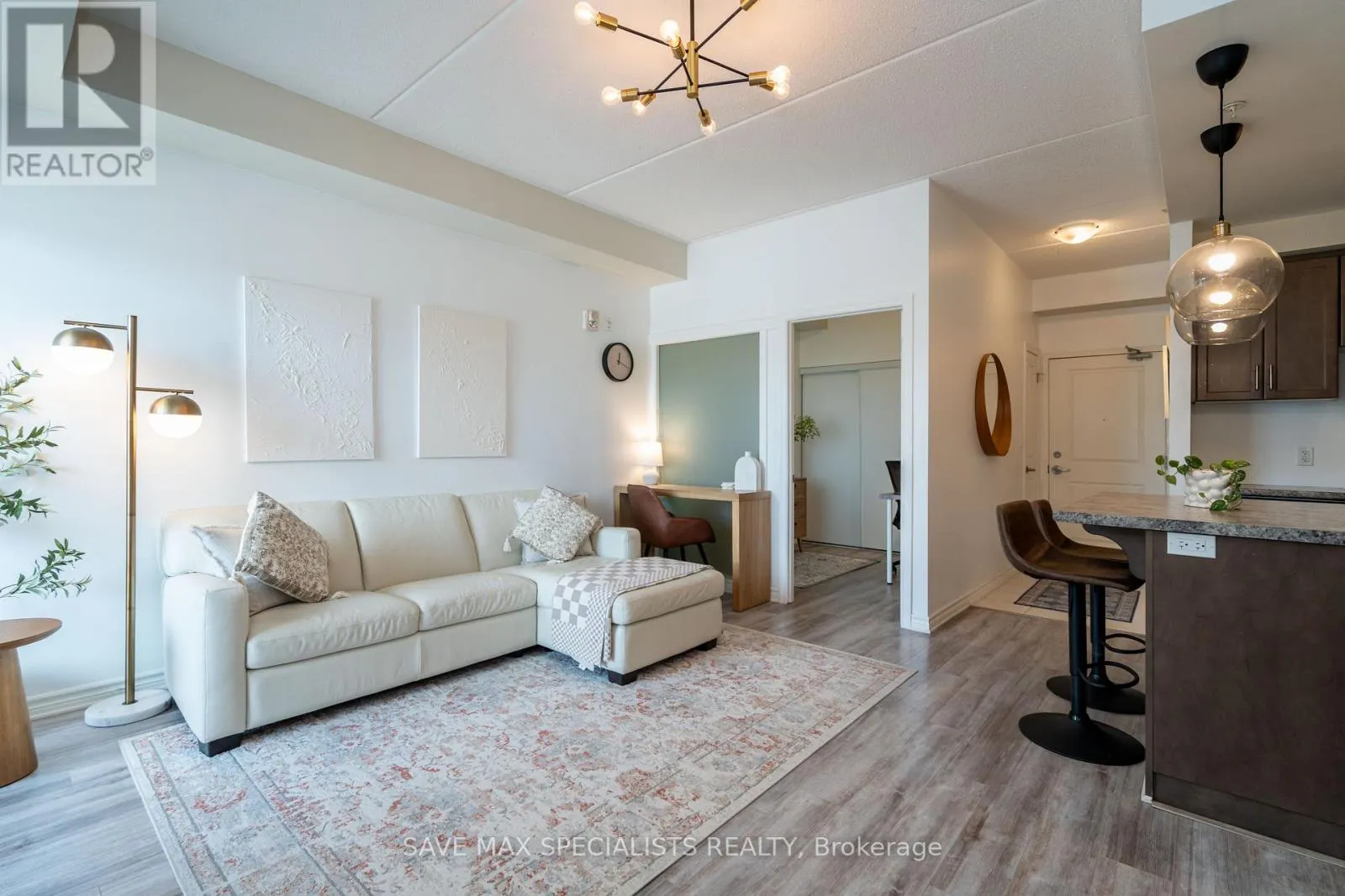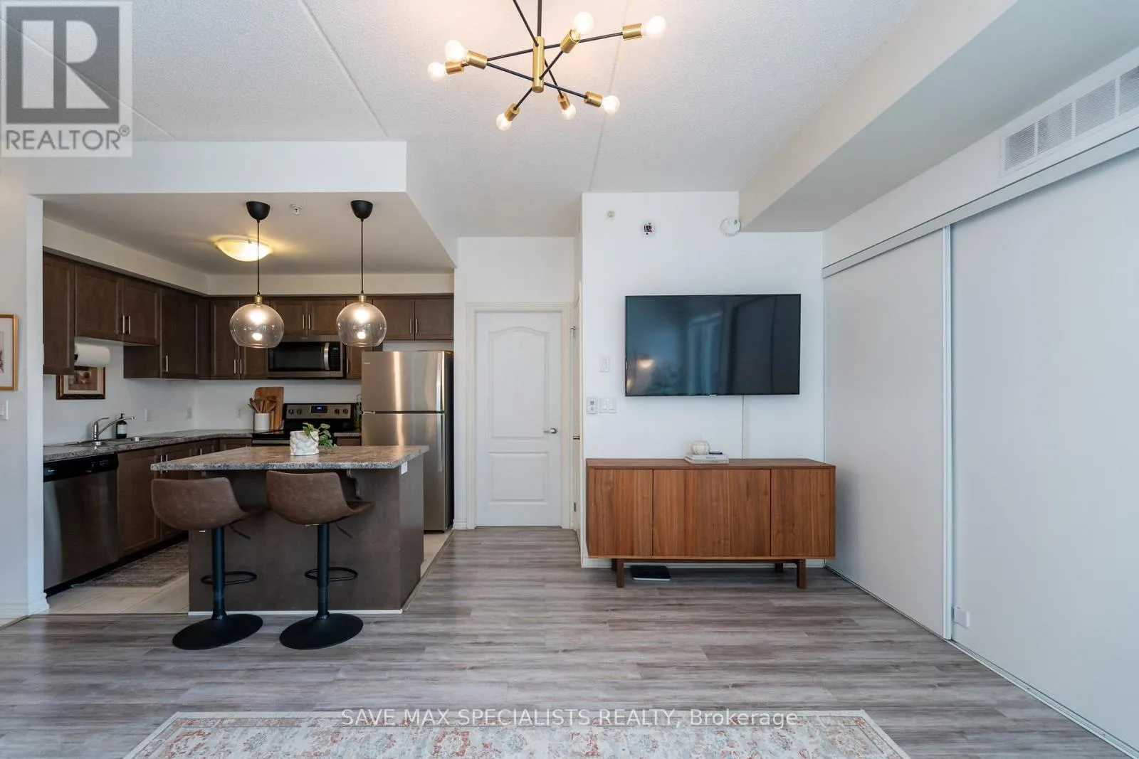 Derry / James Snow pkwy Welcome to this beautifully designed 2-bedroom, 1-bath condo offering a bright and spacious open-concept layout with soaring 9-foot ceilings and a walk-out to your own private balcony -perfect for enjoying your morning coffee or unwinding in the evening. This stylish, carpet-free unit features upgraded laminate flooring throughout and a sleek, modern kitchen equipped with stainless steel appliances and a functional eat-in island, ideal for both everyday living and entertaining. Residents enjoy access to premium amenities including a rooftop terrace with stunning views. Common amenities include 2 fully-equipped fitness rooms, and 2 large party rooms. The building also offers ample visitor parking for added convenience. Perfectly located just minutes from the GO Train and Hwy 407/401, and within walking distance to Irma Coulson Public School, Lullaboo nursery and Childcare, parks, and essential shopping, this condo combines comfort, style, and unbeatable convenience - a true gem in a prime location. (id:27476)