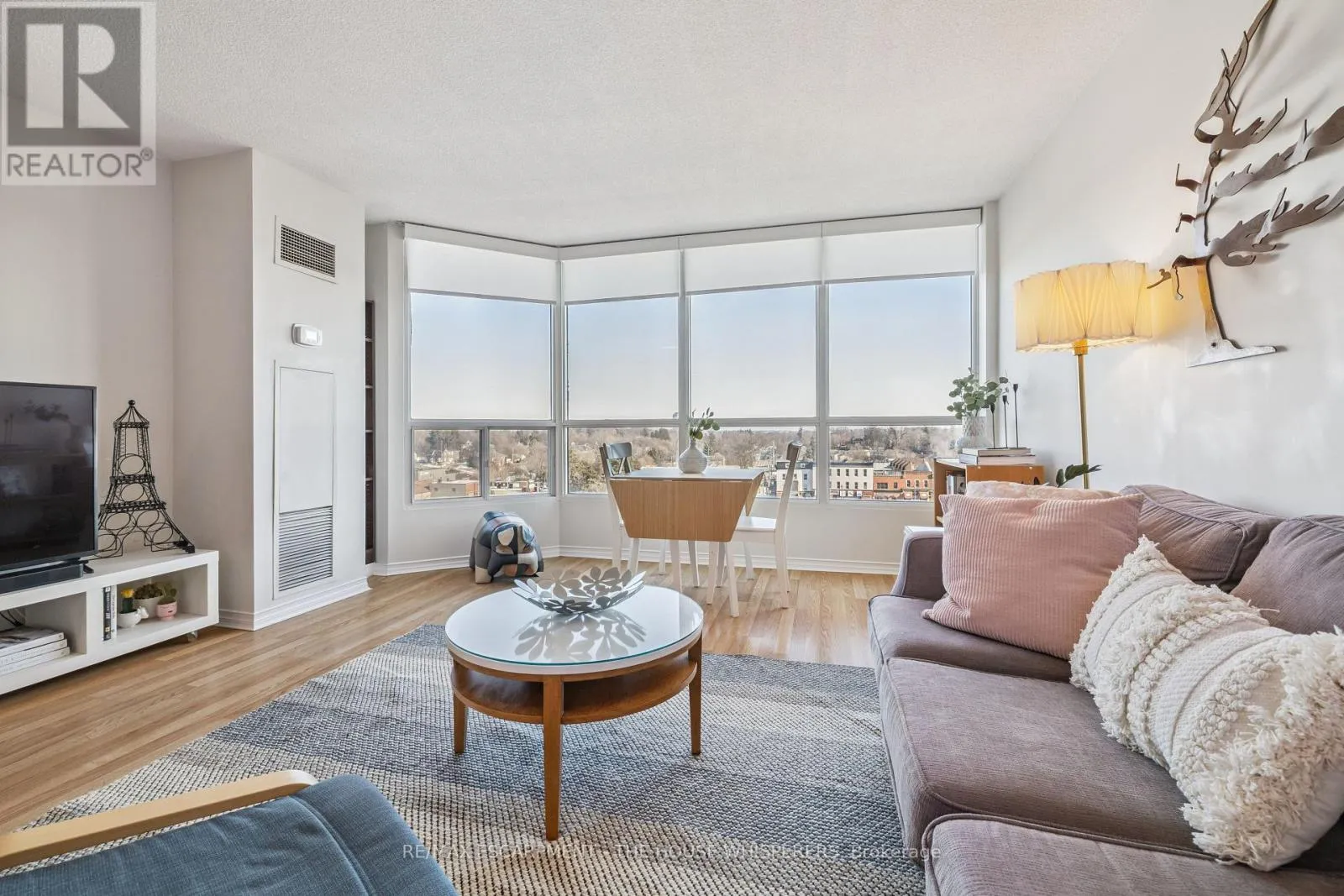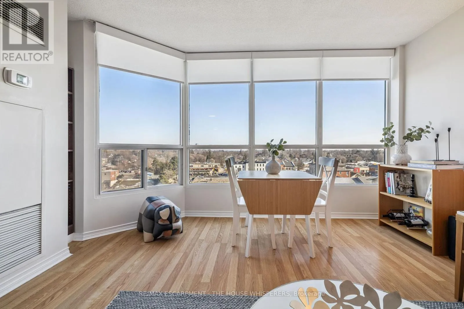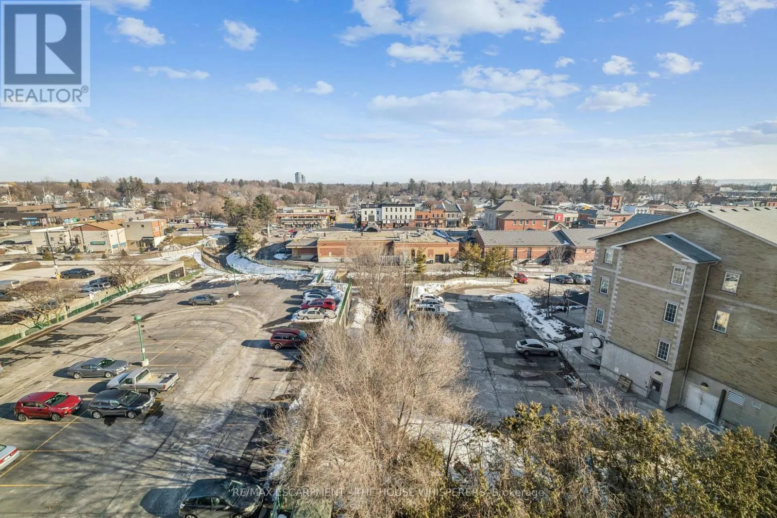 Cross Streets: Main St./Martin St. ** Directions: Martin to Millside. Welcome to Village on the Parc, Where Lifestyle Meets Location. Nestled in the heart of downtown Milton, this highly sought-after condo building offers the perfect blend of comfort, community, and convenience ideal for those looking to simplify without sacrificing quality of life. Whether you're retiring and ready to leave the maintenance of a house behind, an empty nester looking to right-size, or a young couple planting roots in a vibrant community, this is the lifestyle upgrade you've been waiting for. This bright, south-facing 1-bedroom plus den suite with 2 parking spots (1 underground, 1 surface) offers 756 square feet of thoughtfully designed living space. Large windows frame stunning, unobstructed panoramic views, flooding the open-concept living area with natural light. You'll love the light flooring throughout, generous walk-in closet and pantry storage, and a versatile den; perfect as a home office, reading room, or hobby space. Step outside and everything is at your doorstep: the beloved Milton Farmers' Market, cozy coffee shops, restaurants, Mill Pond, parks, and the charming energy of downtown Milton all within a walking distance. The building itself is a destination. Enjoy resort-style amenities including an indoor pool, hot tub, sauna, fitness centre, party room, library, sun deck, community outdoor space and garden area, and a guest suite for when family comes to visit. The beautifully maintained lobby and common areas speak to the pride of ownership within this well-run, established community. The all-inclusive condo fees cover heat, hydro, water, Bell TV, high-speed Fibe internet, building insurance, parking, and common area maintenance, making it easy. Lock the door and go. No shovelling, no yard work, no surprises. Move in, breathe easy, and start living. (id:27476)
